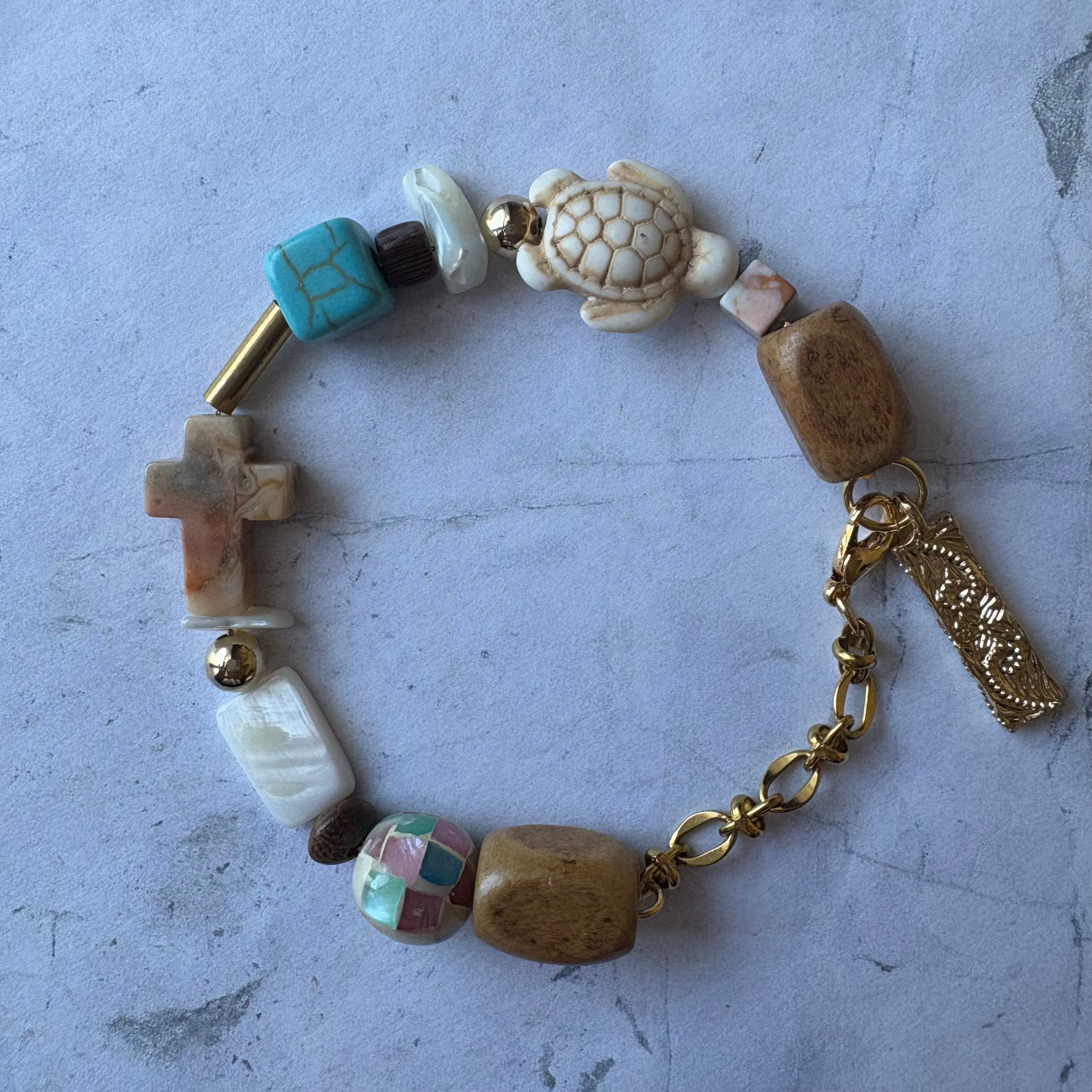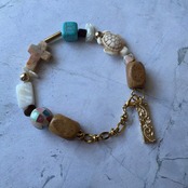 ターコイズ、ウッド、淡水パール、シルバービーズ