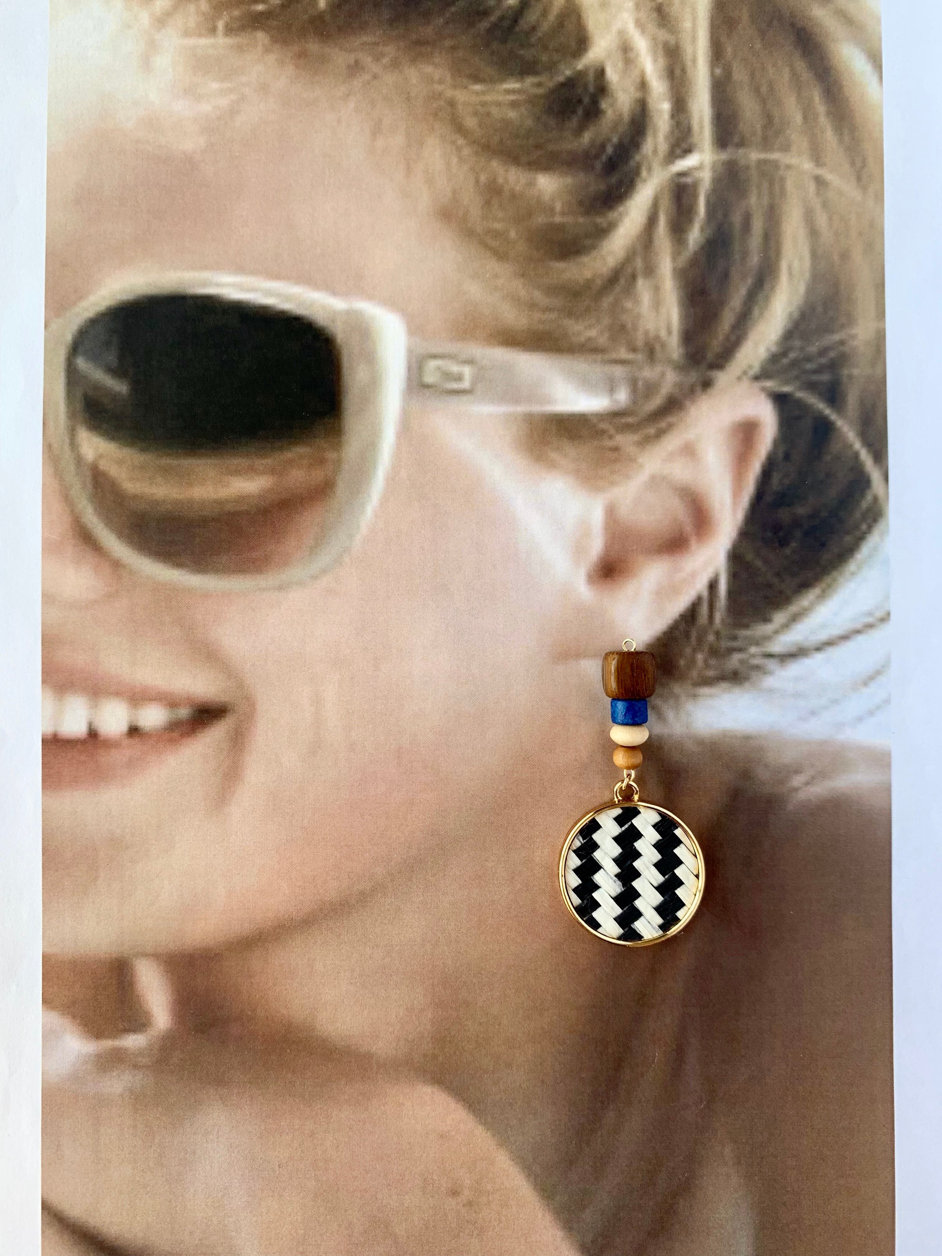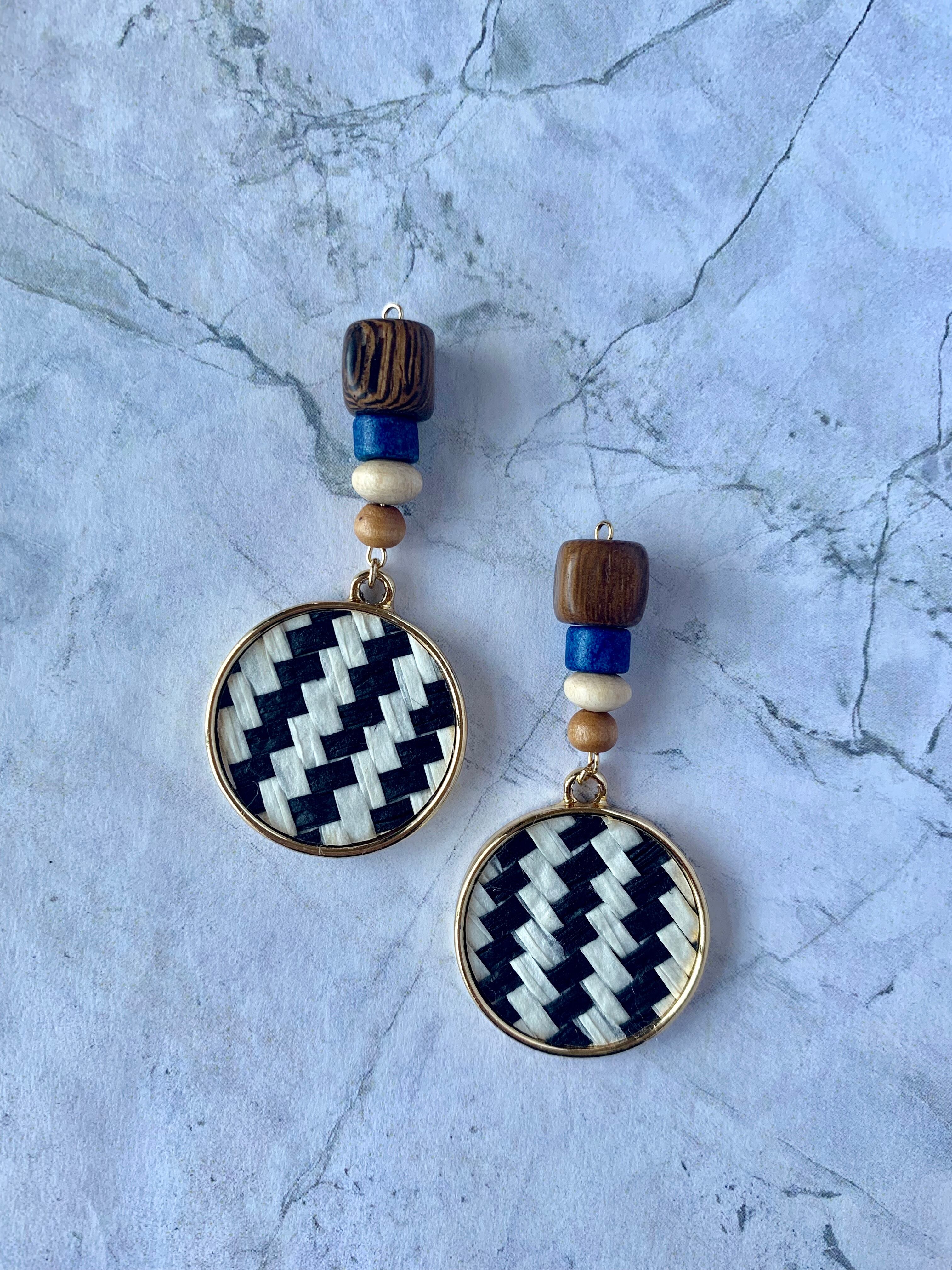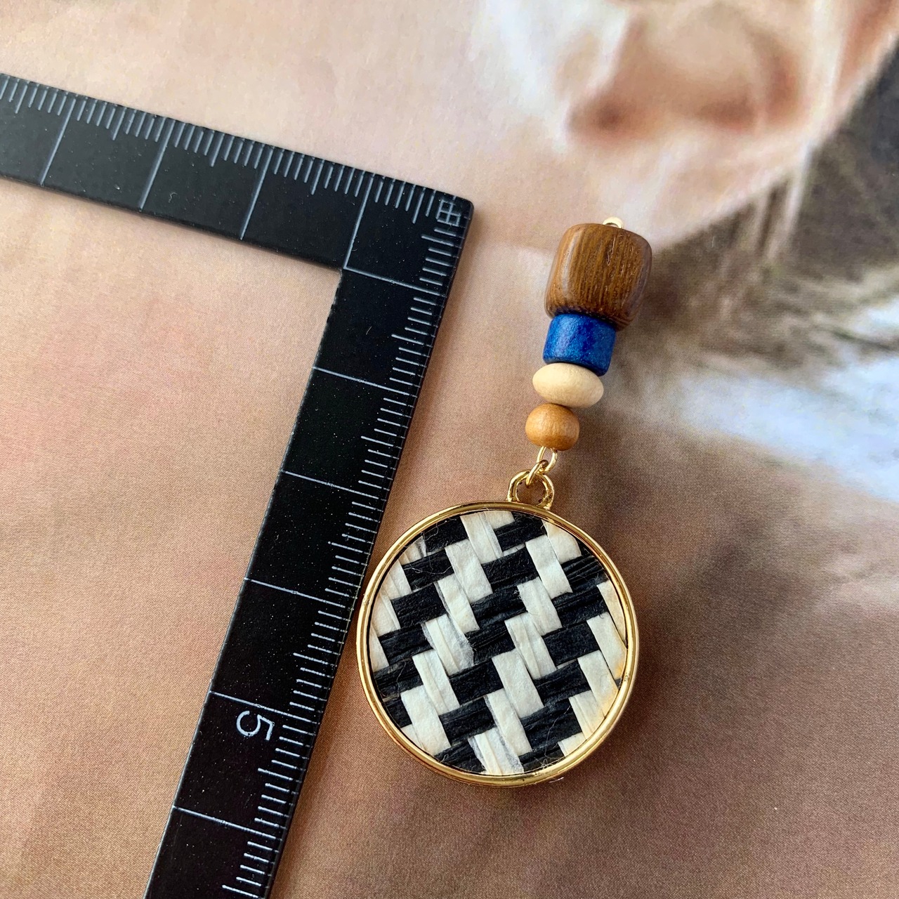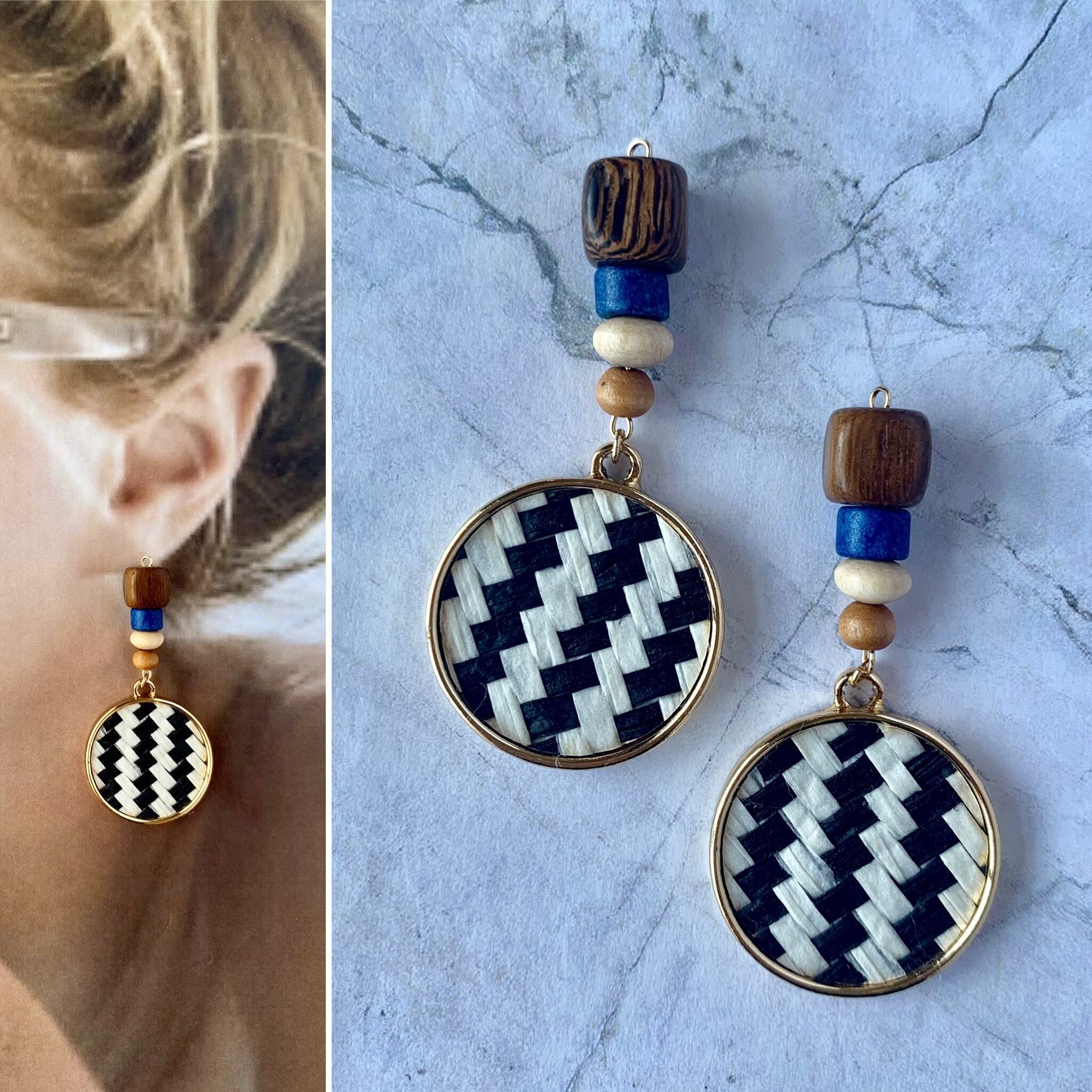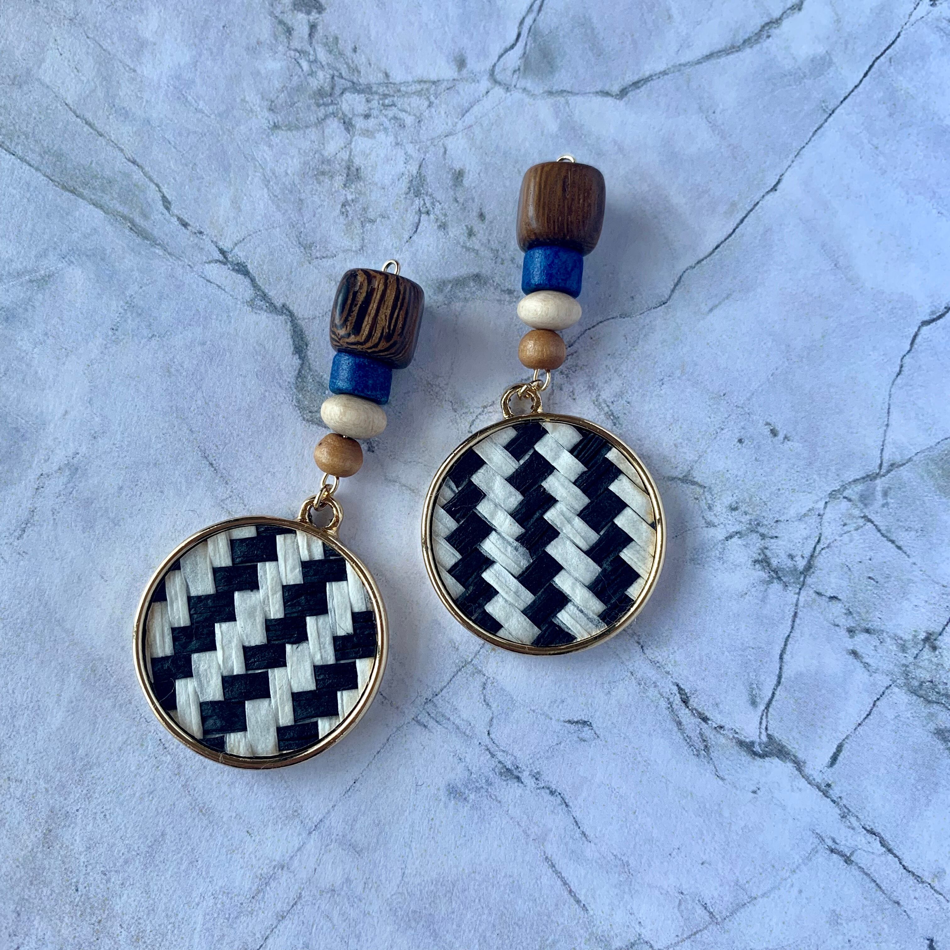 ブルーウッド×ストライプチャームピアス