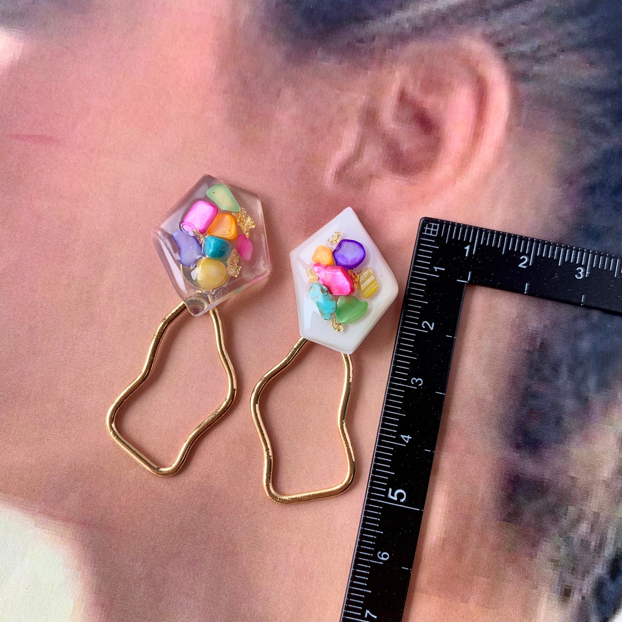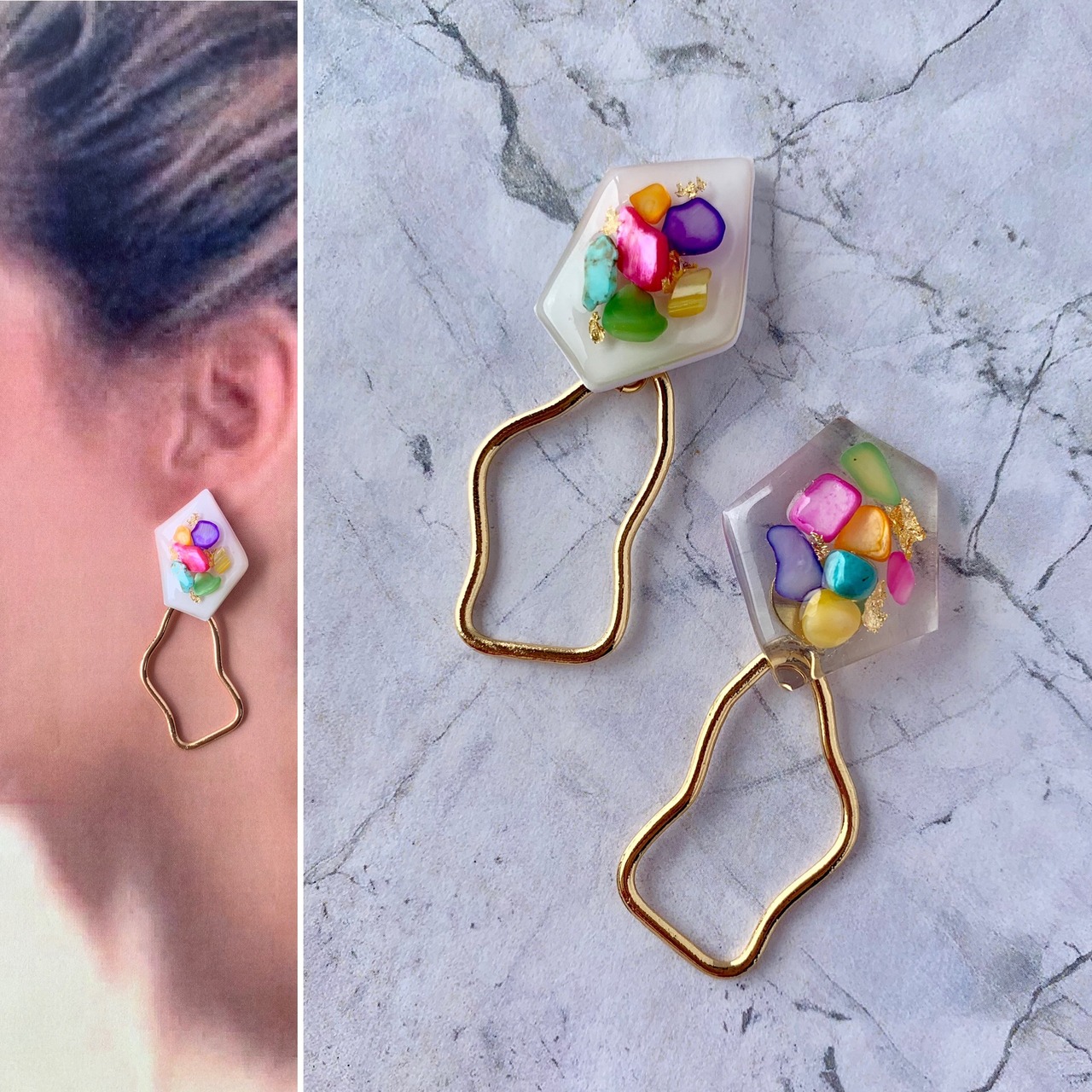 さざれ石幾何学アシメ×変形ゴールドピアス