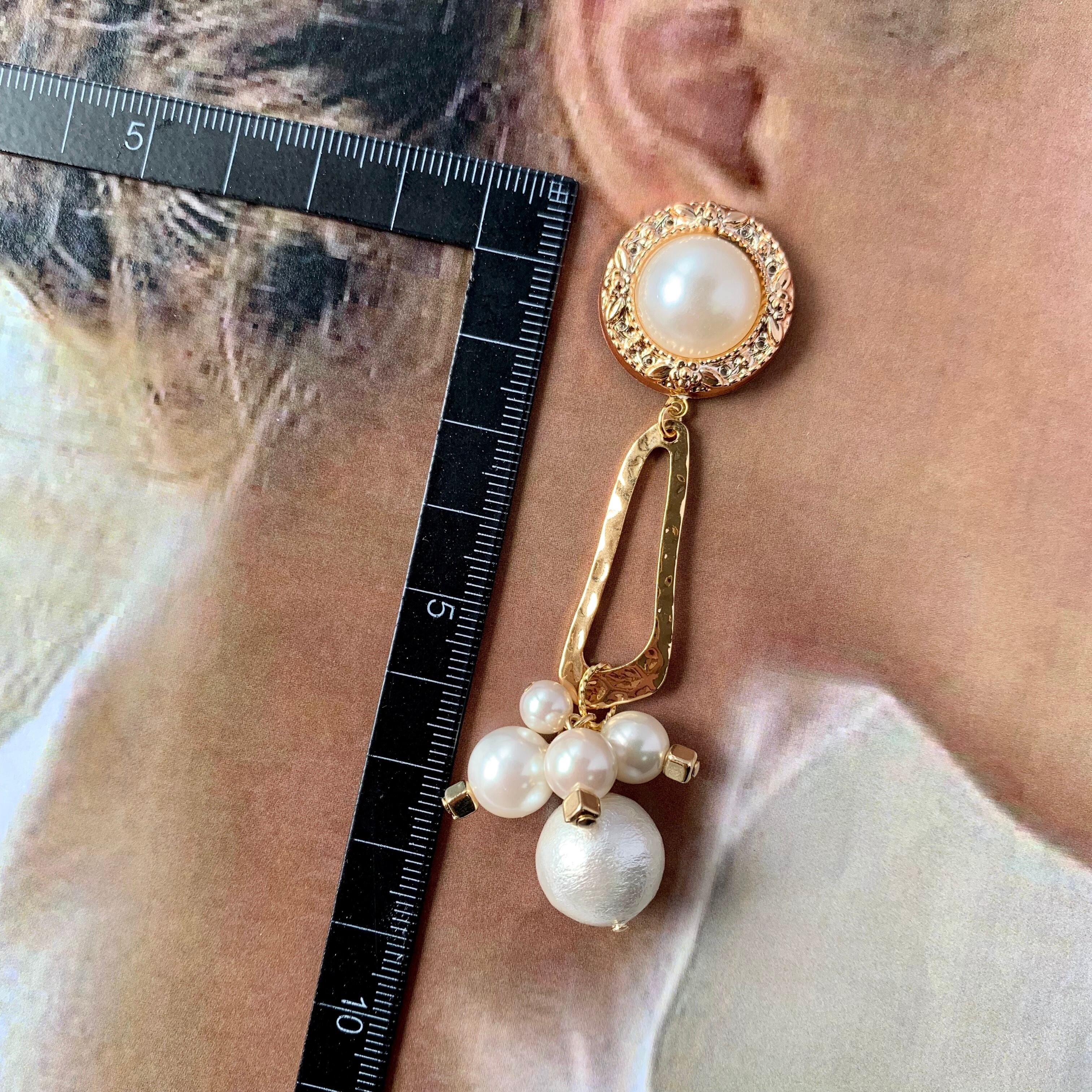 Eパールカボション×コットンパール入りじゃらじゃらピアス