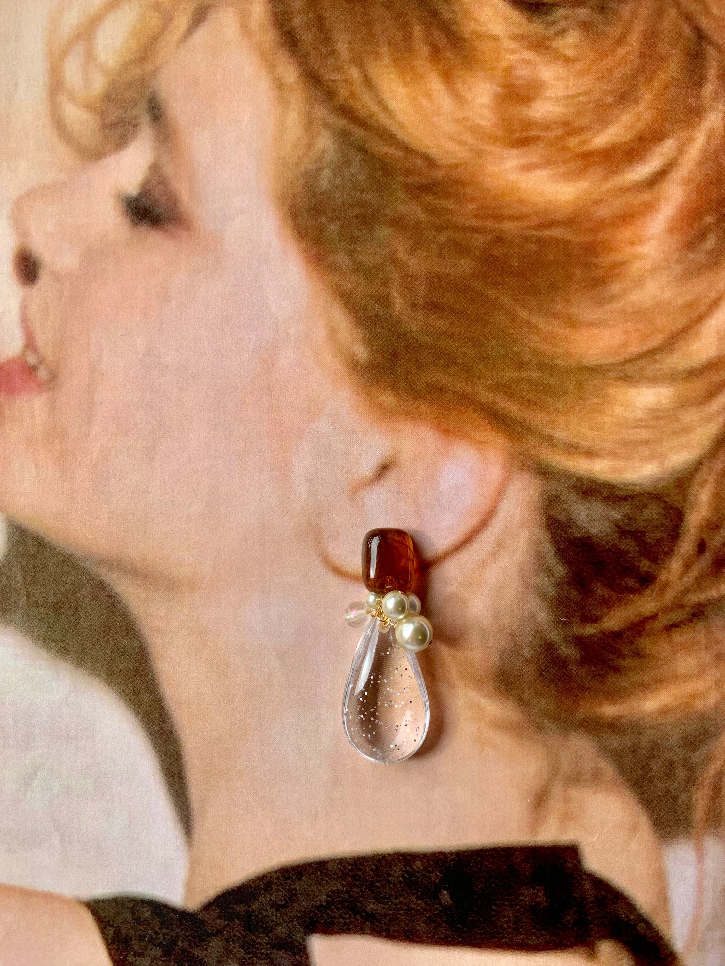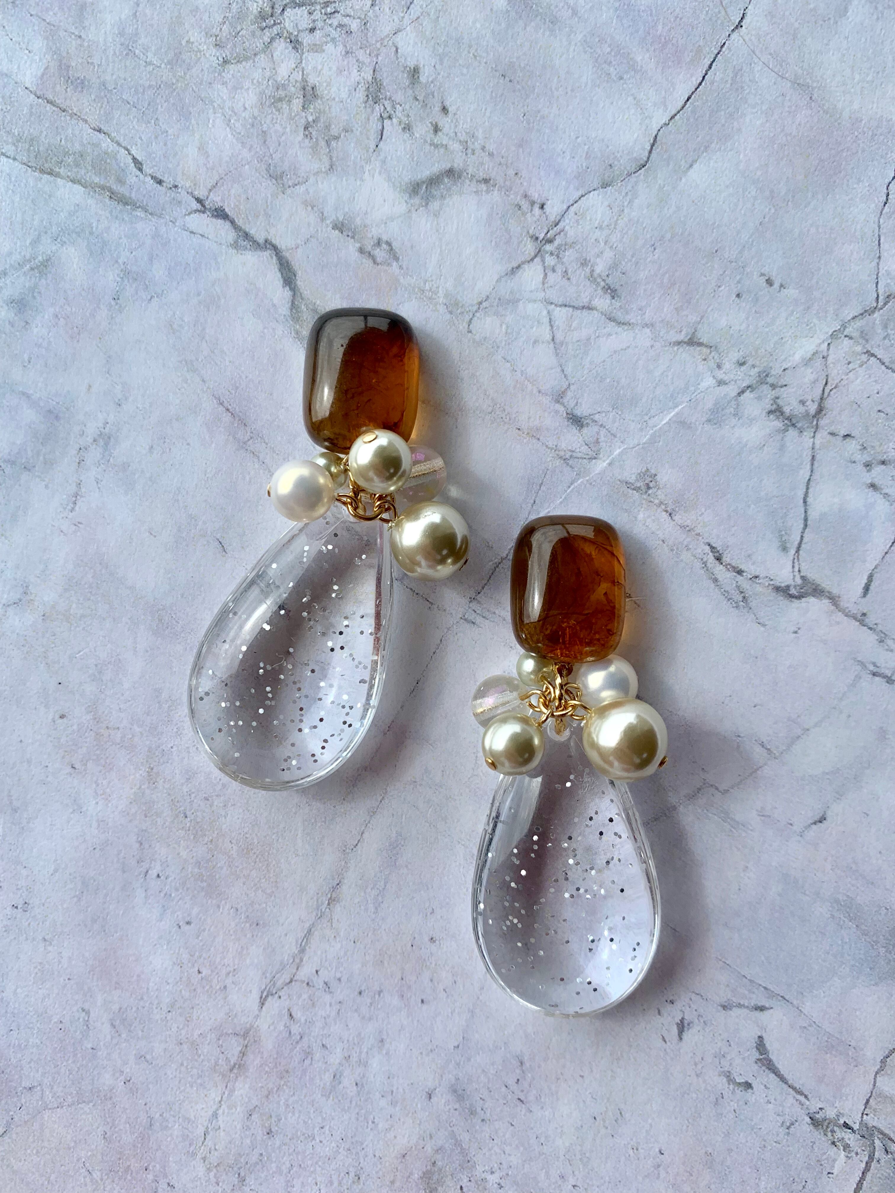 べっ甲×じゃらじゃらぷっくり雫ピアス