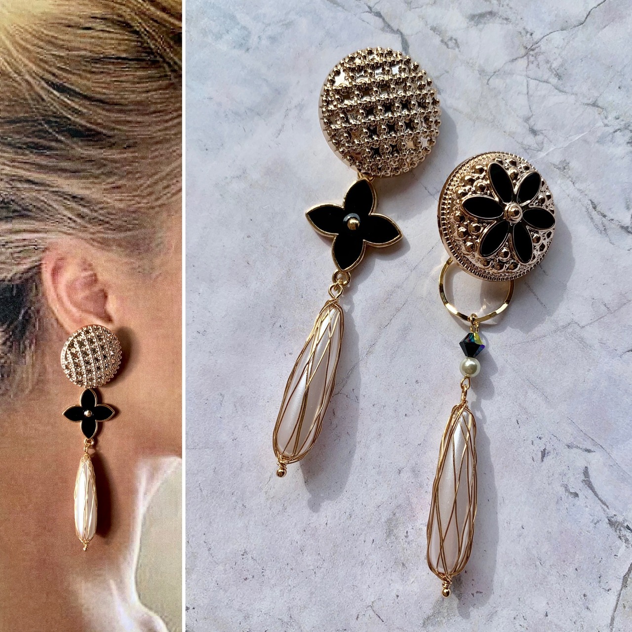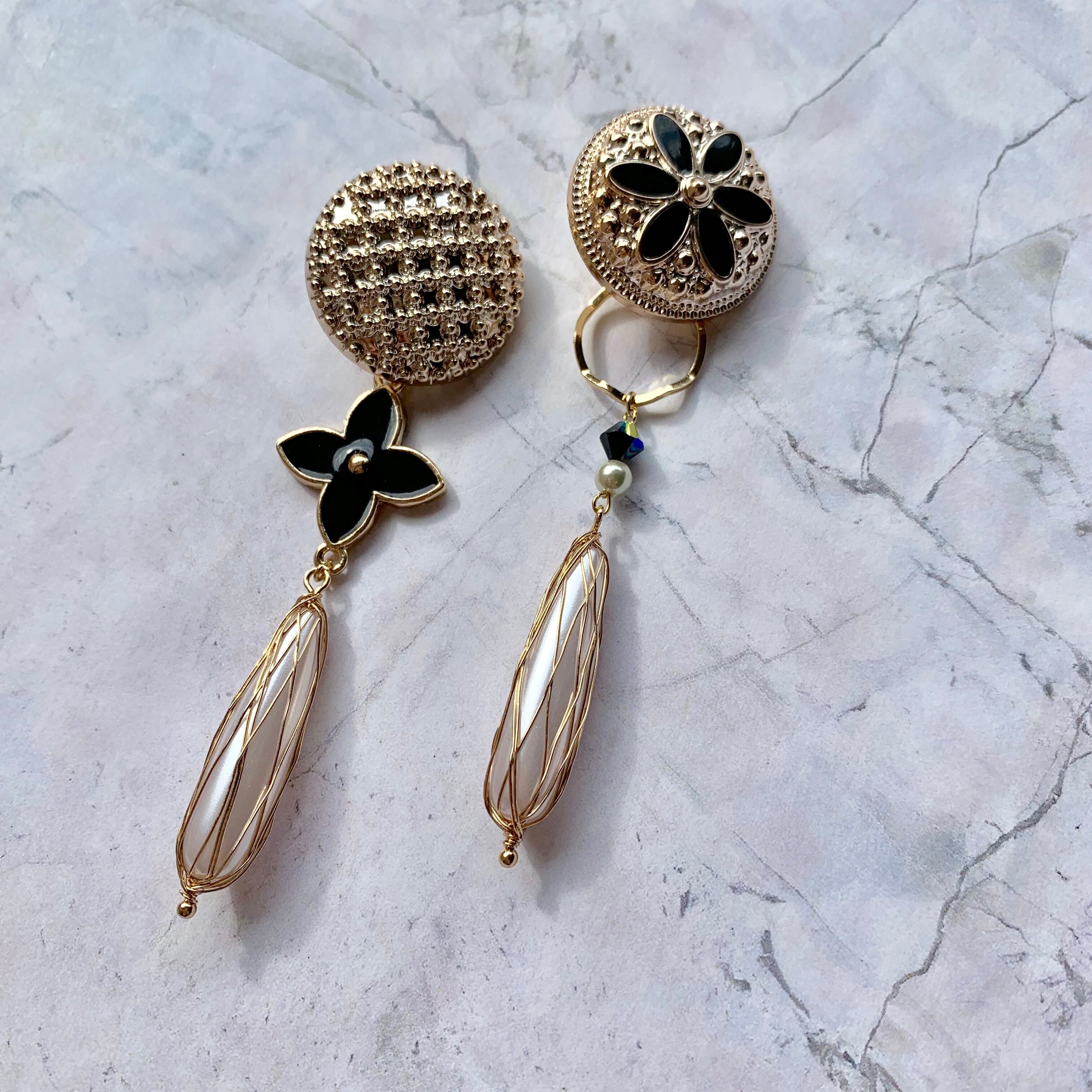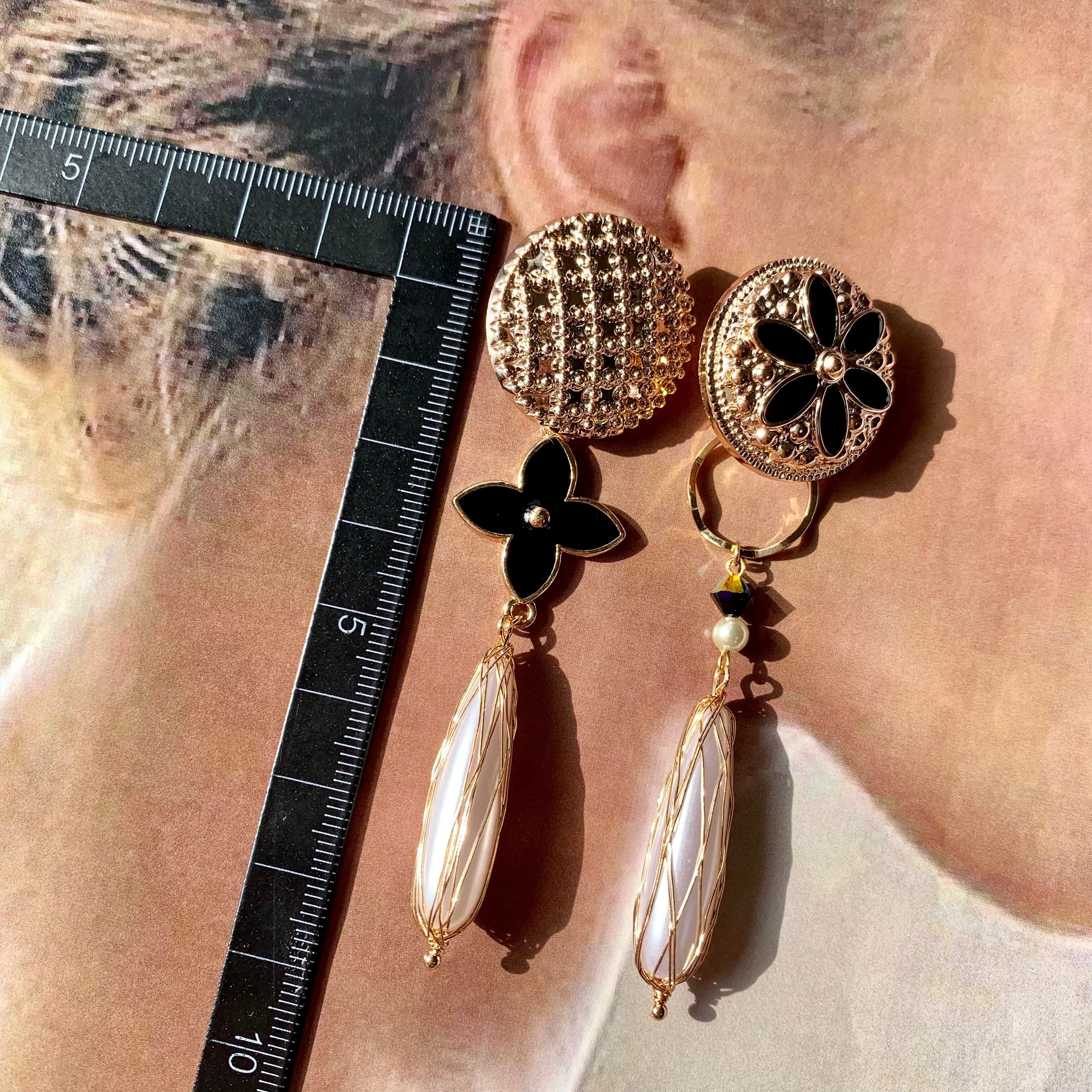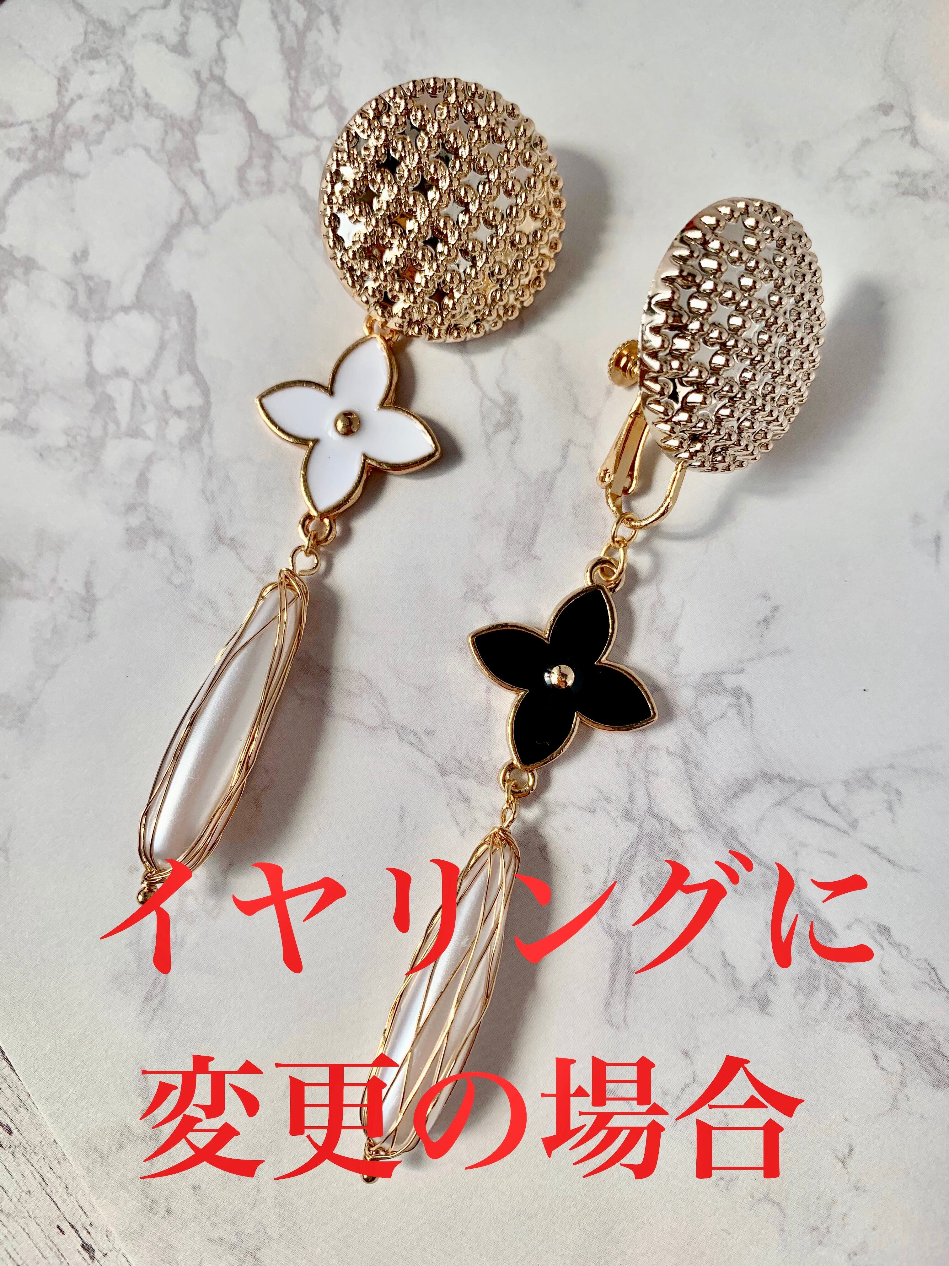 (イヤリングに変更の場合、構造上5枚目のように少し長さが出ます。左がピアスでの元の長さ)