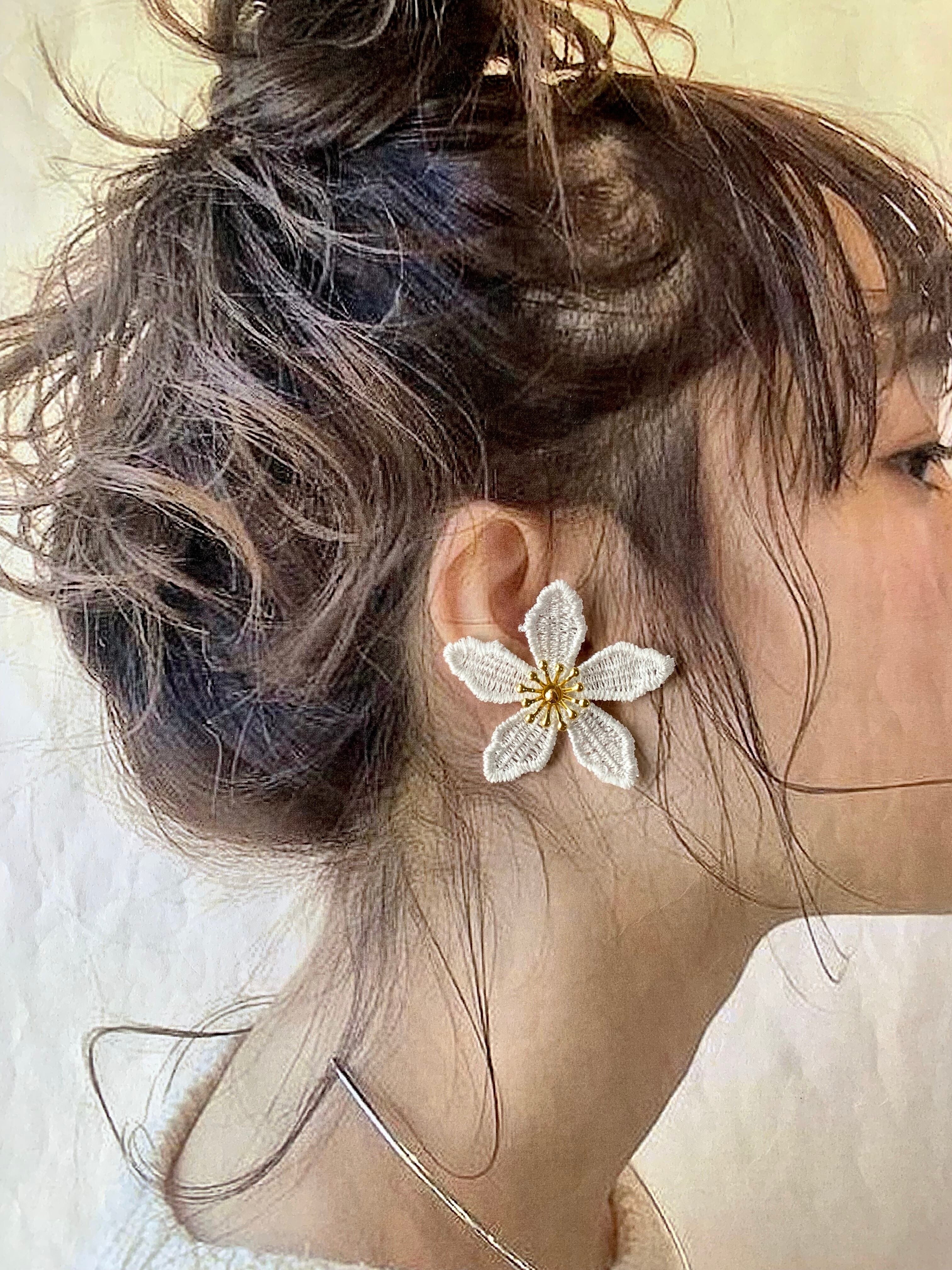 cloth flowerピアス ホワイト