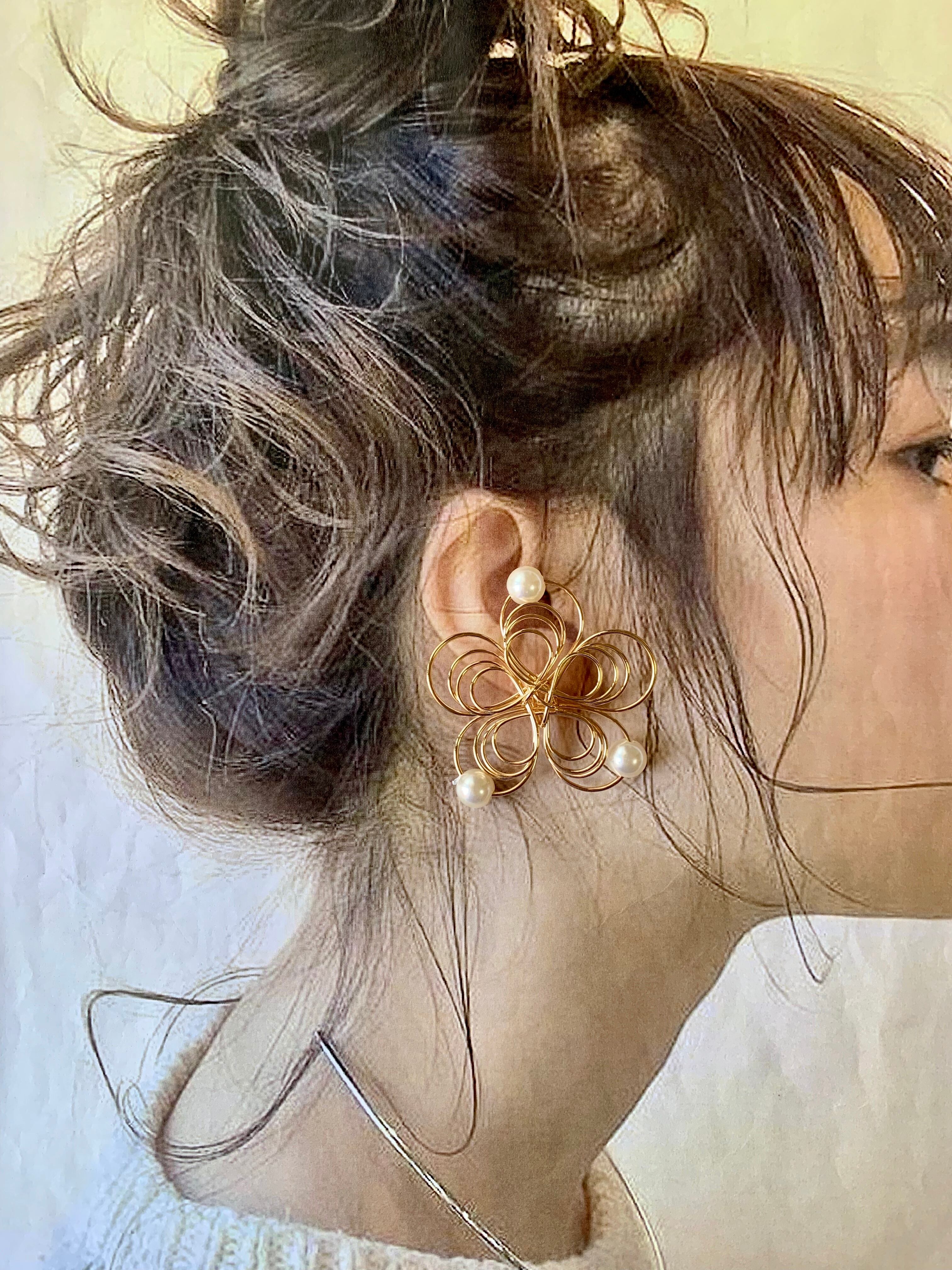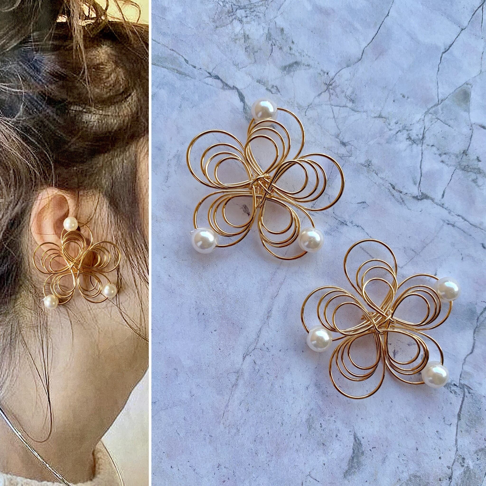 【イヤリングのみ*】大きなフラワーワイヤーイヤリング
