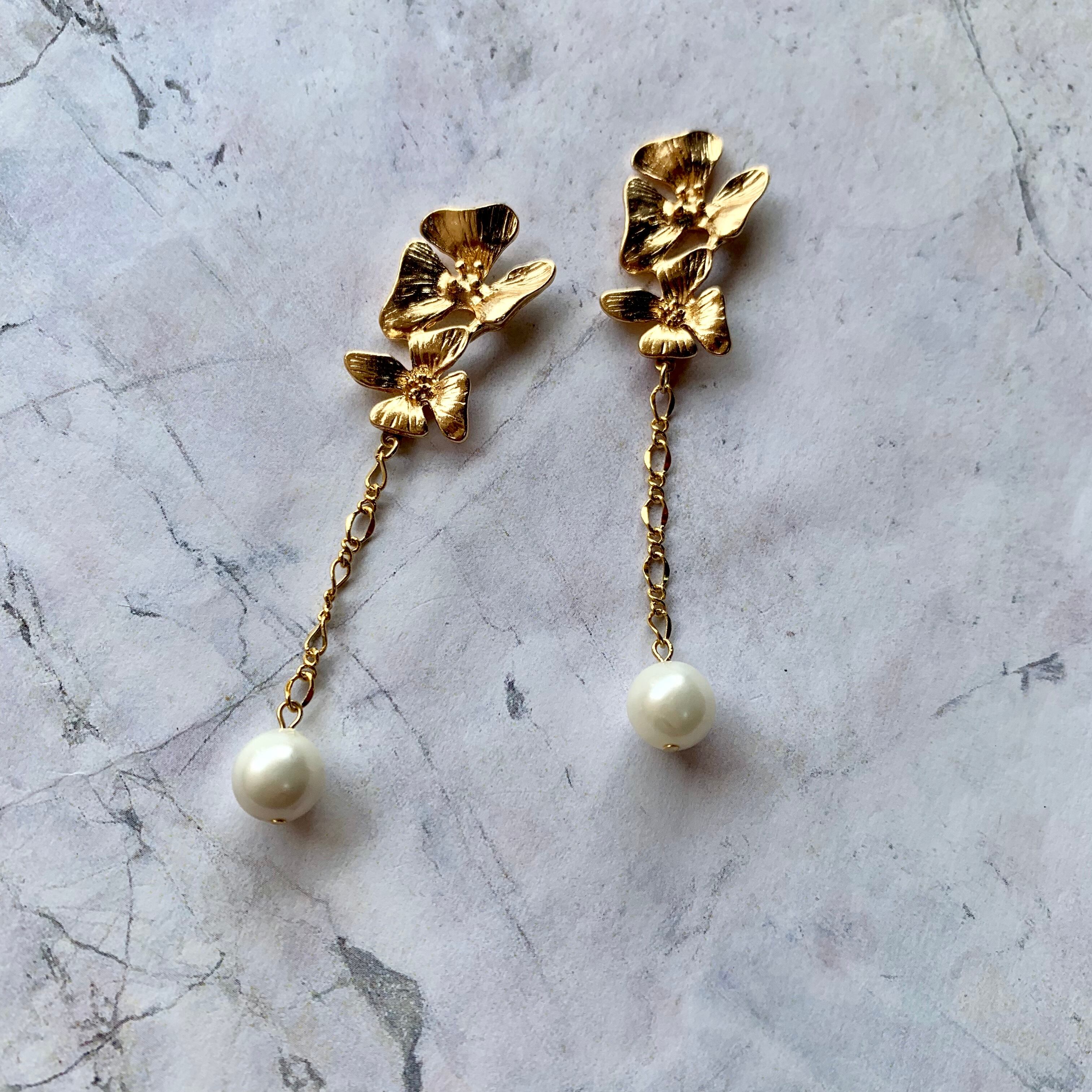 フラワーゴールドゆらゆらパールピアス