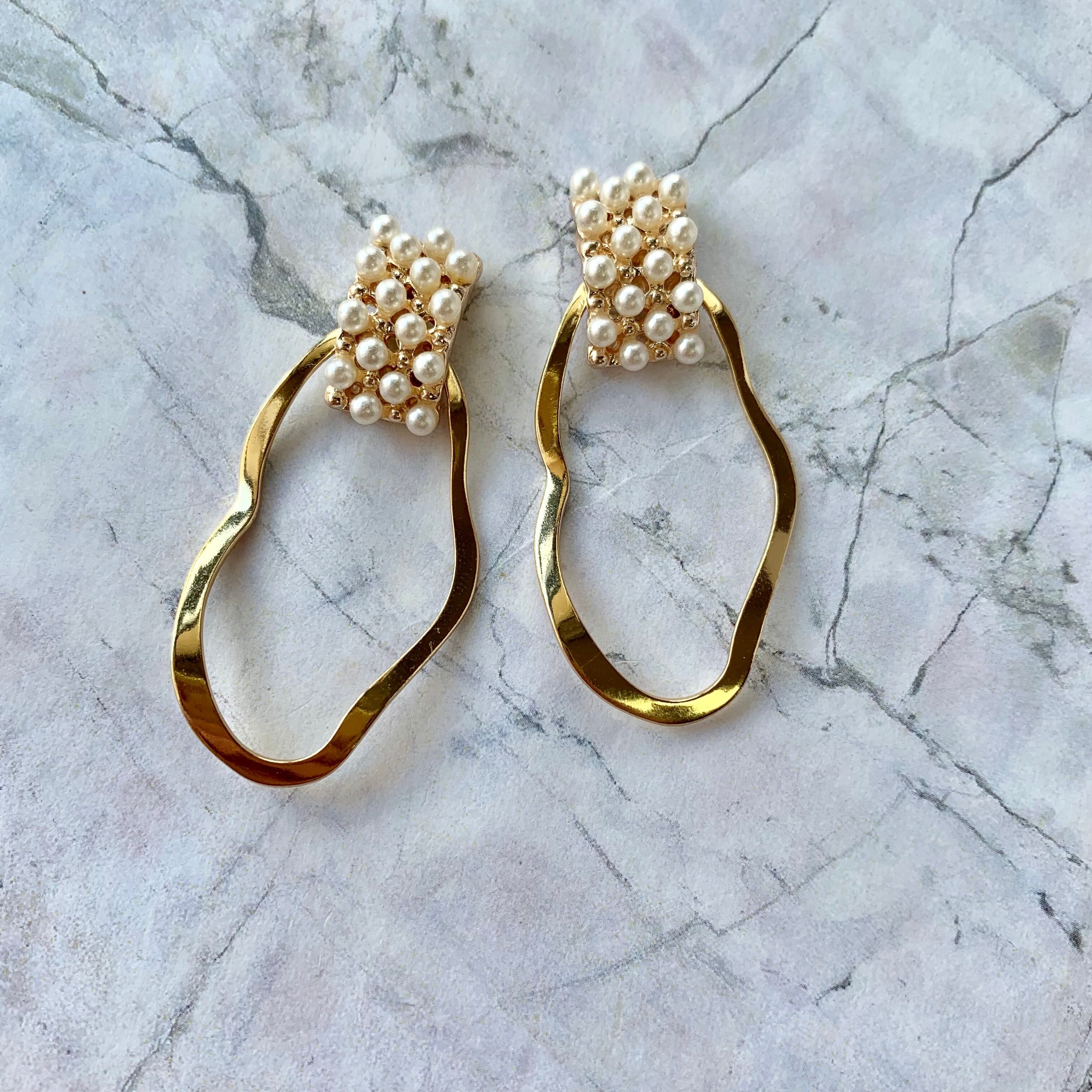 小粒パール×オーバルピアス