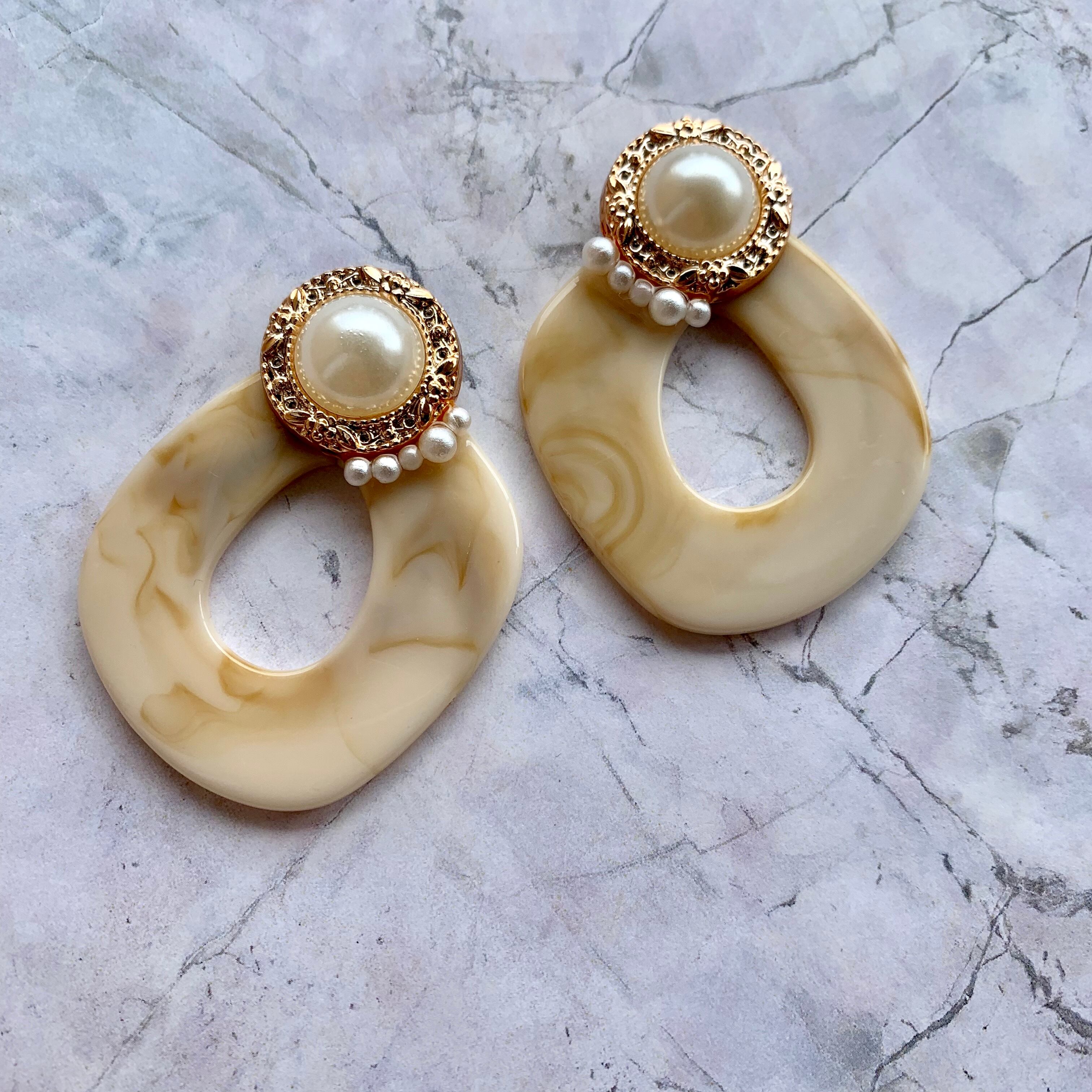 【1点物*】パールカボション×ラテマーブルピアス A