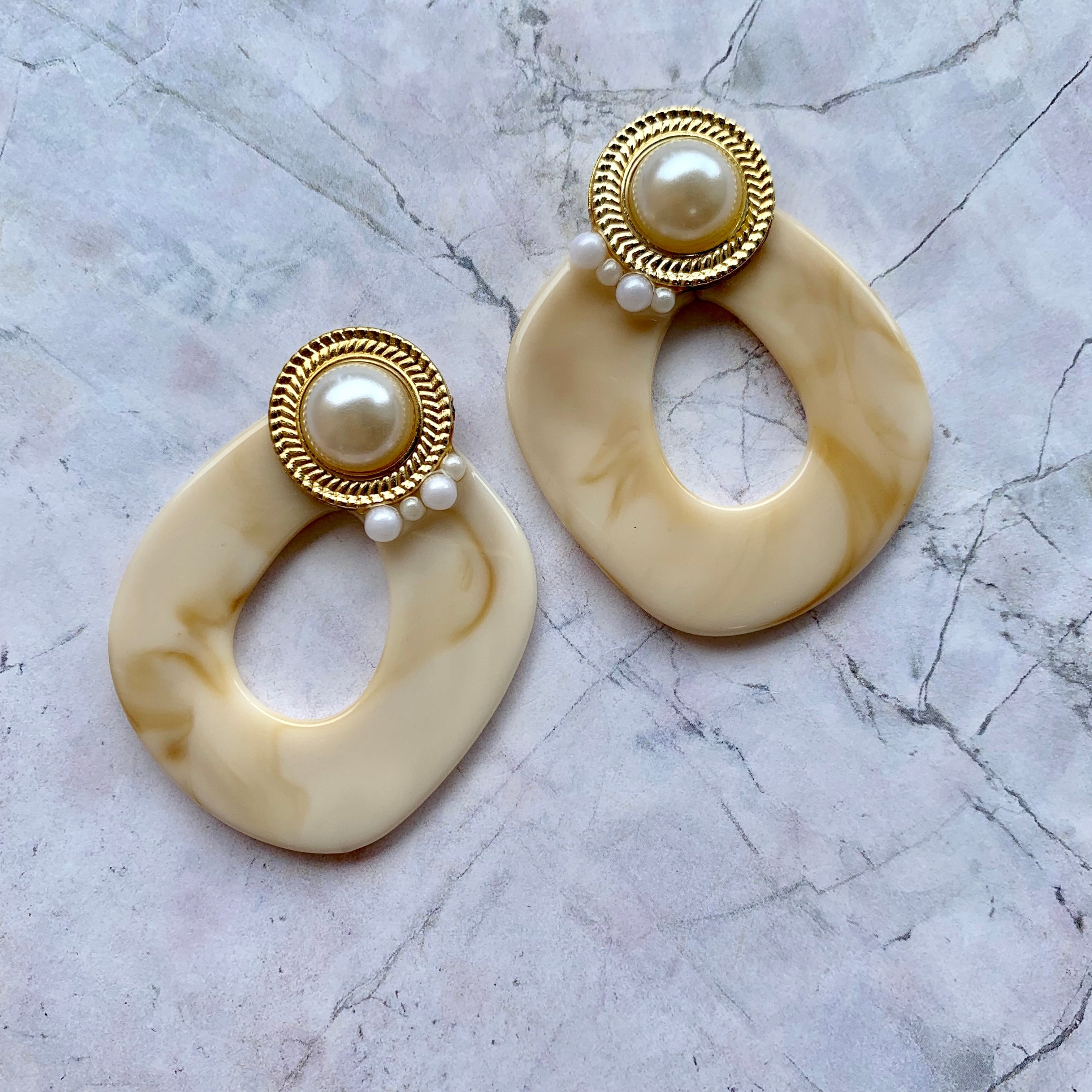 【1点物*】パールカボション×ラテマーブルピアス B