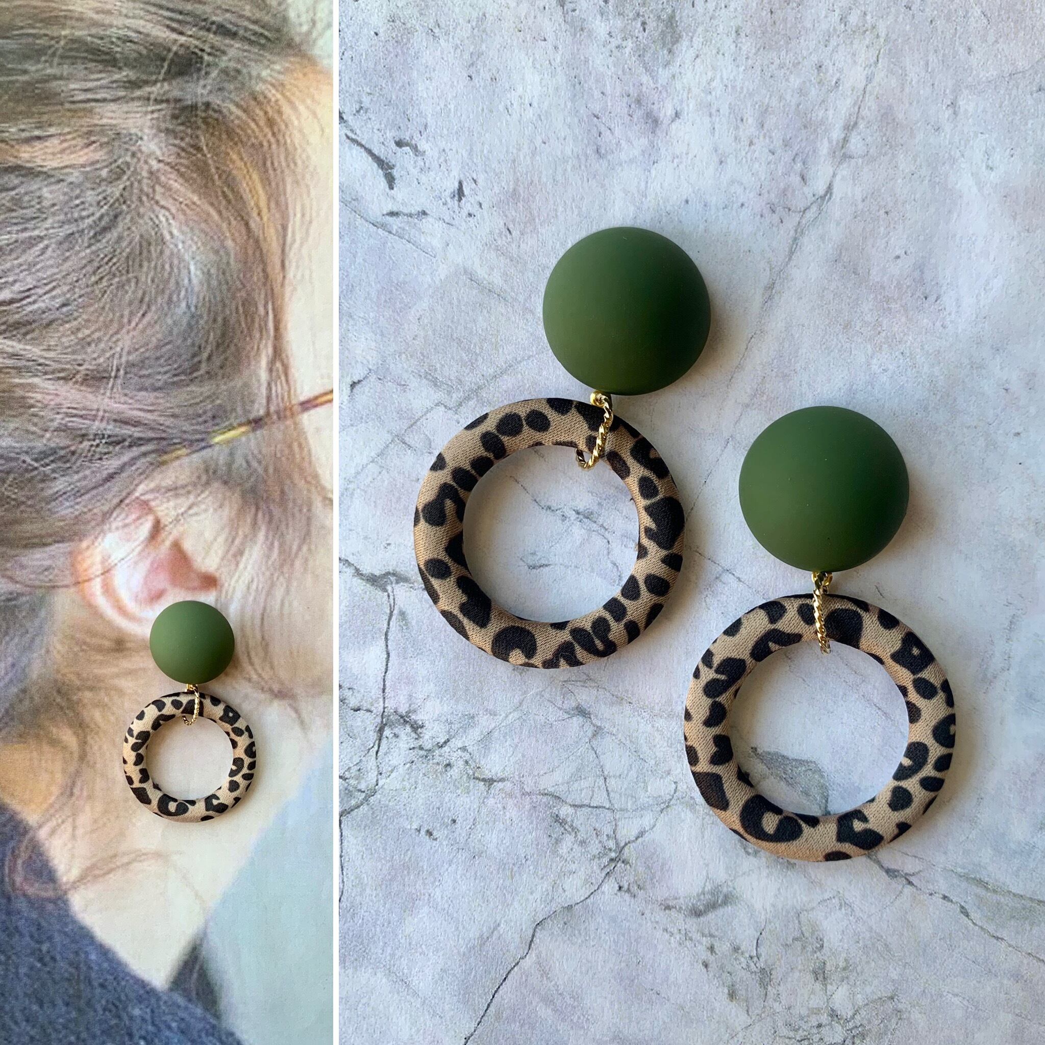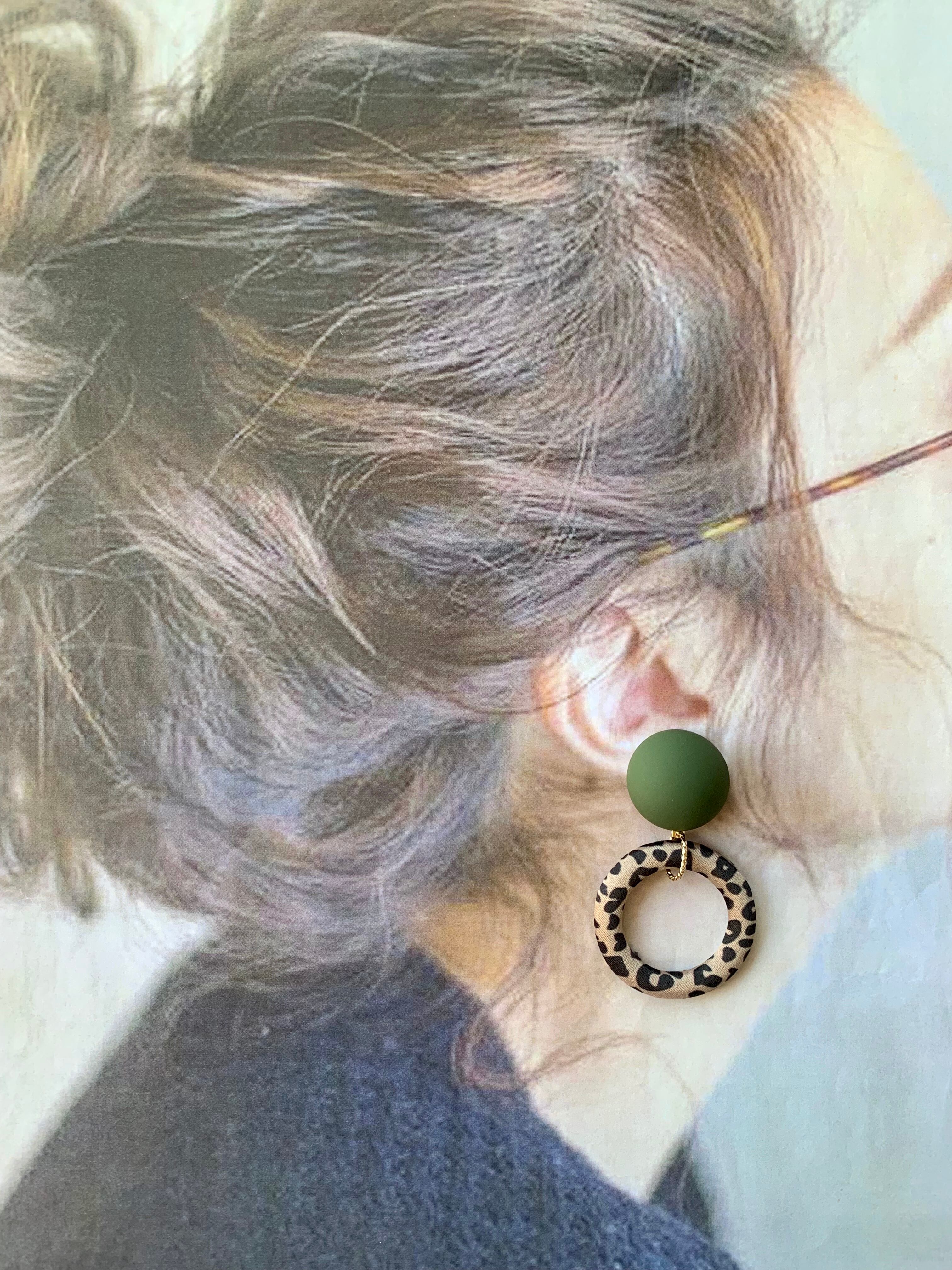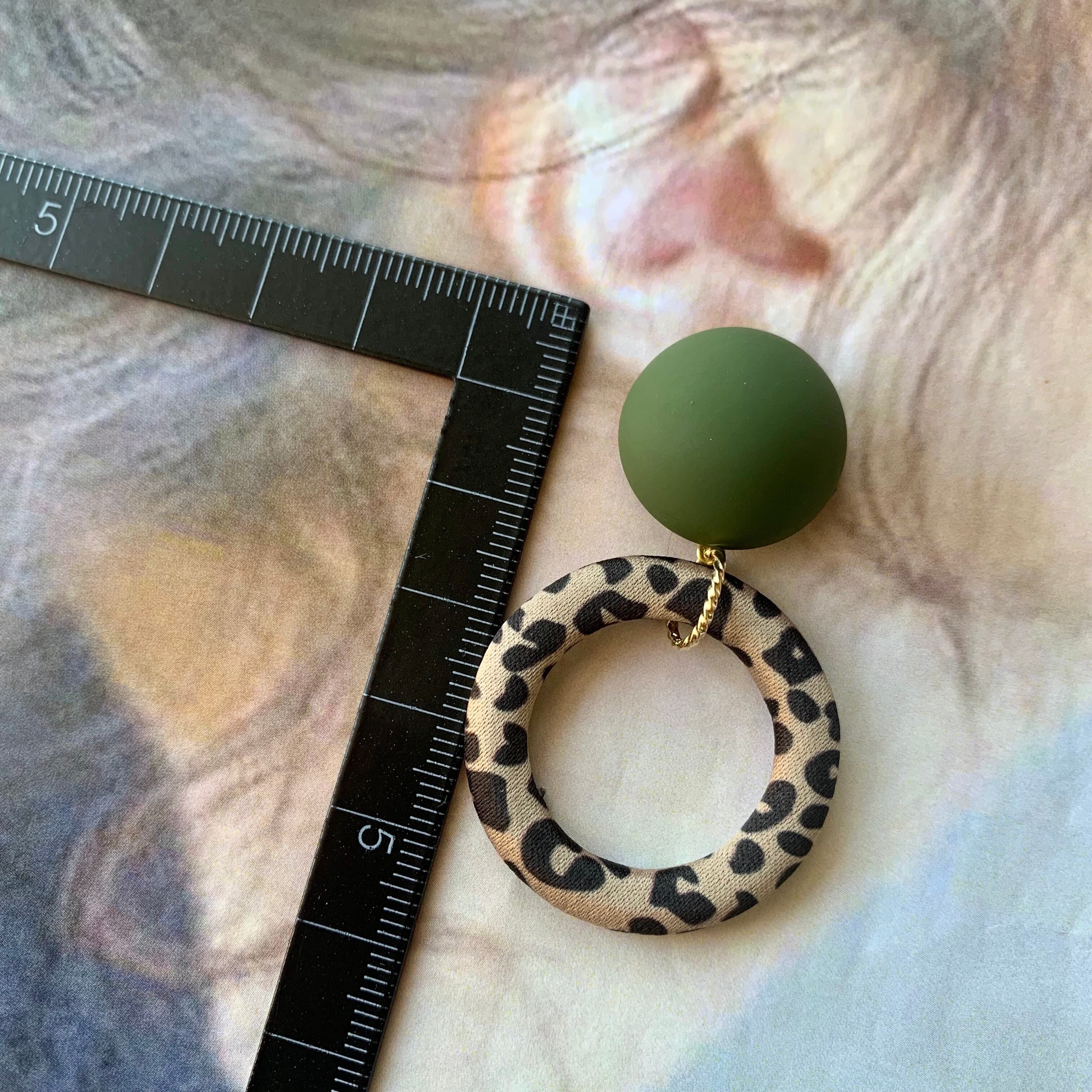 【1点のみ*】マットカーキ×レオパサークルピアス