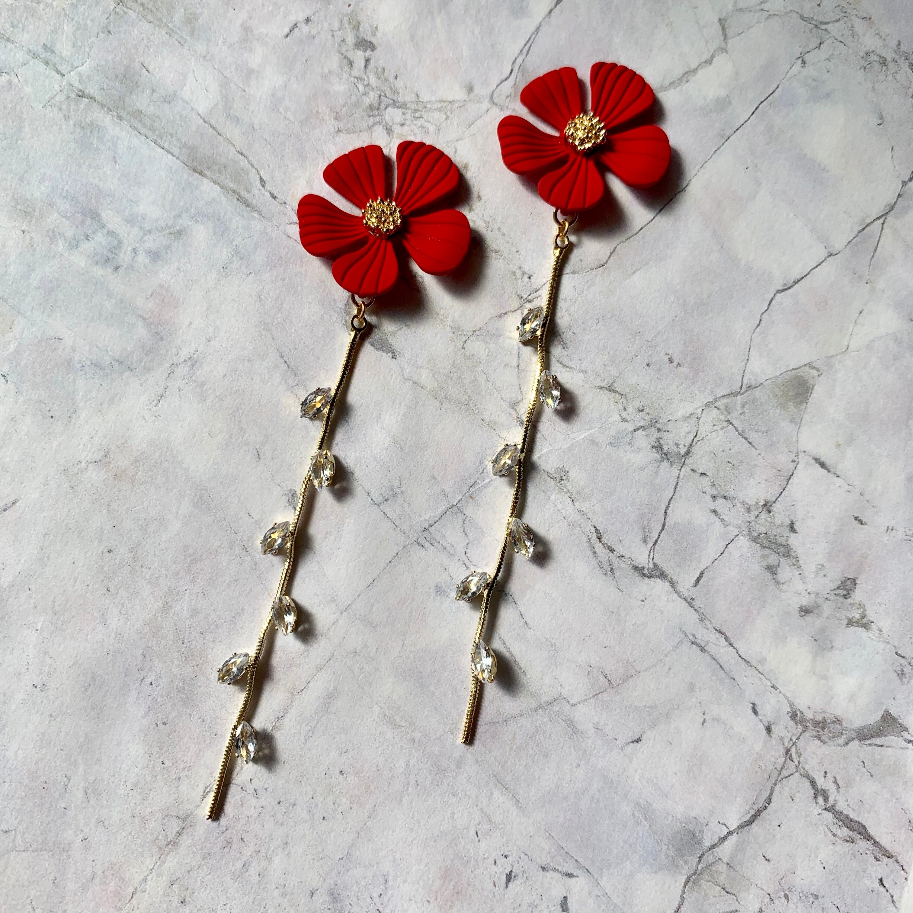 レッドフラワーロングピアス