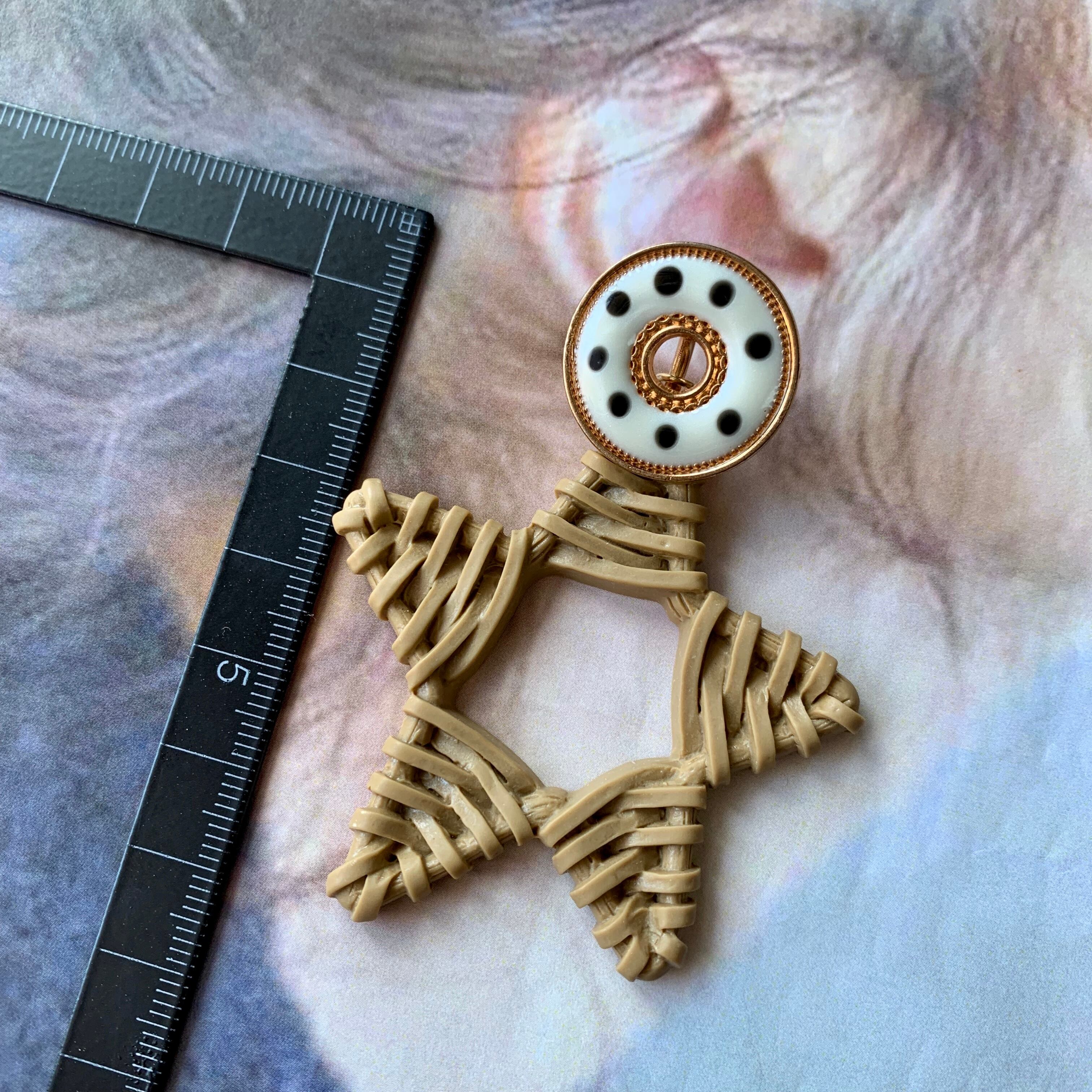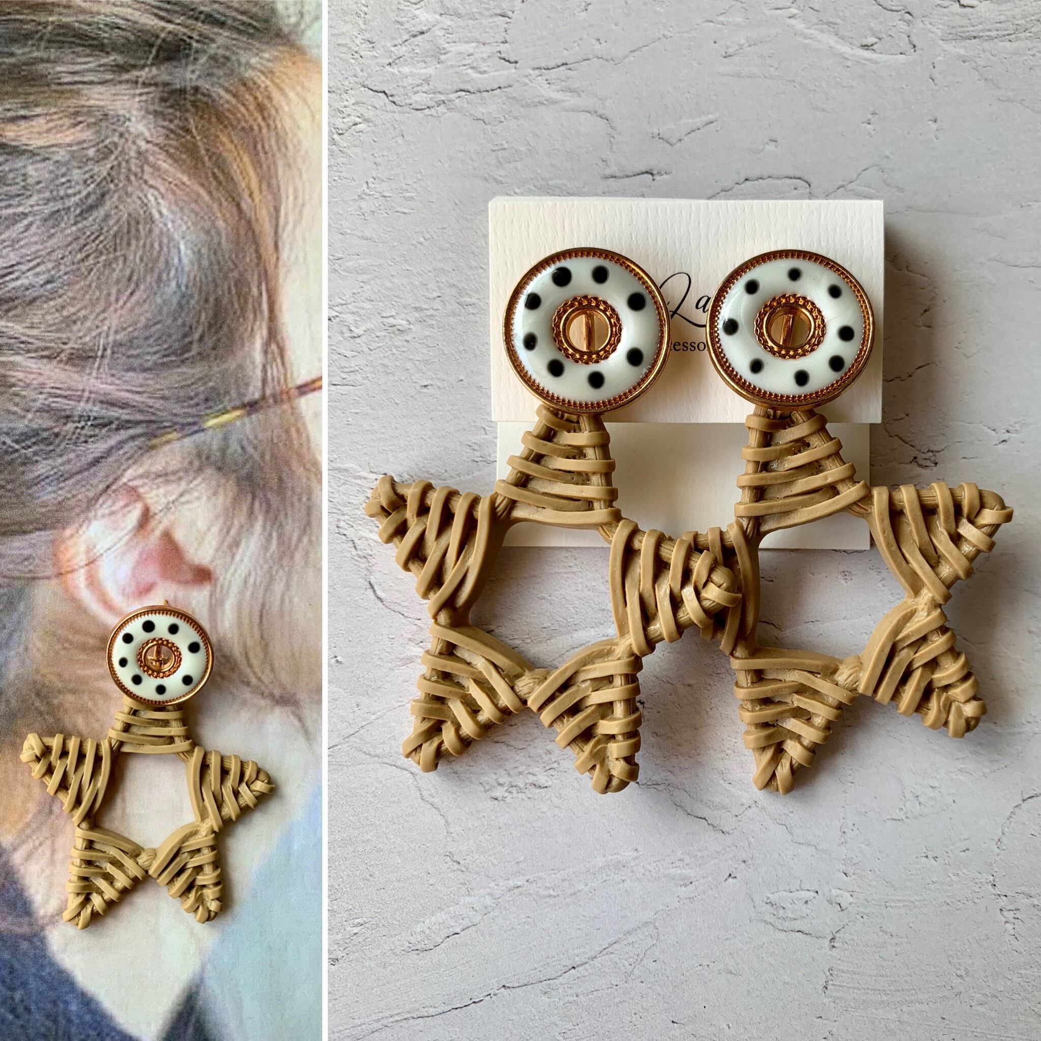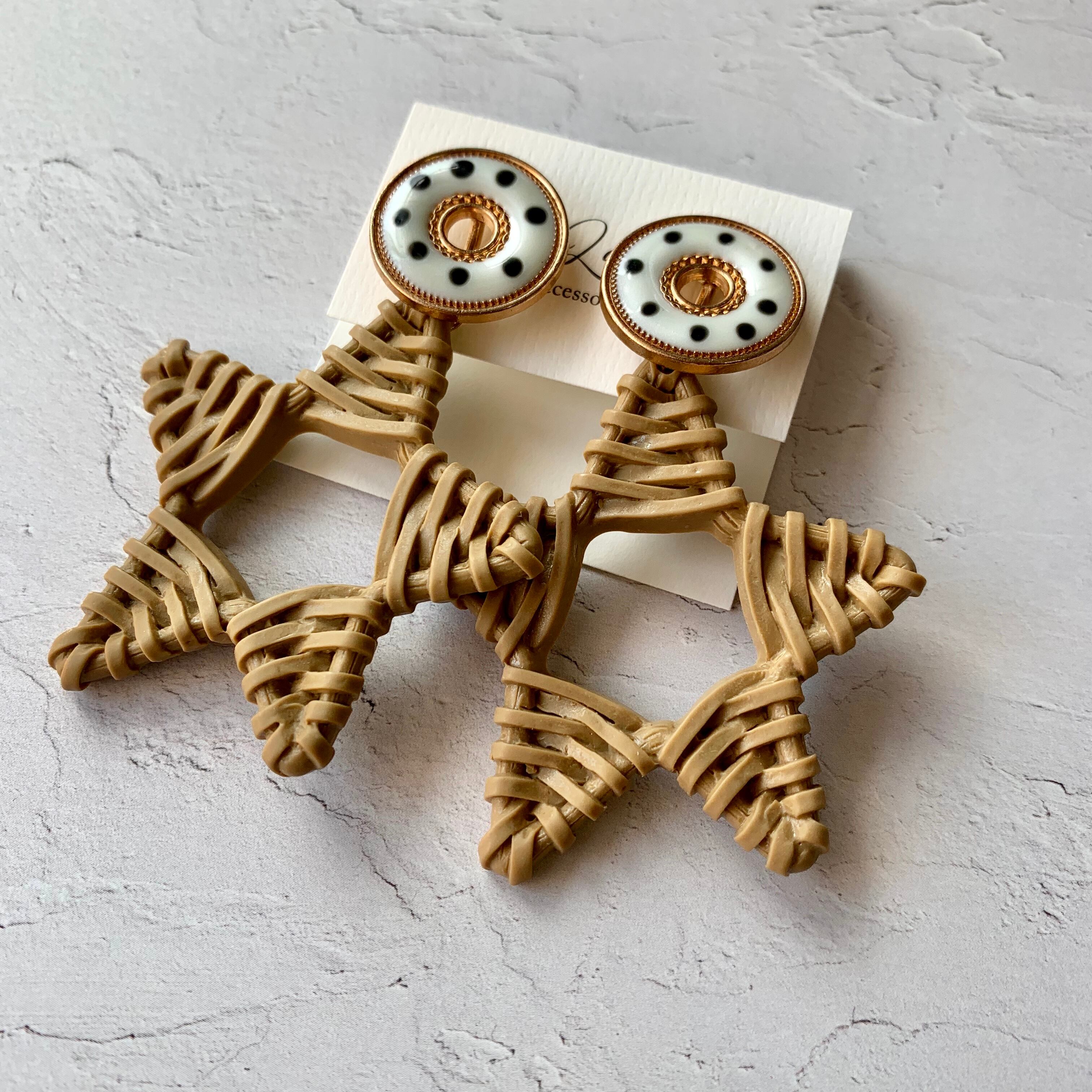 【1点物*】ドット×ラタン風スターピアス ブラウン