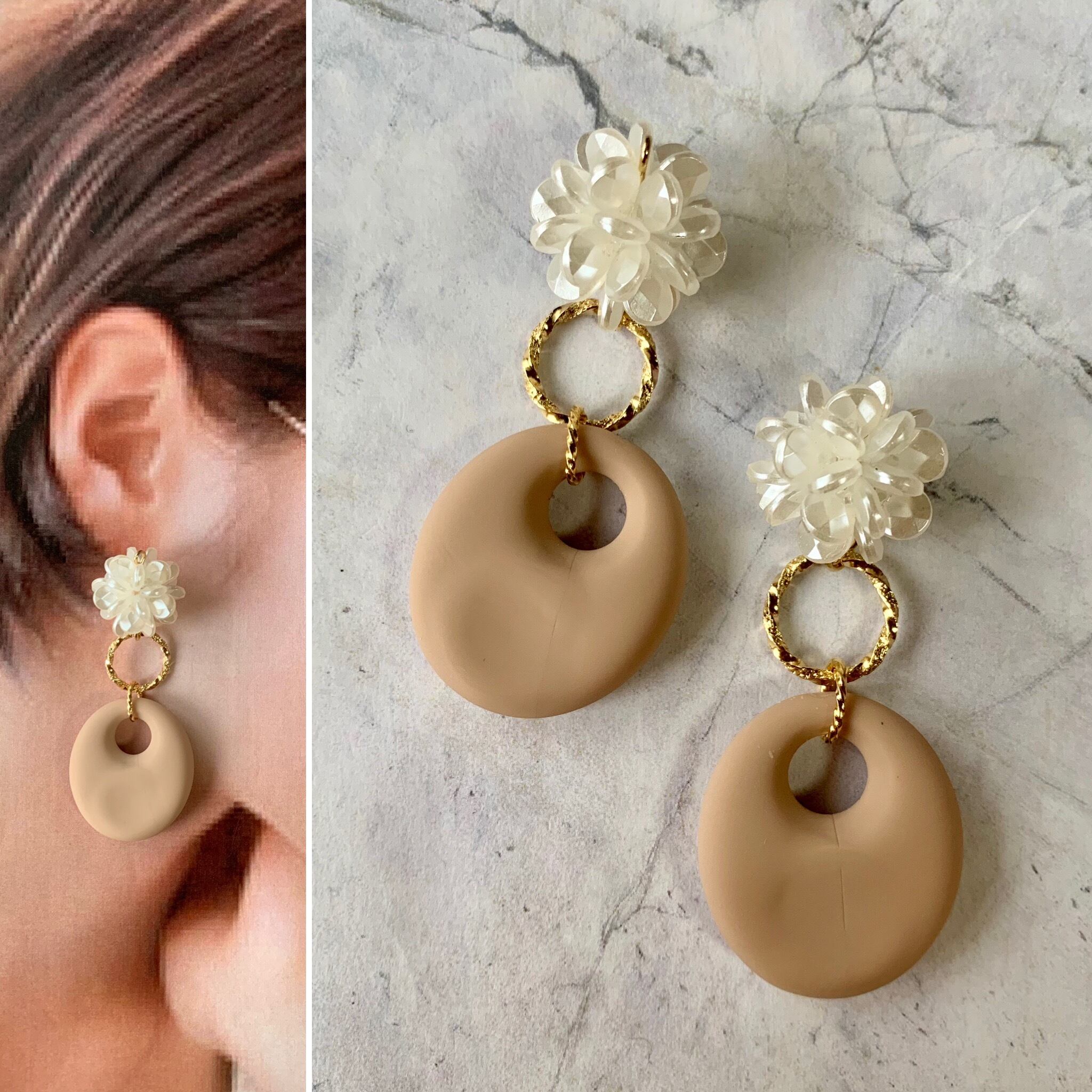 ミニフラワーボール×ぷっくり中抜きピアス ホワイトピンク