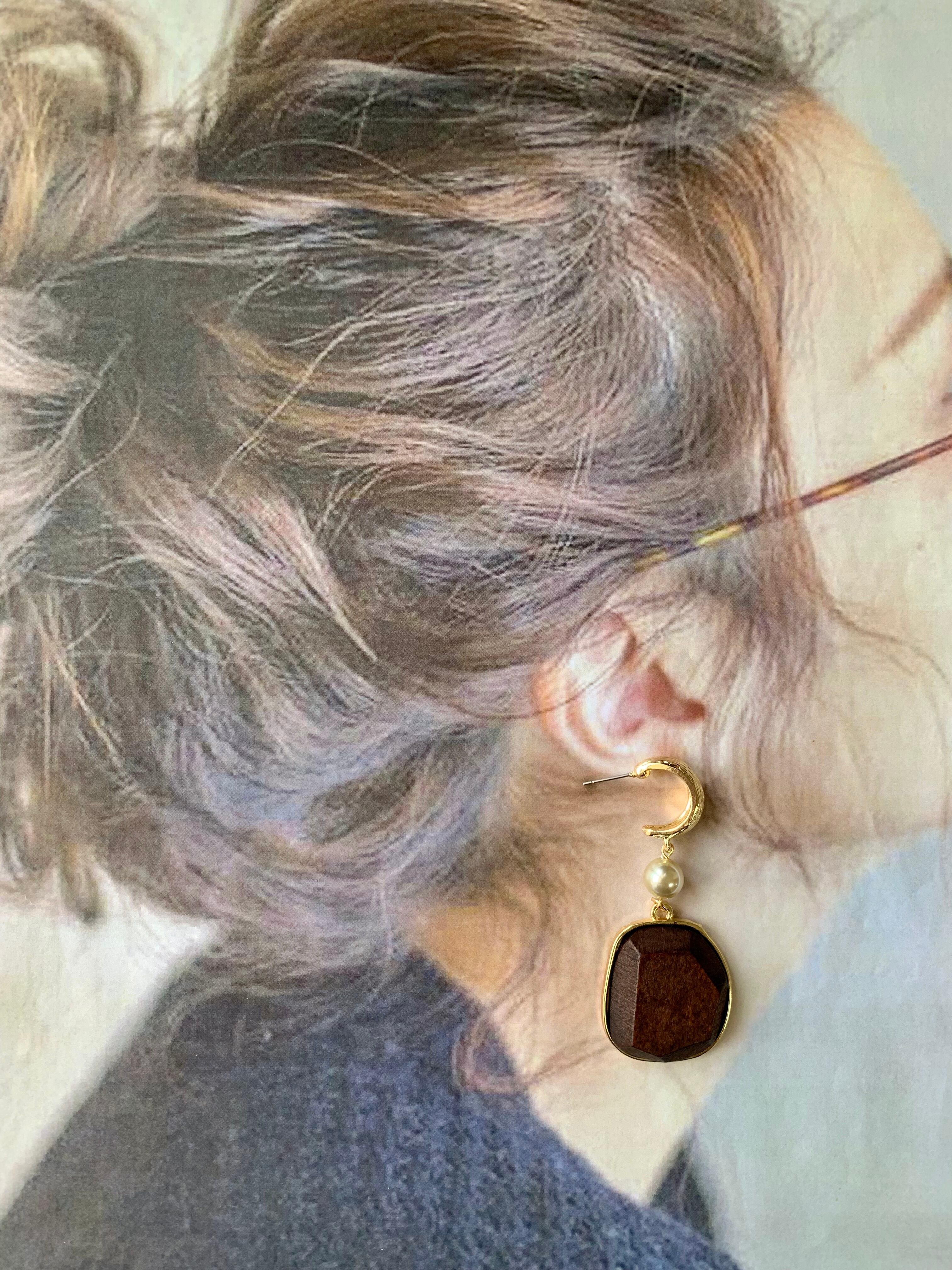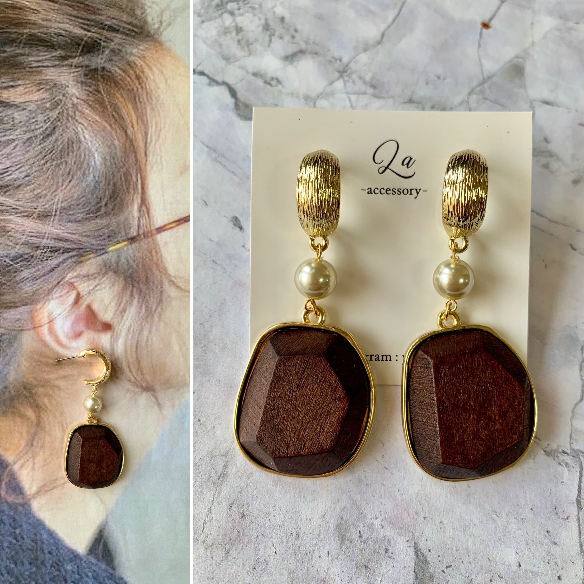 大ぶりブラウンチャームピアス