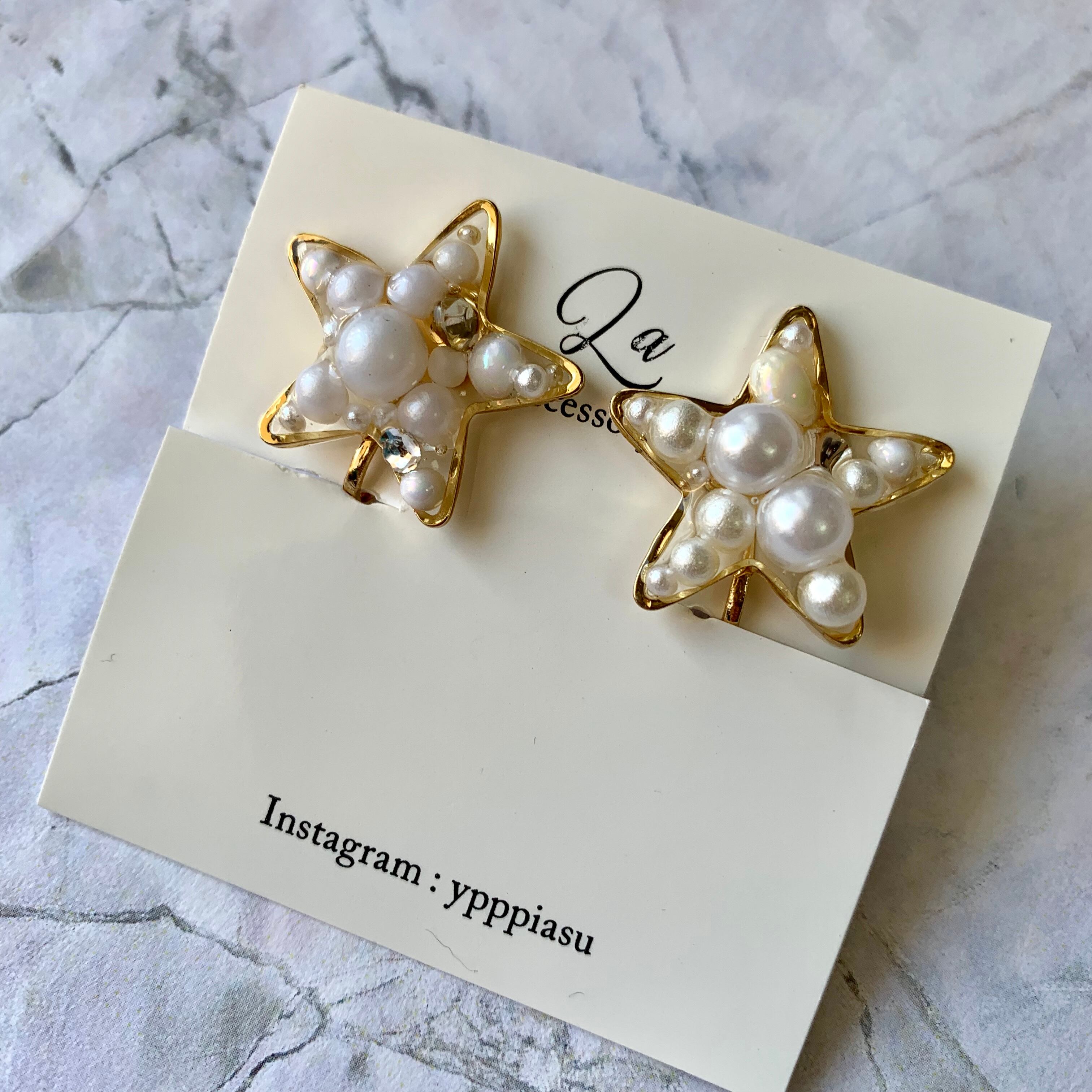 【イヤリングのみ*】パール&スワロスターイヤリング