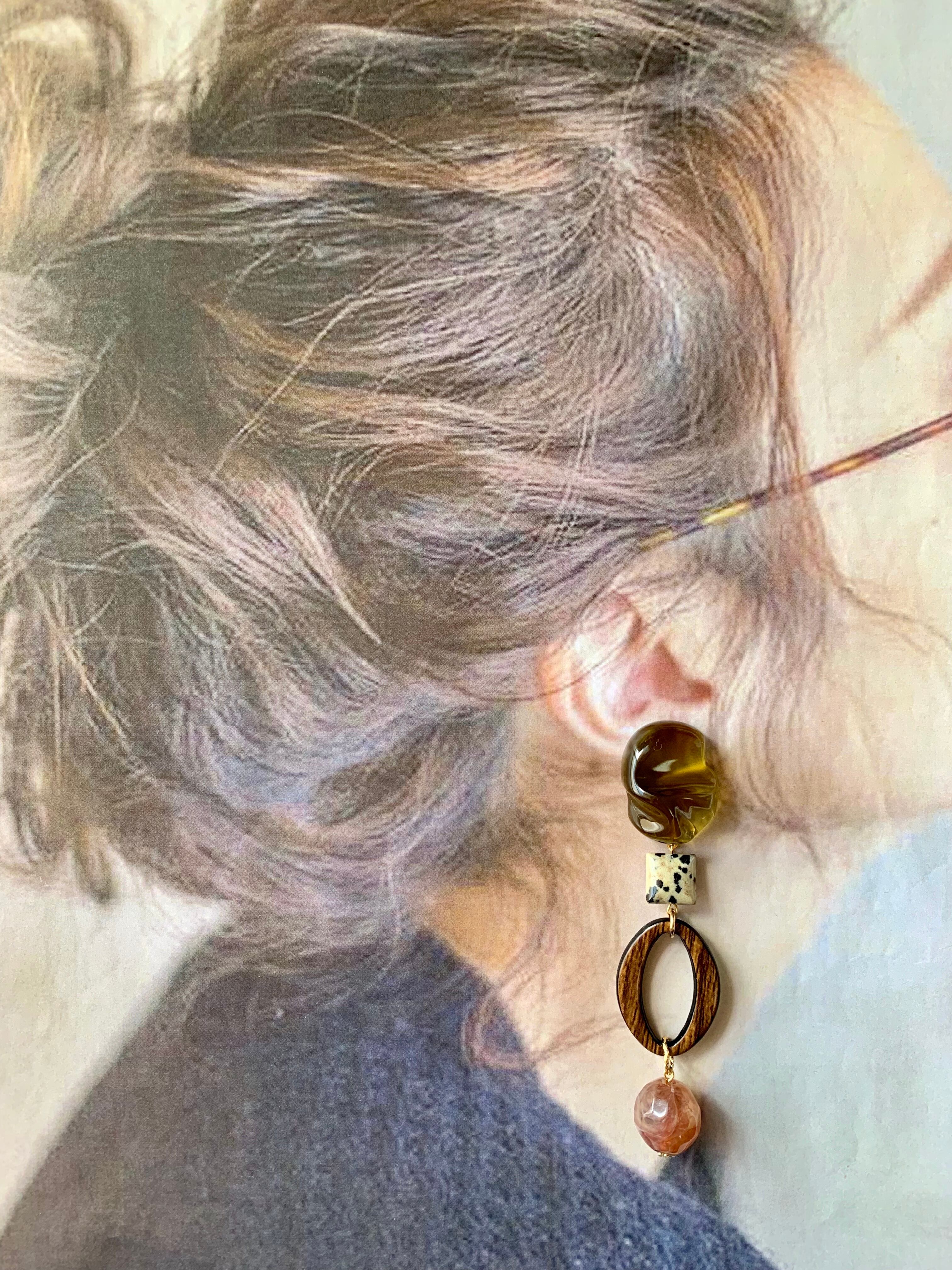 【1点物*】オリーブ×ダルメシアンピアス ピンクブラウン