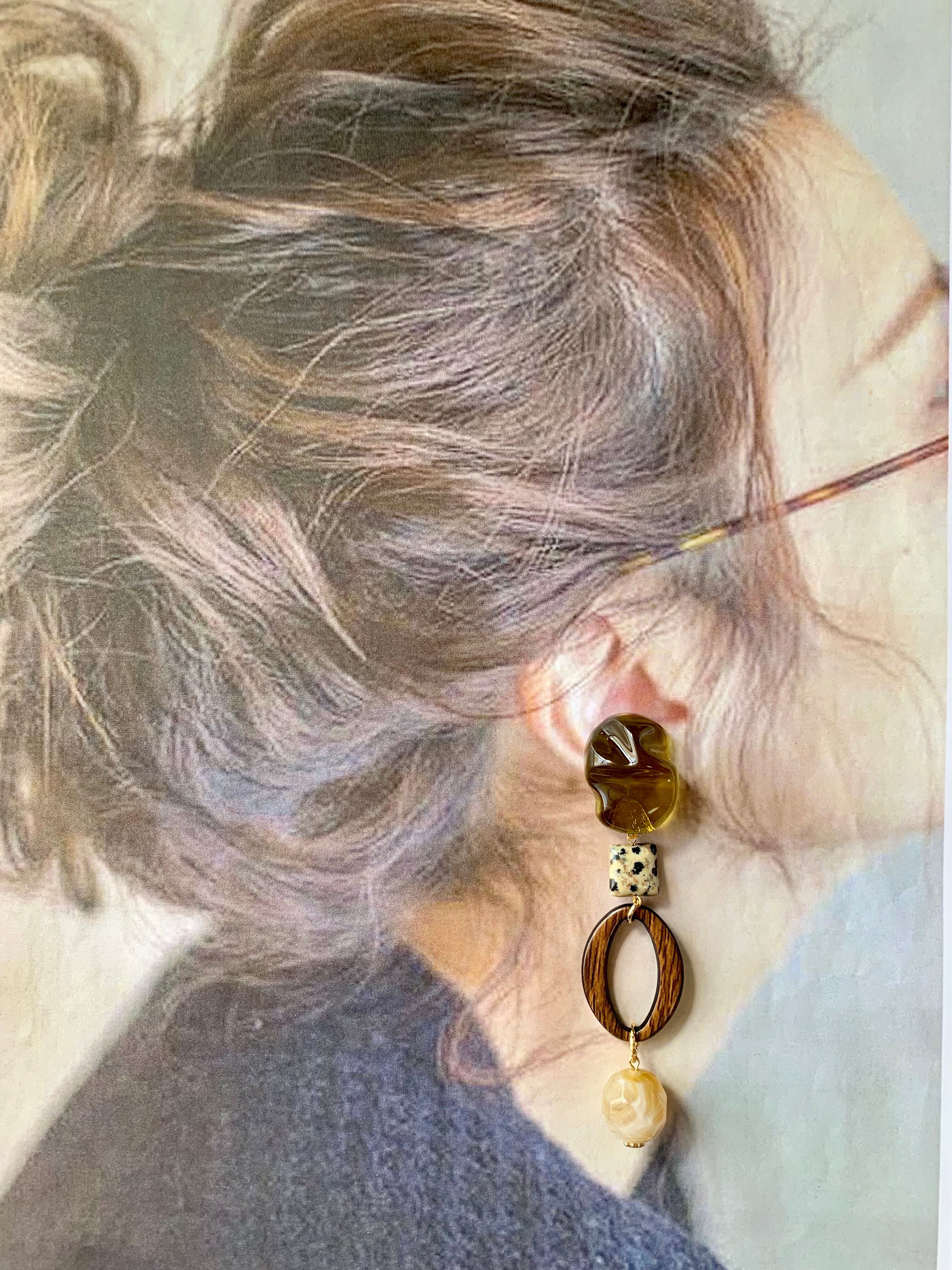 オリーブ×ダルメシアンピアス ホワイトベージュ