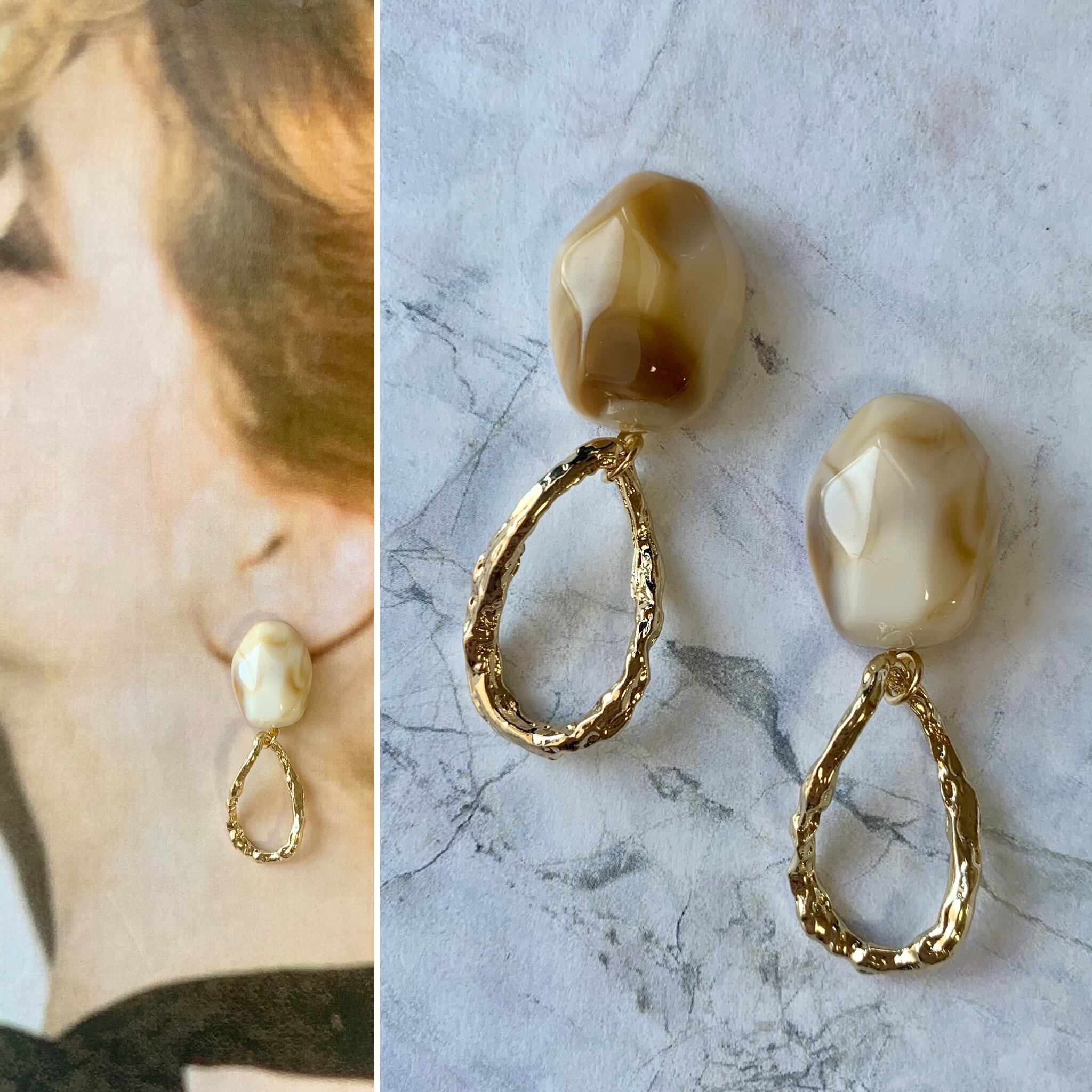 【1点物*】キャンディマーブルピアス ホワイトモカ