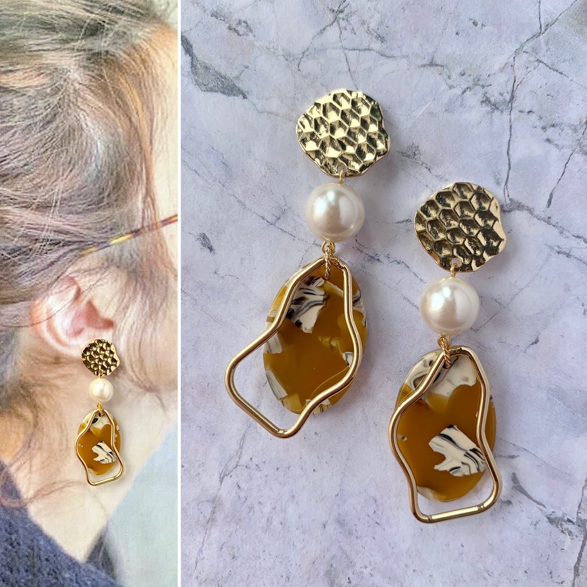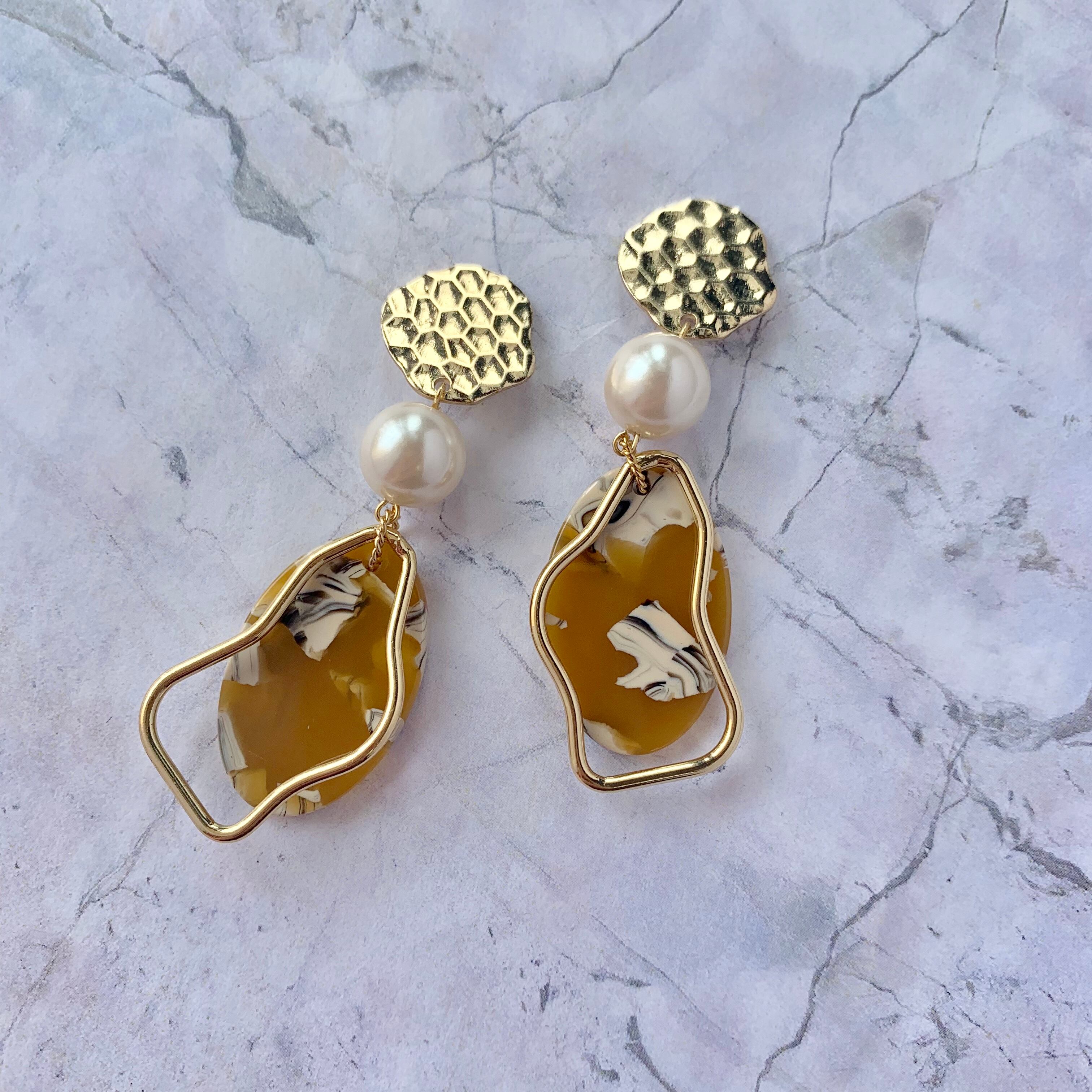 パール×マスタードプレートピアス