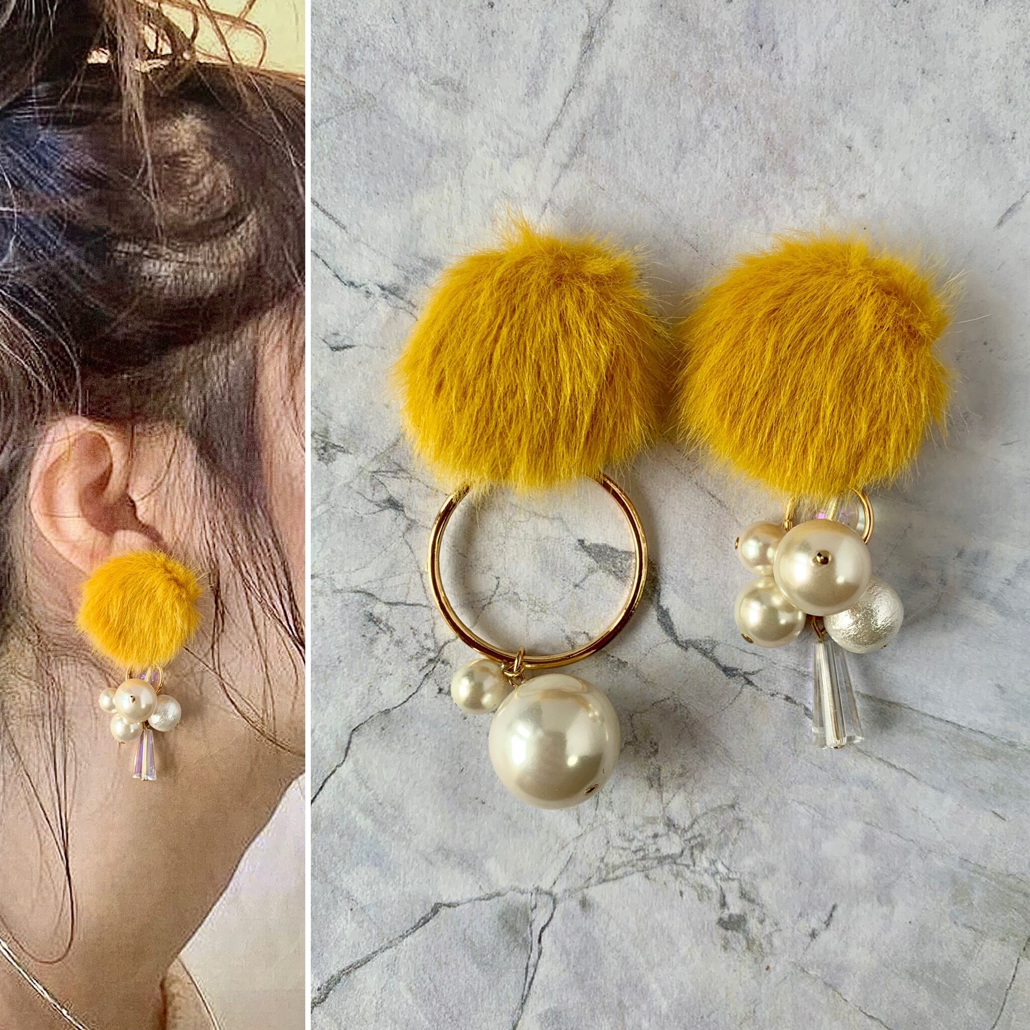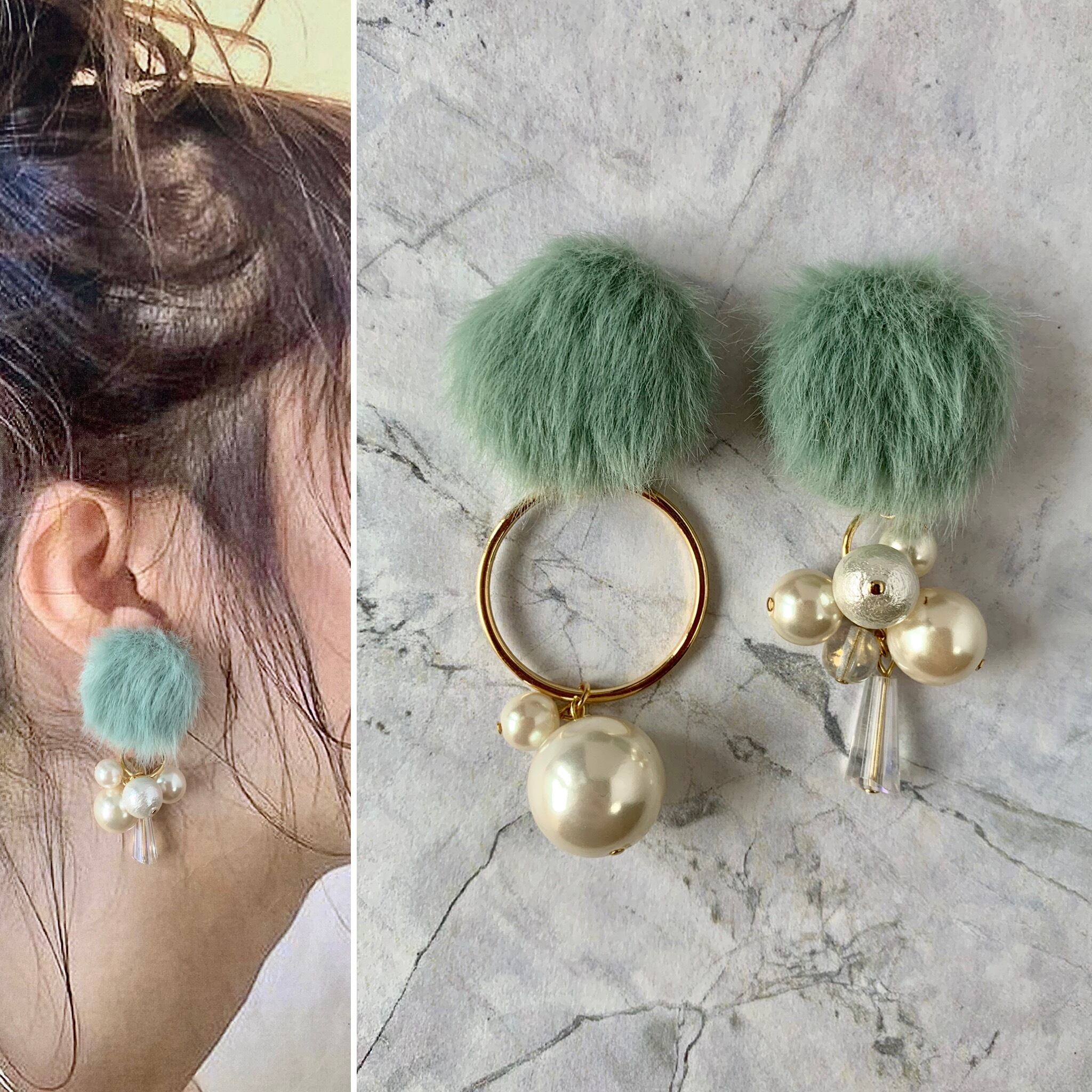 スモーキーファー×パールアシメピアス