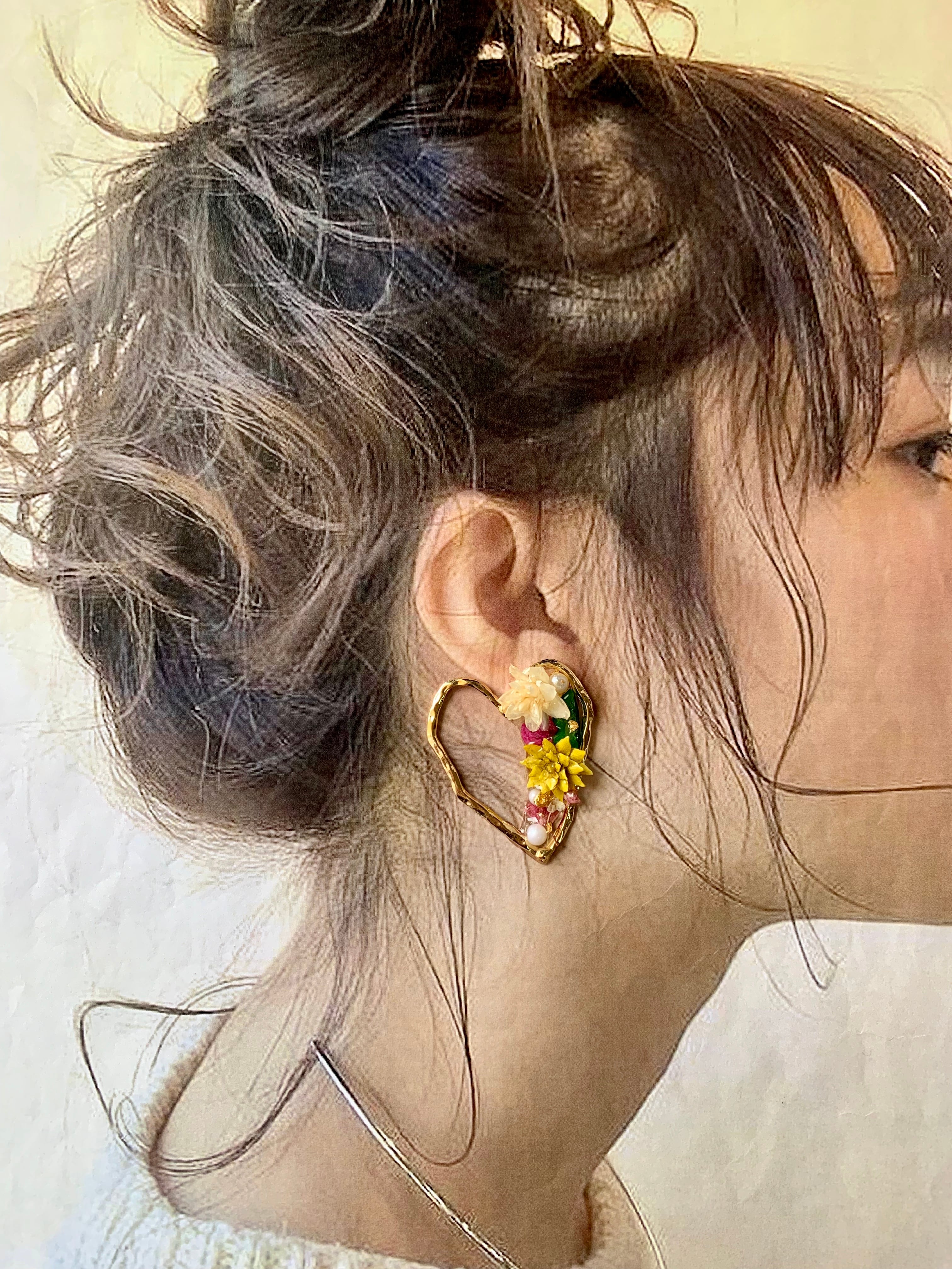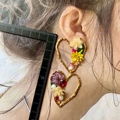 【1点物*】ハート枠華やかフラワーピアス B