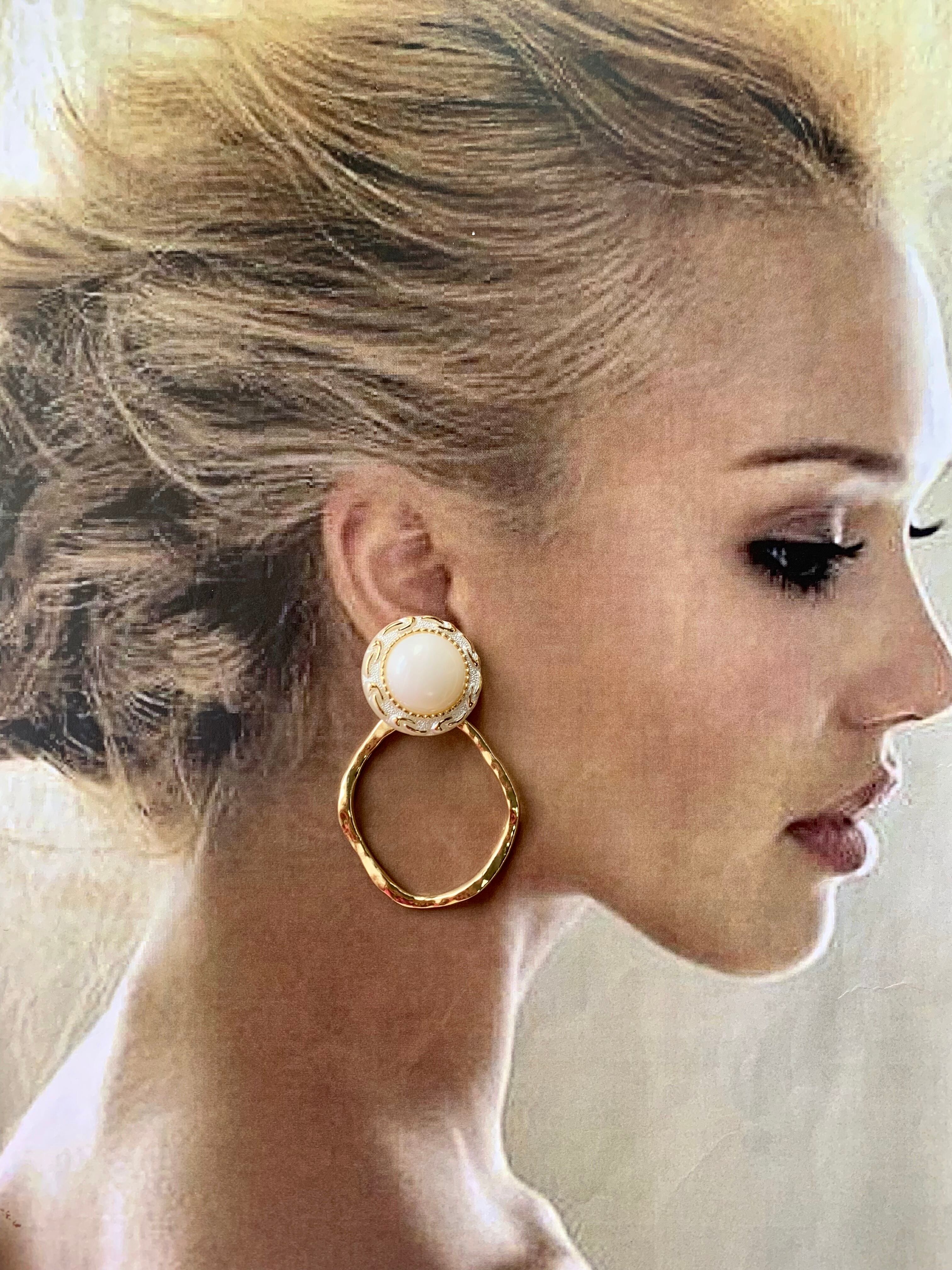【ピアスのみ*】アンティークホワイトボタンピアス C