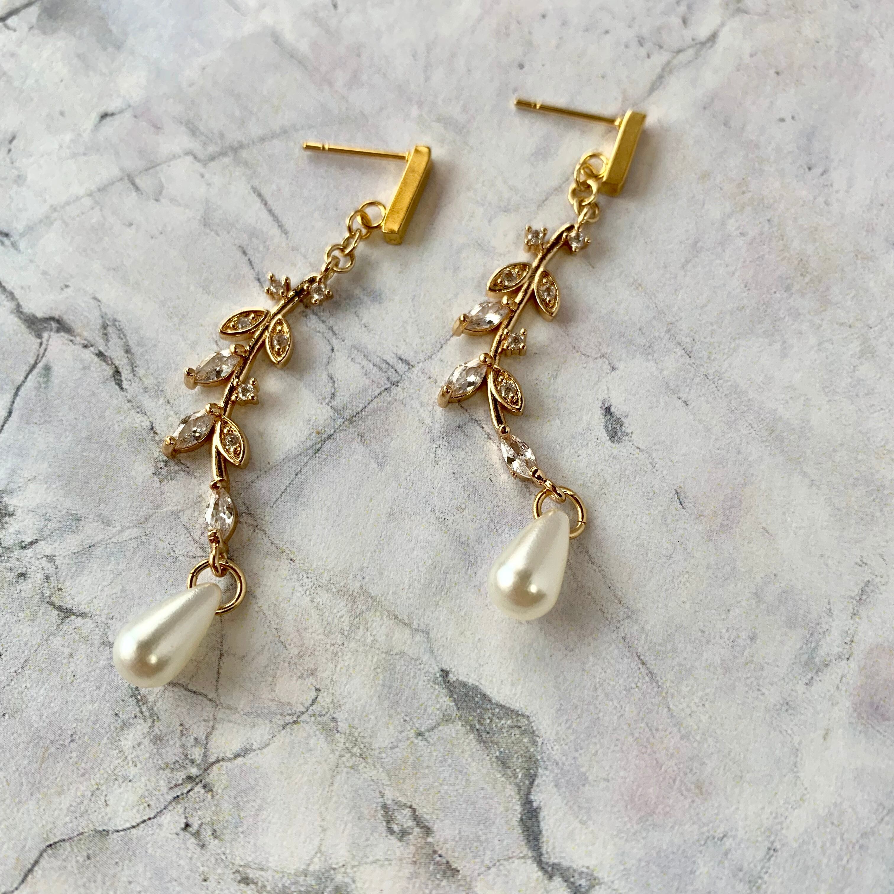 【ピアスのみ*】ビジューリーフ×しずくパールピアス