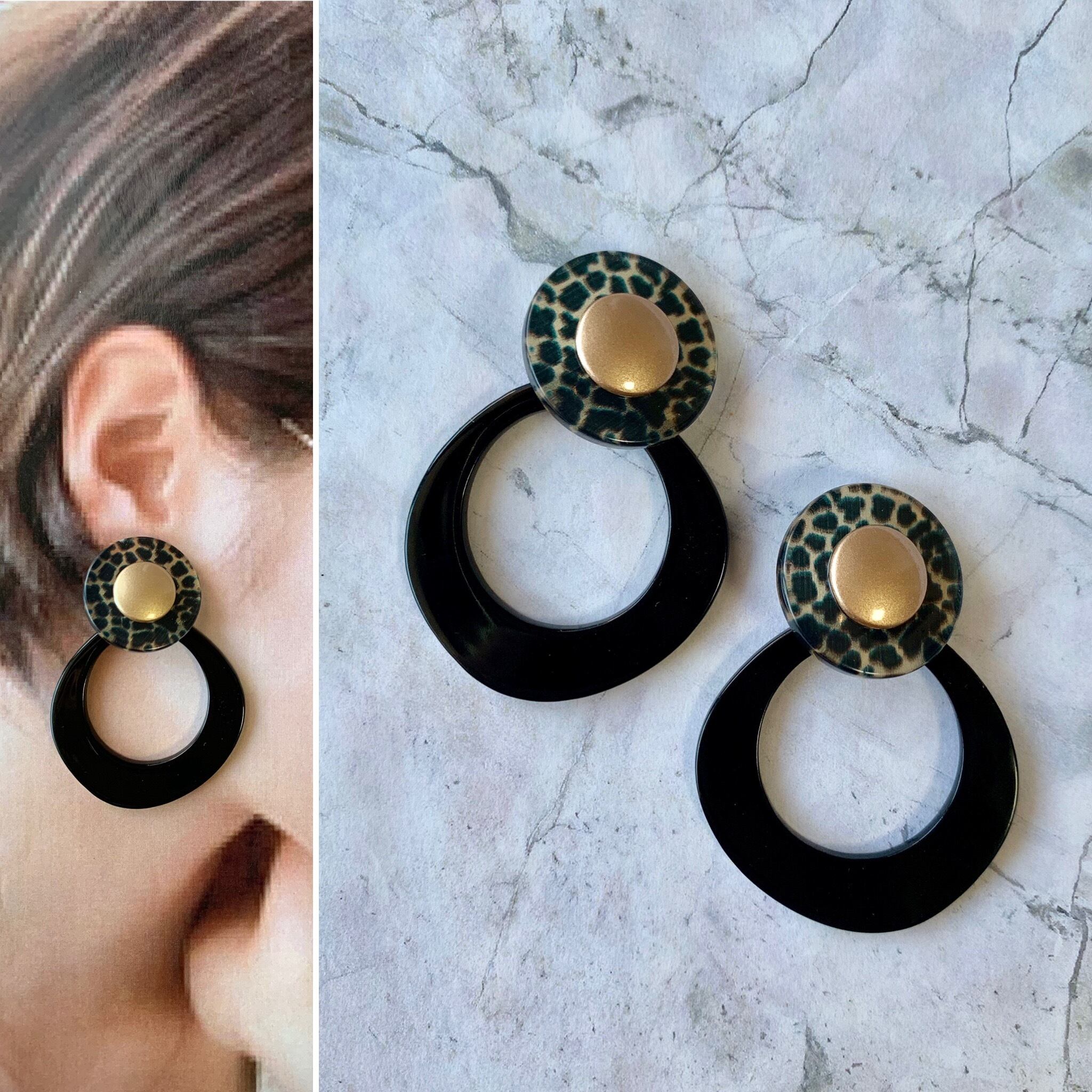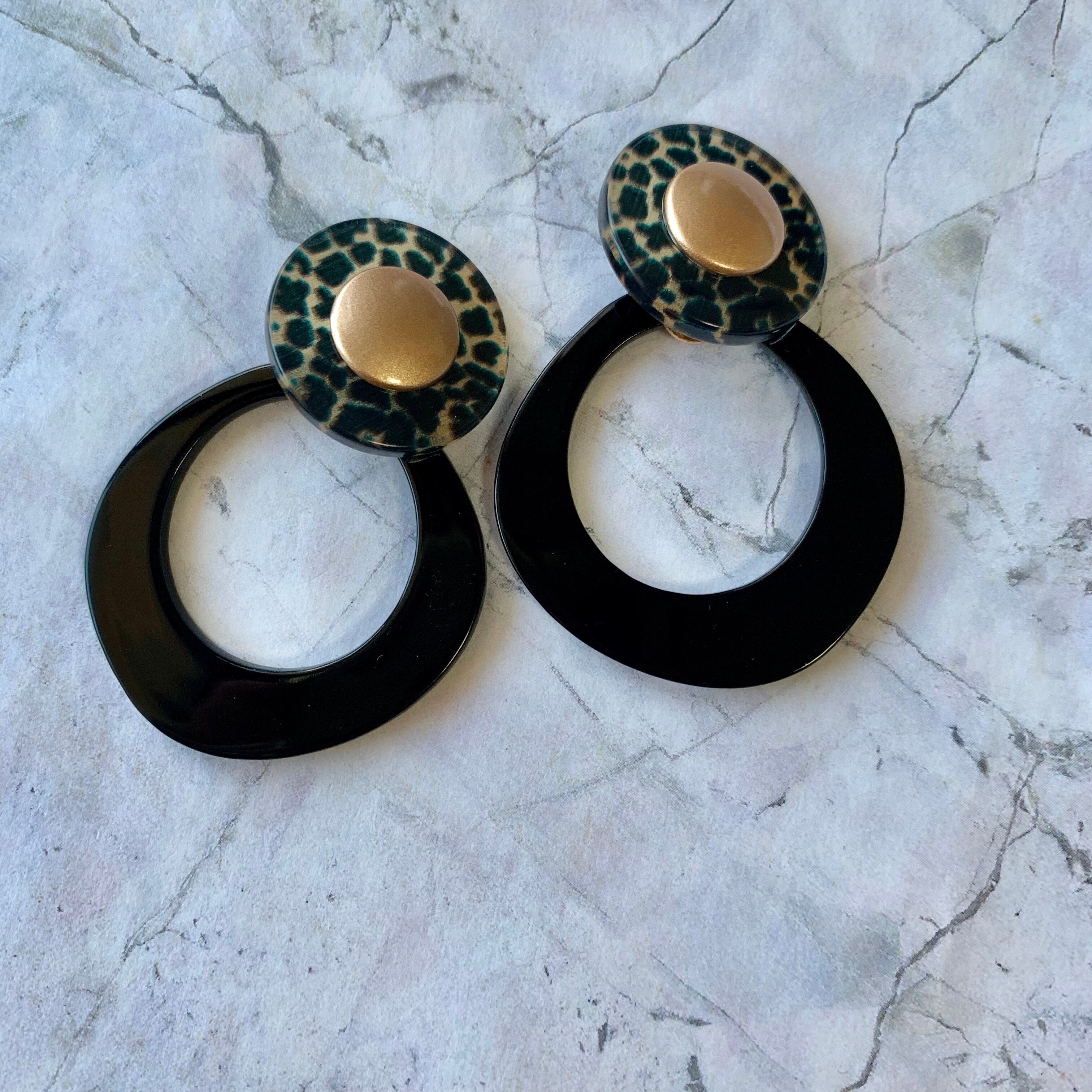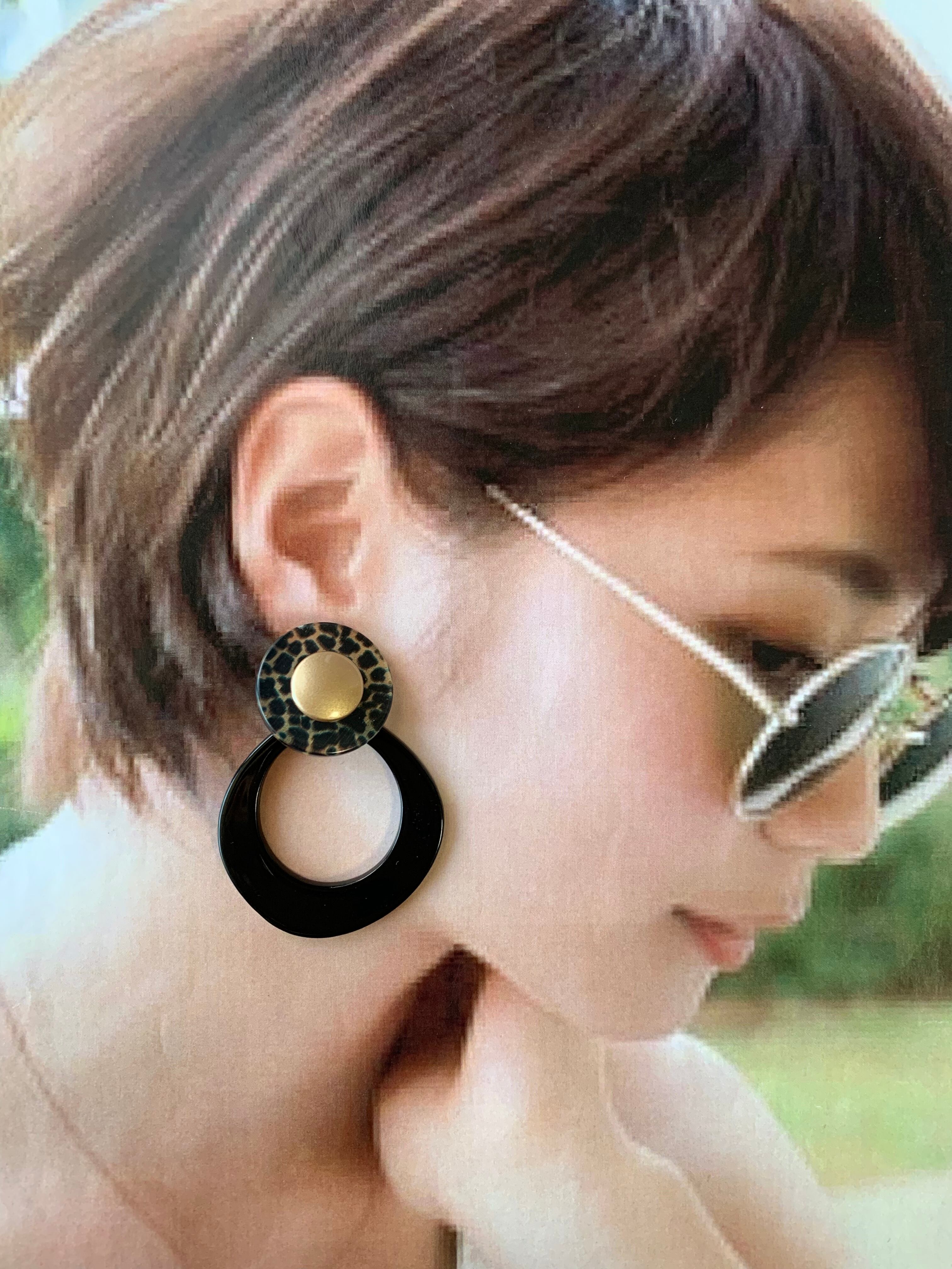 【ピアスのみ*】レオパボタン×ブラックピアス