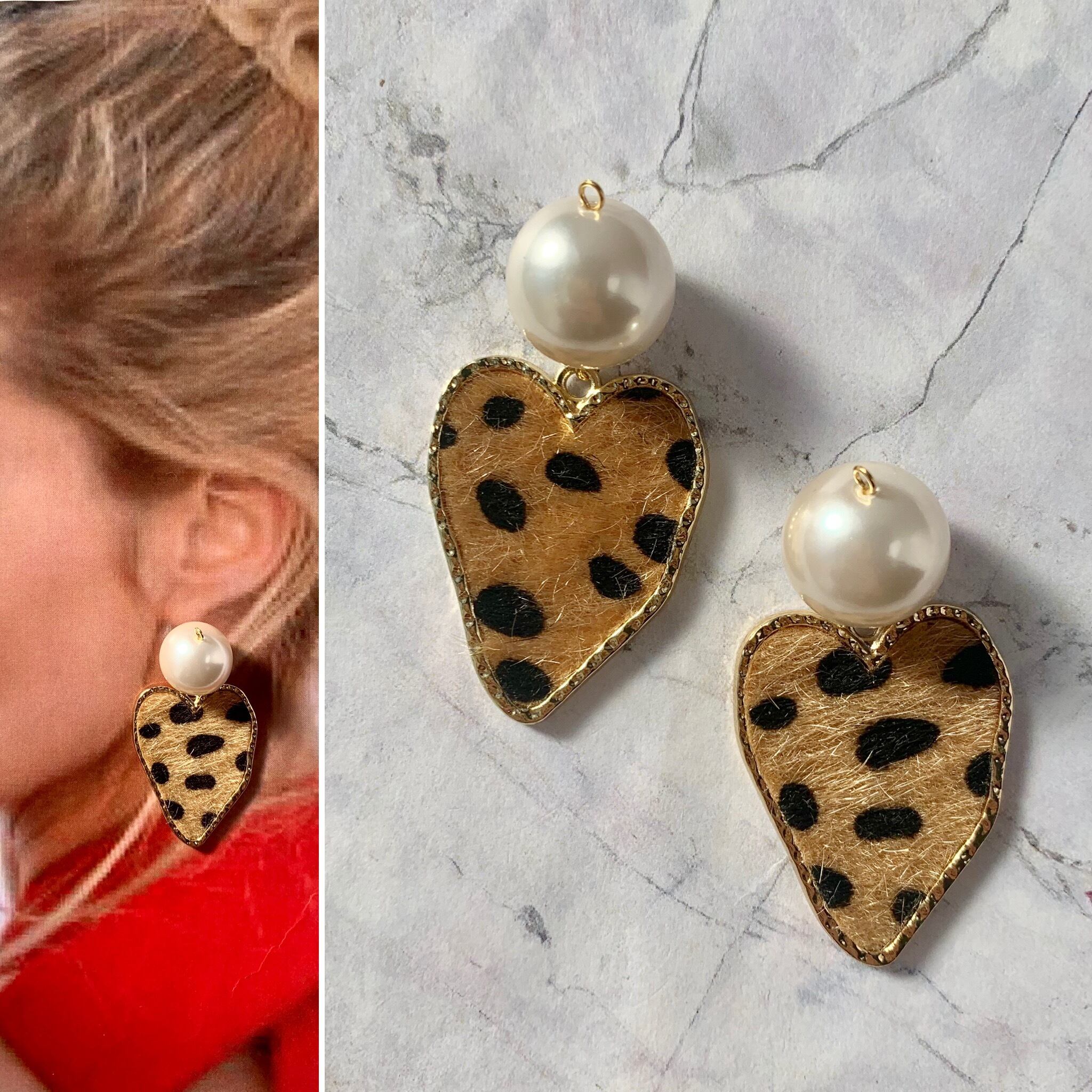 【1点物*】パール×ダルメシアンハートピアス ブラウン