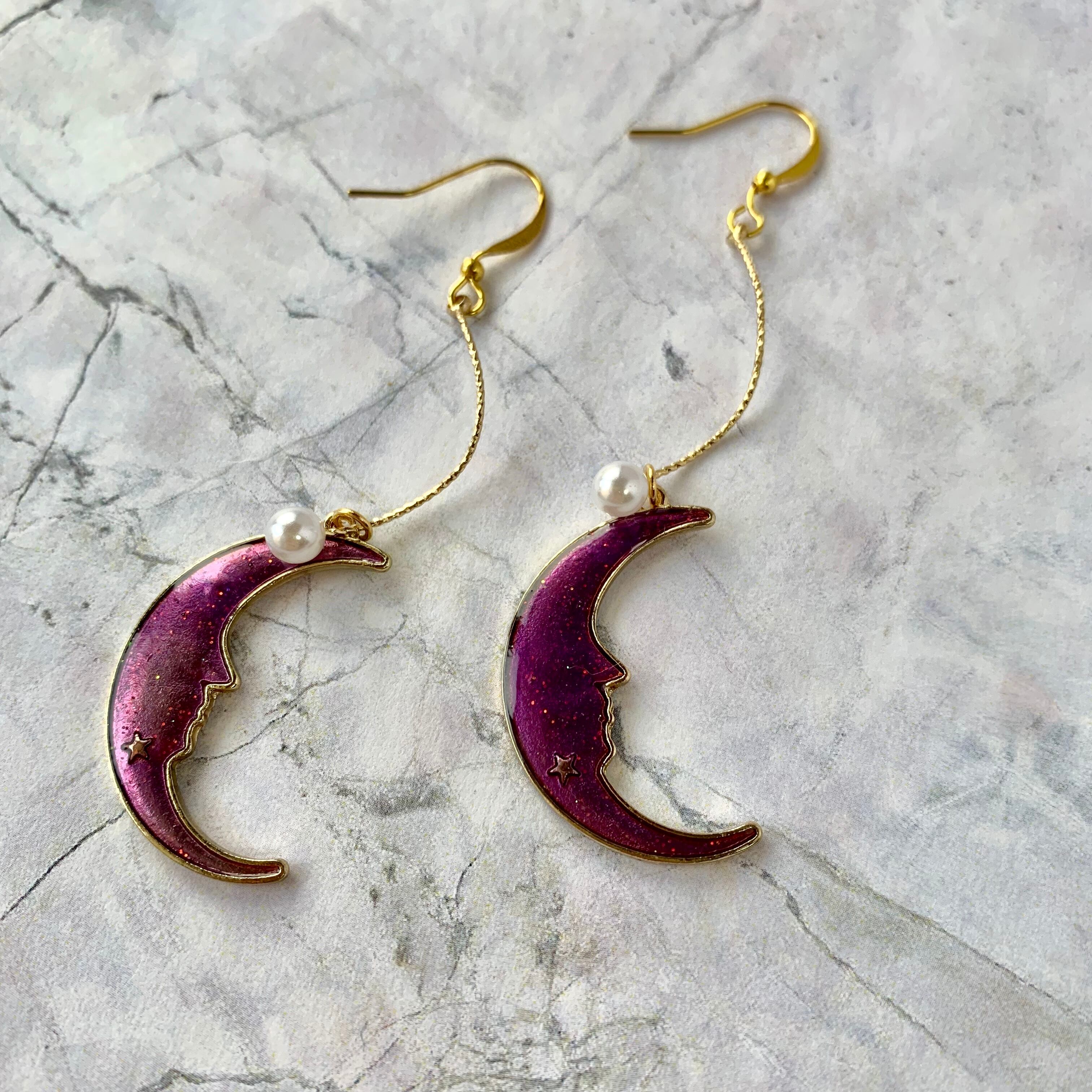 【1点物*】三日月横顔ピアス パープル