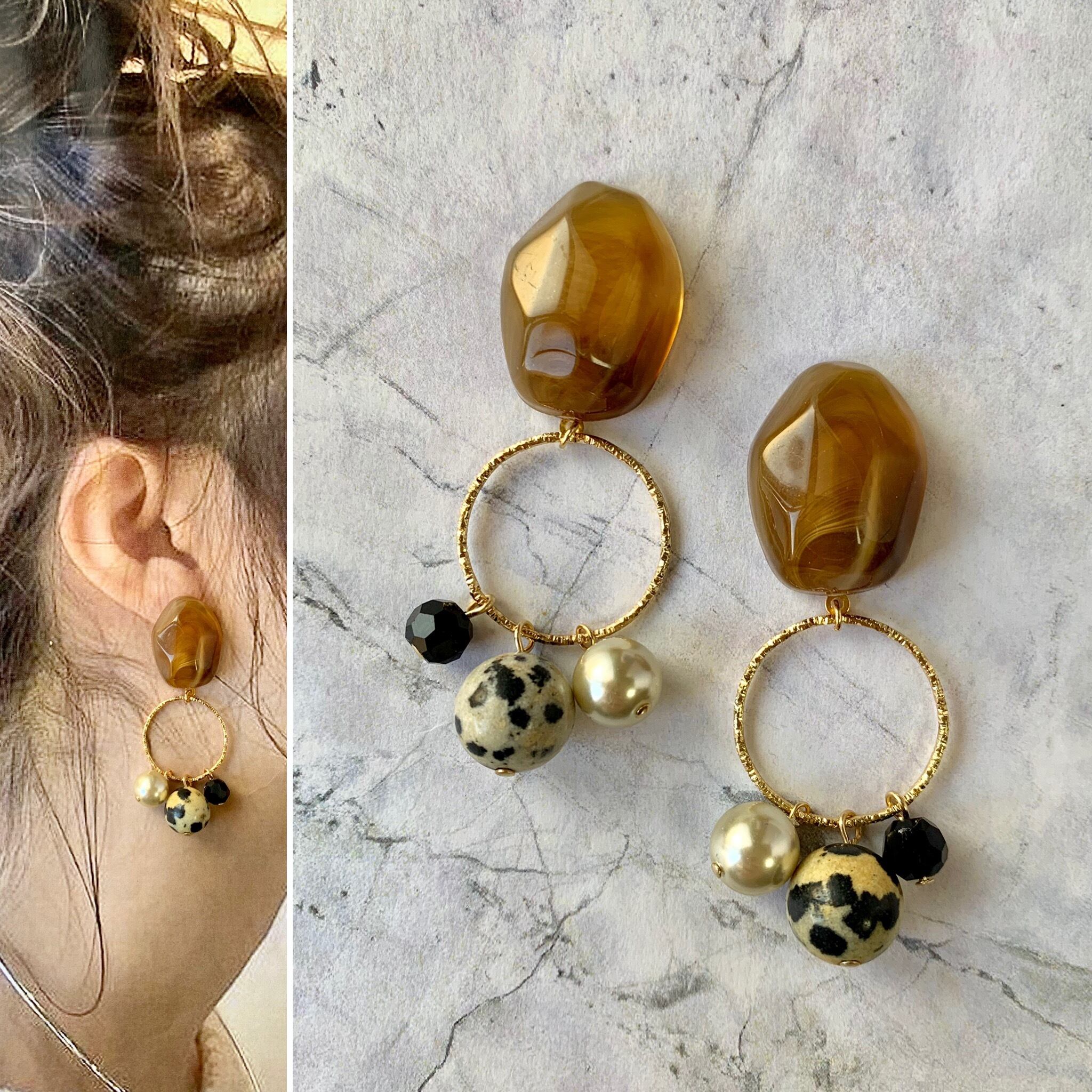 マーブル×ダルメシアンピアス ブラウン