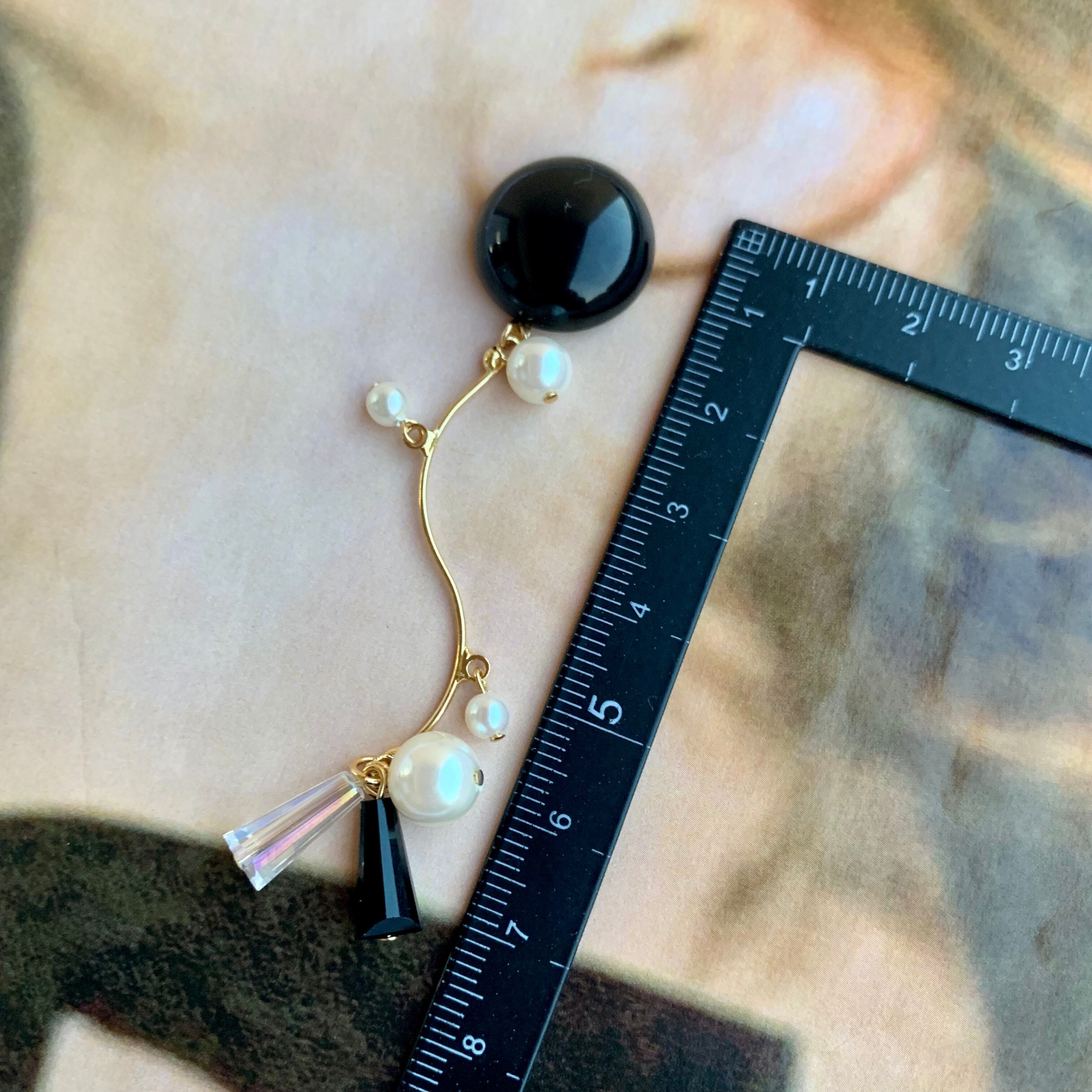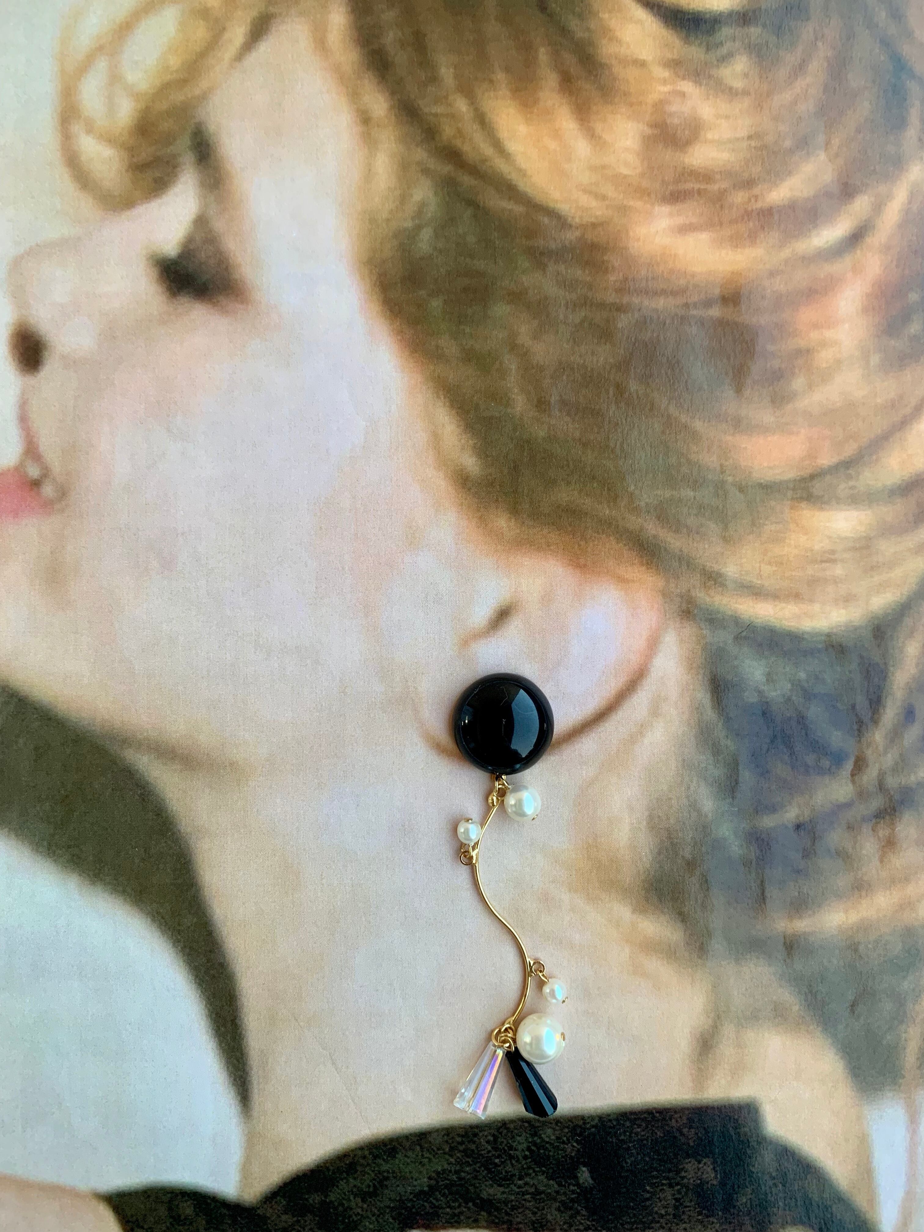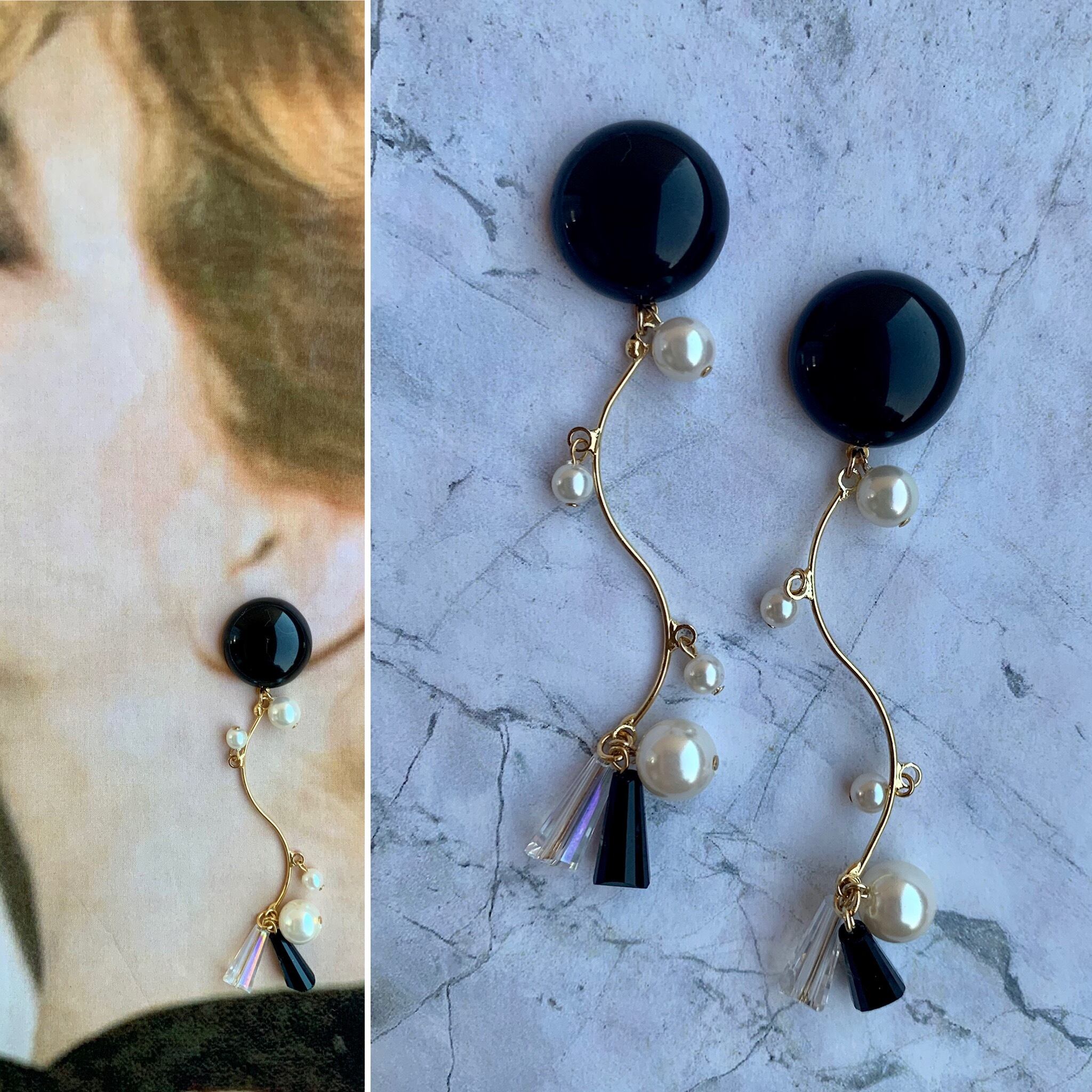 ロングピアスにパールとガラスカットビーズをあしらいました(❀ᴗ͈ˬᴗ͈)