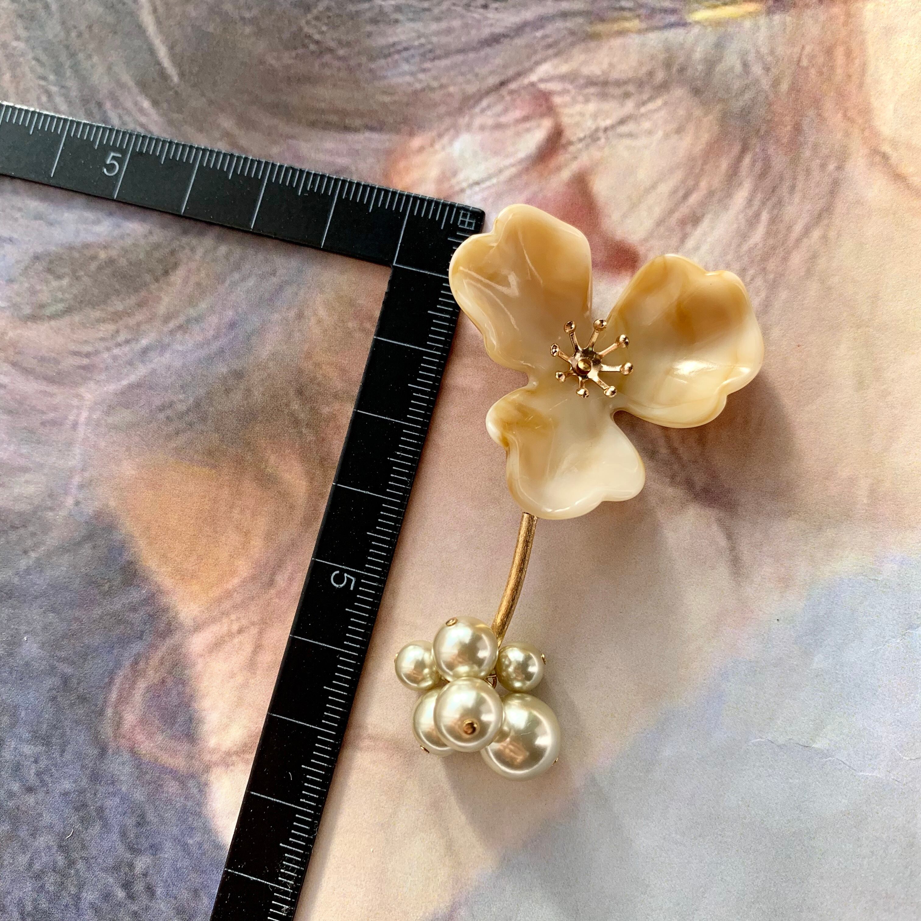 大ぶりラテフラワー×じゃらじゃらピアス ベージュ