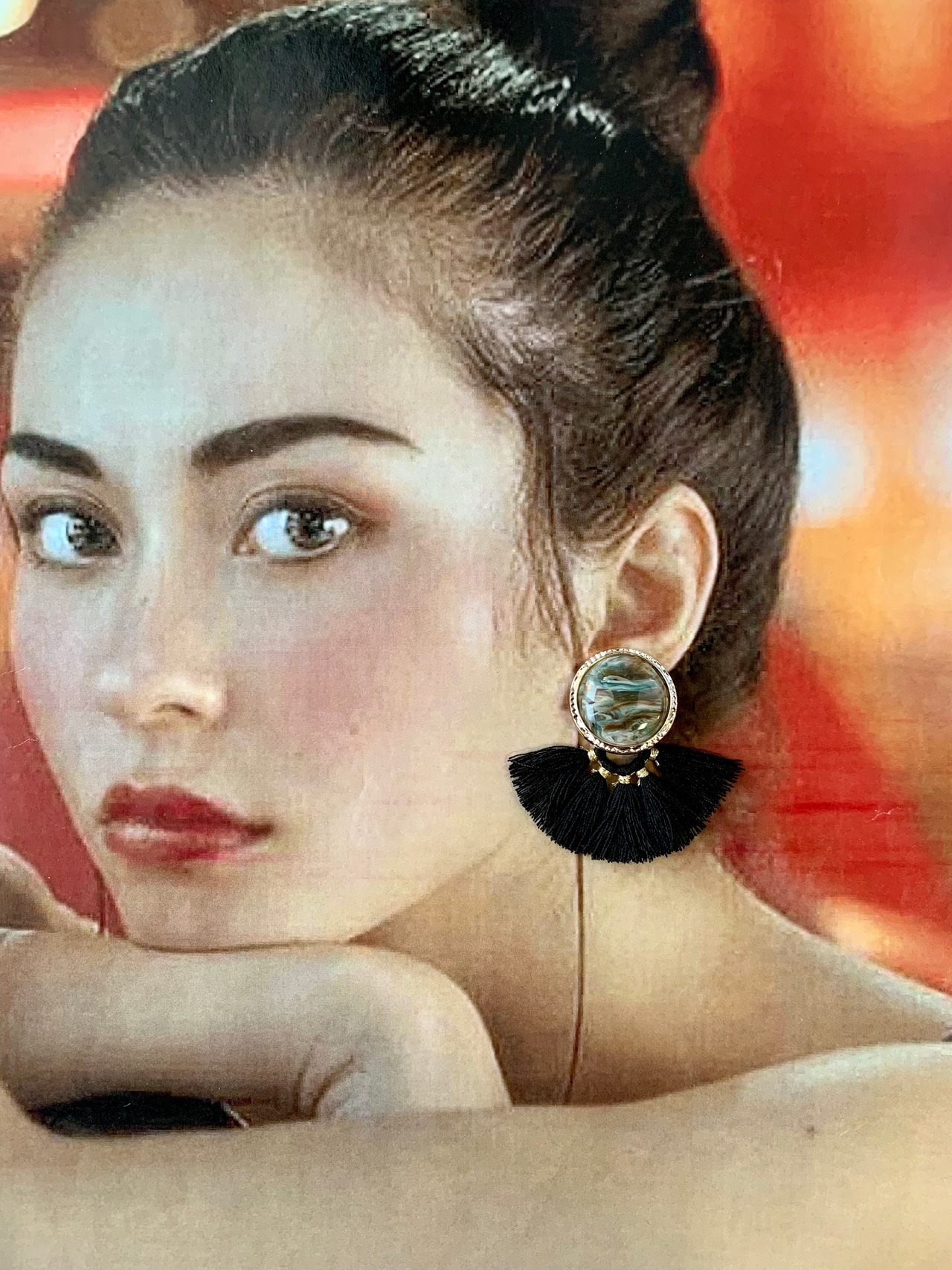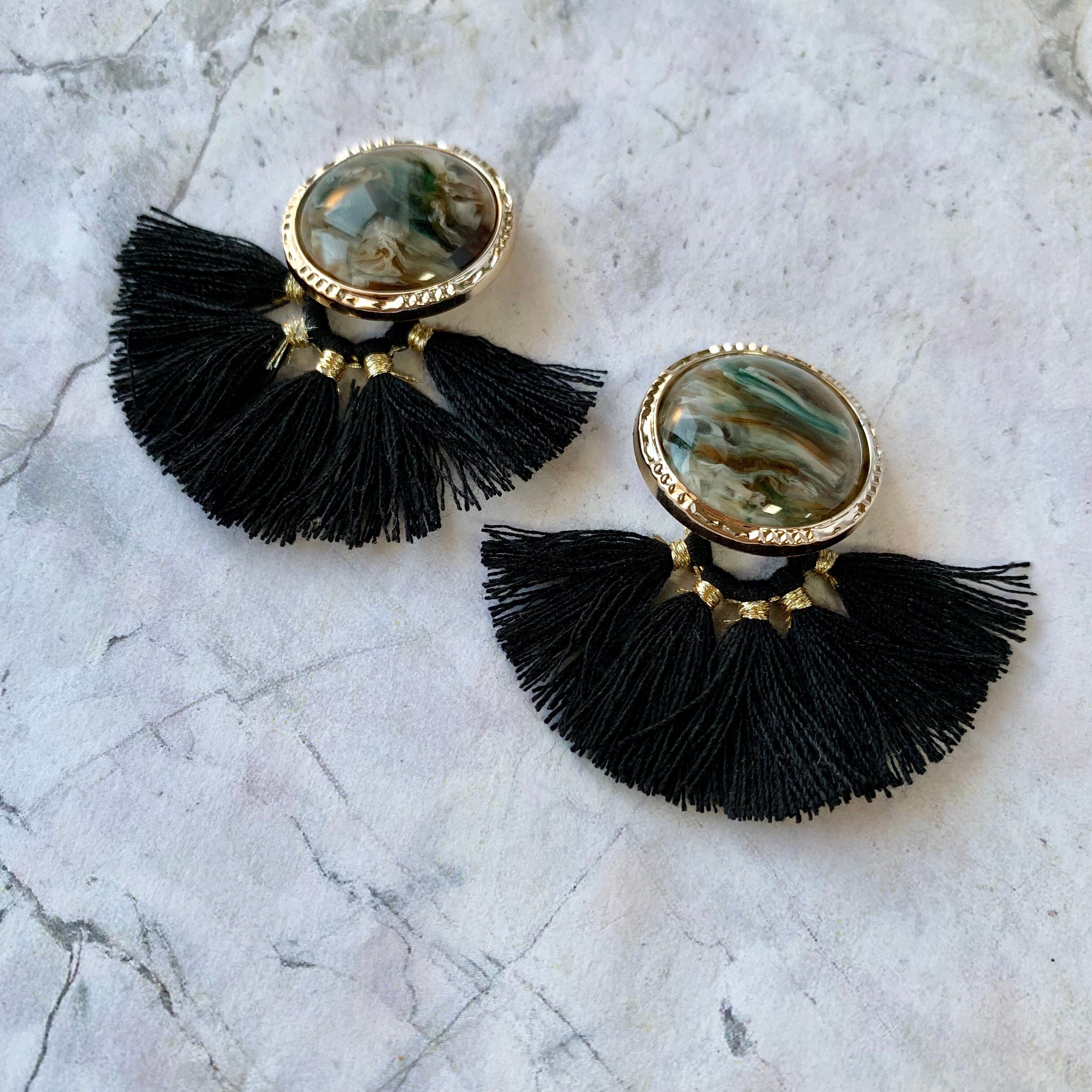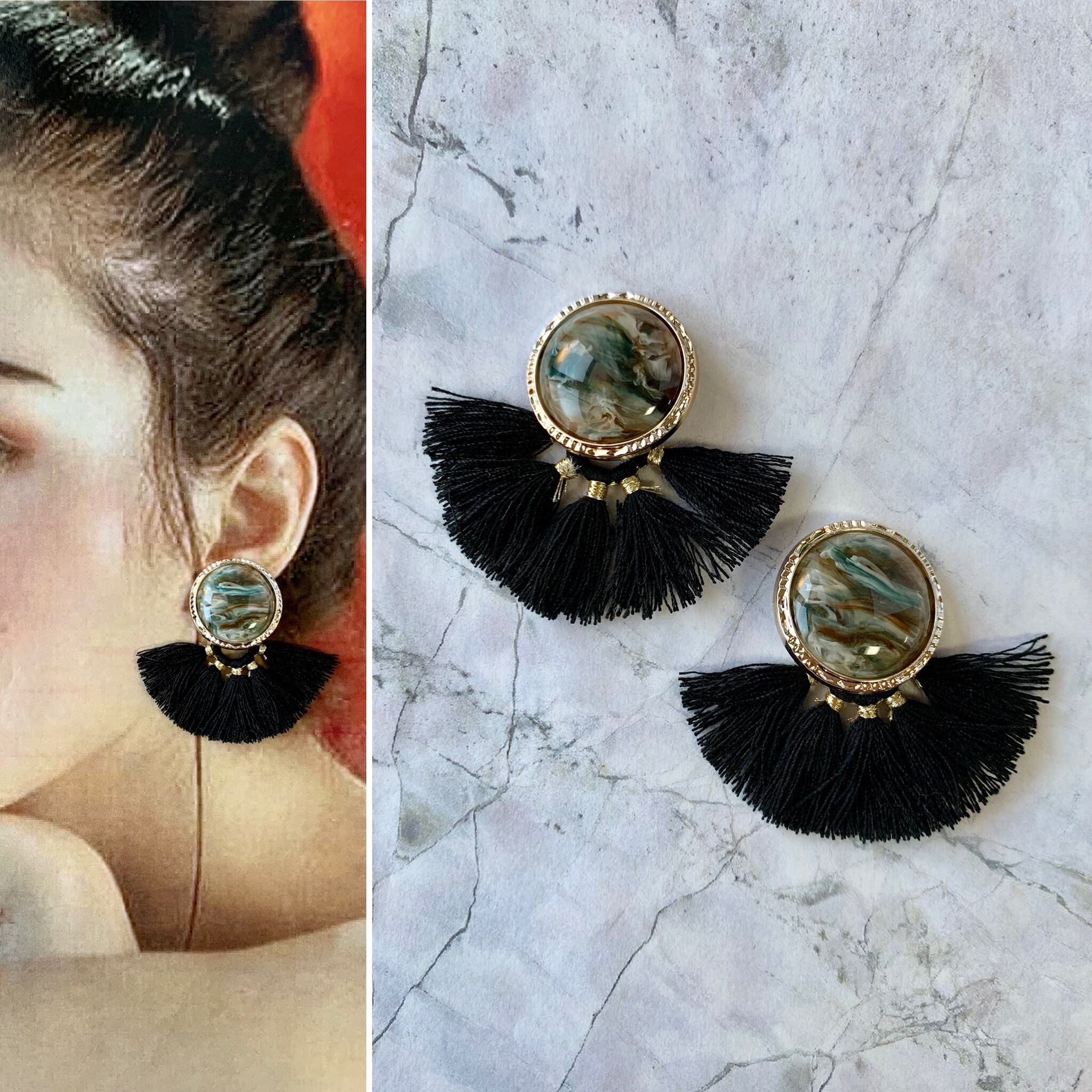 マーブルカボション×扇タッセルピアス