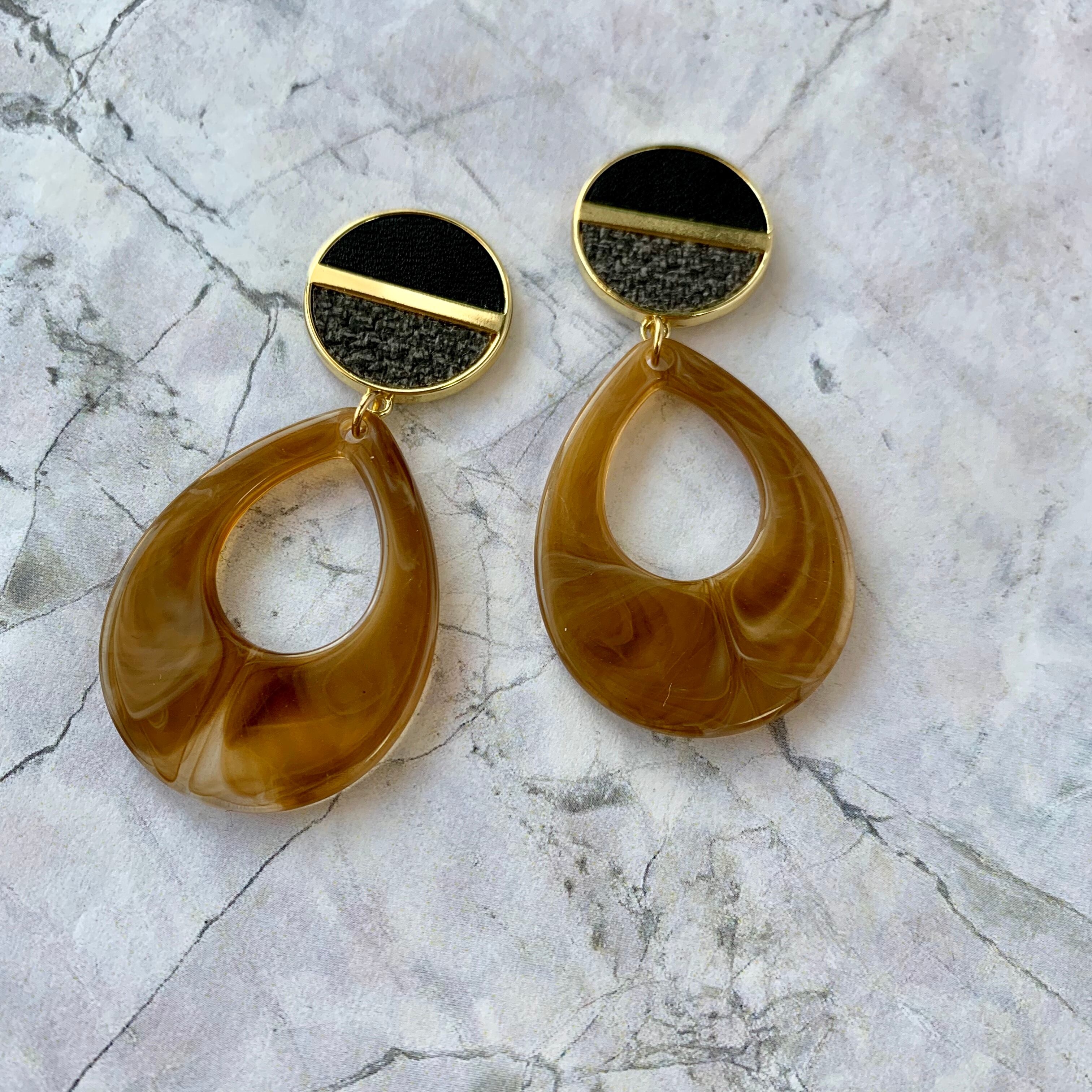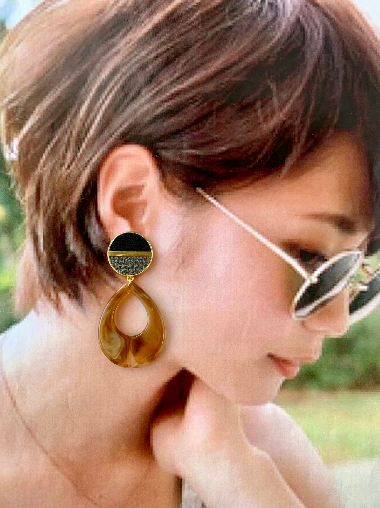 【1点物*】ハーフカボション×中抜きマーブル ブラック