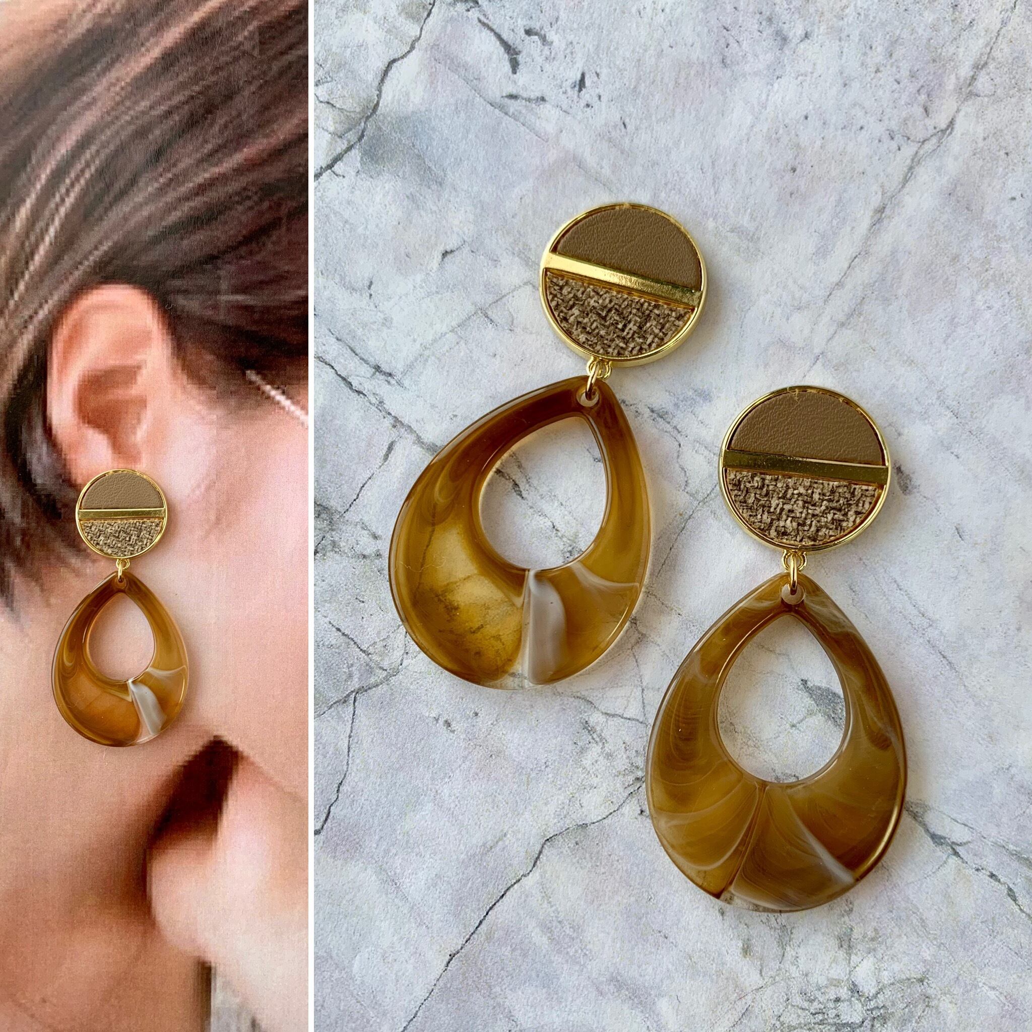 【1点物*】ハーフカボション×中抜きマーブル キャメル