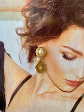 【1点物*】アンティーク風カボション×中抜きレザー調ピアス キャメル