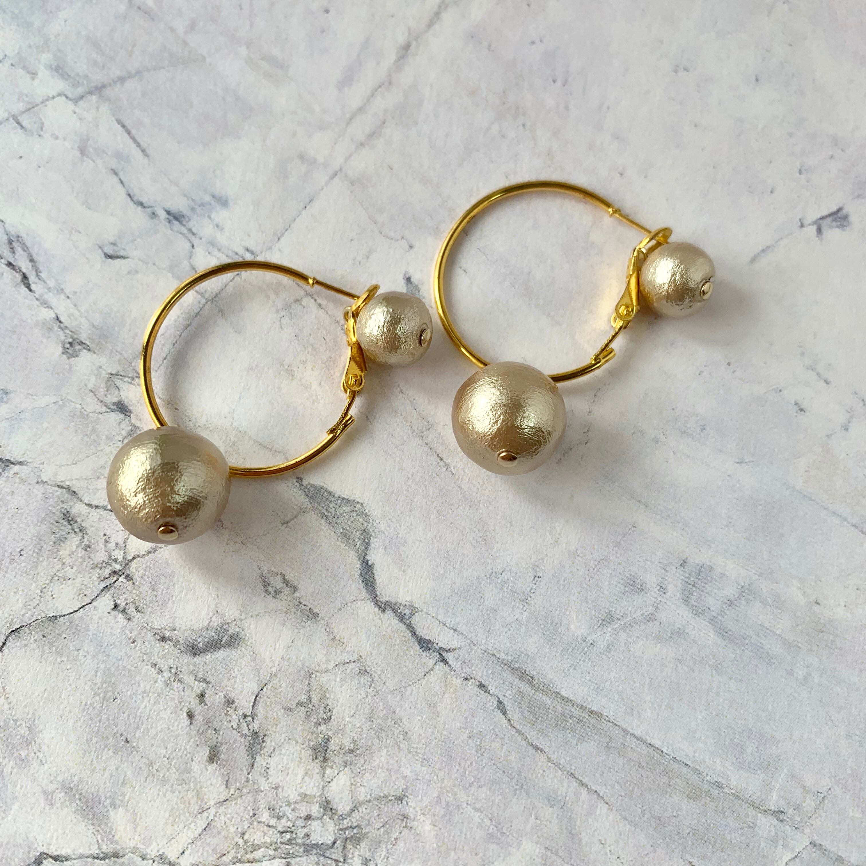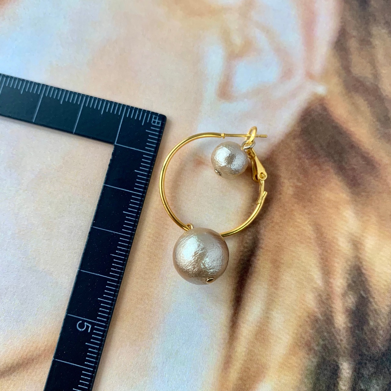 【金属ピアスのみ*】高品質ゴールドコットンパール控えめフープピアス