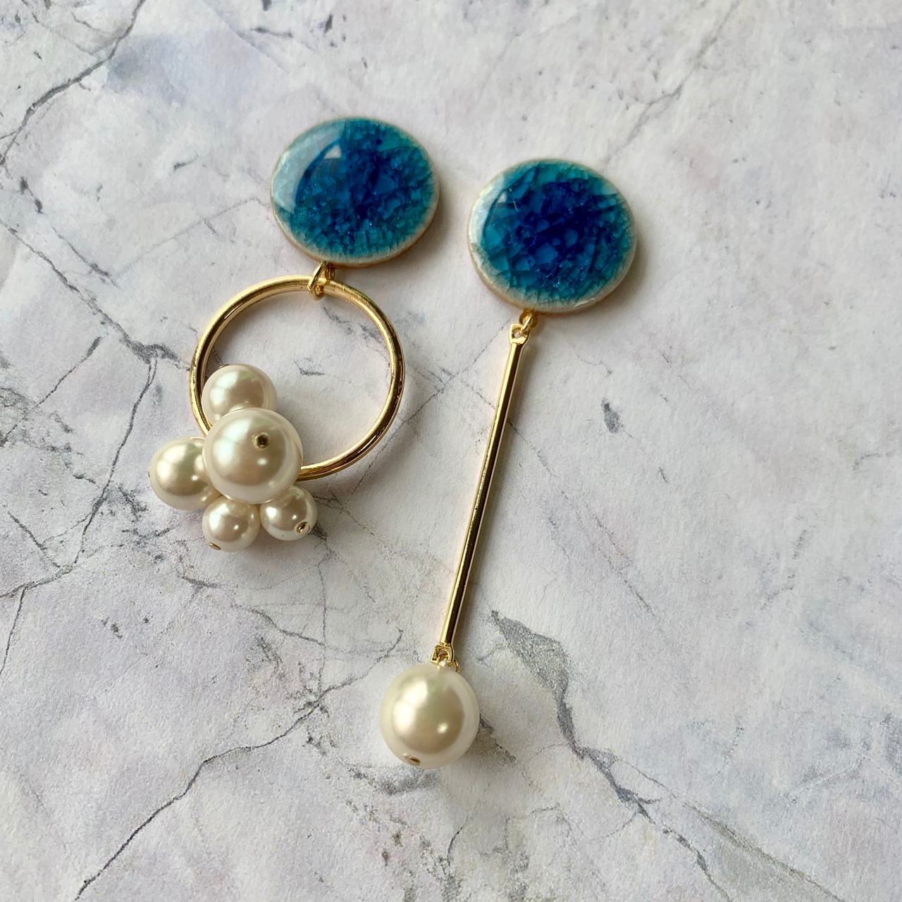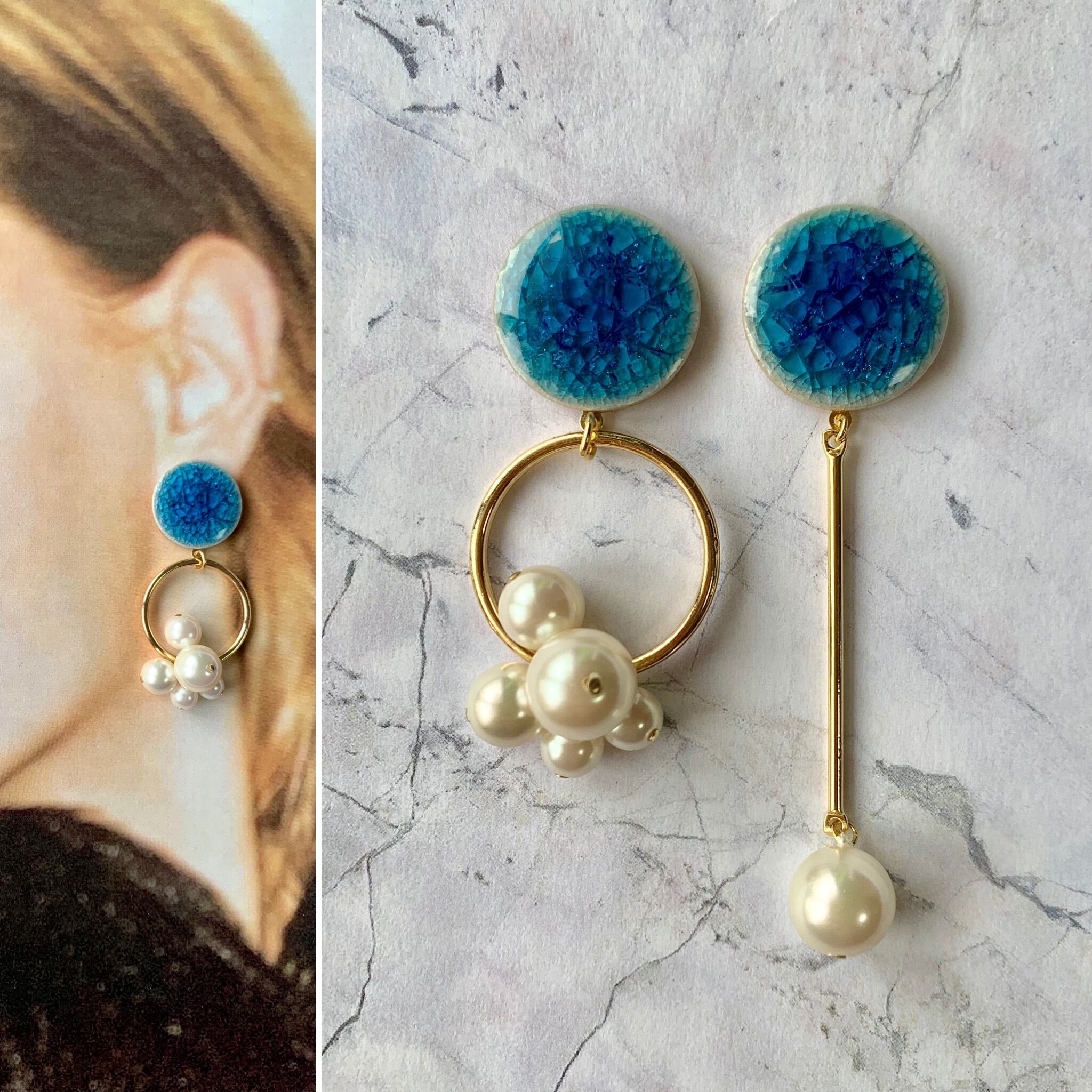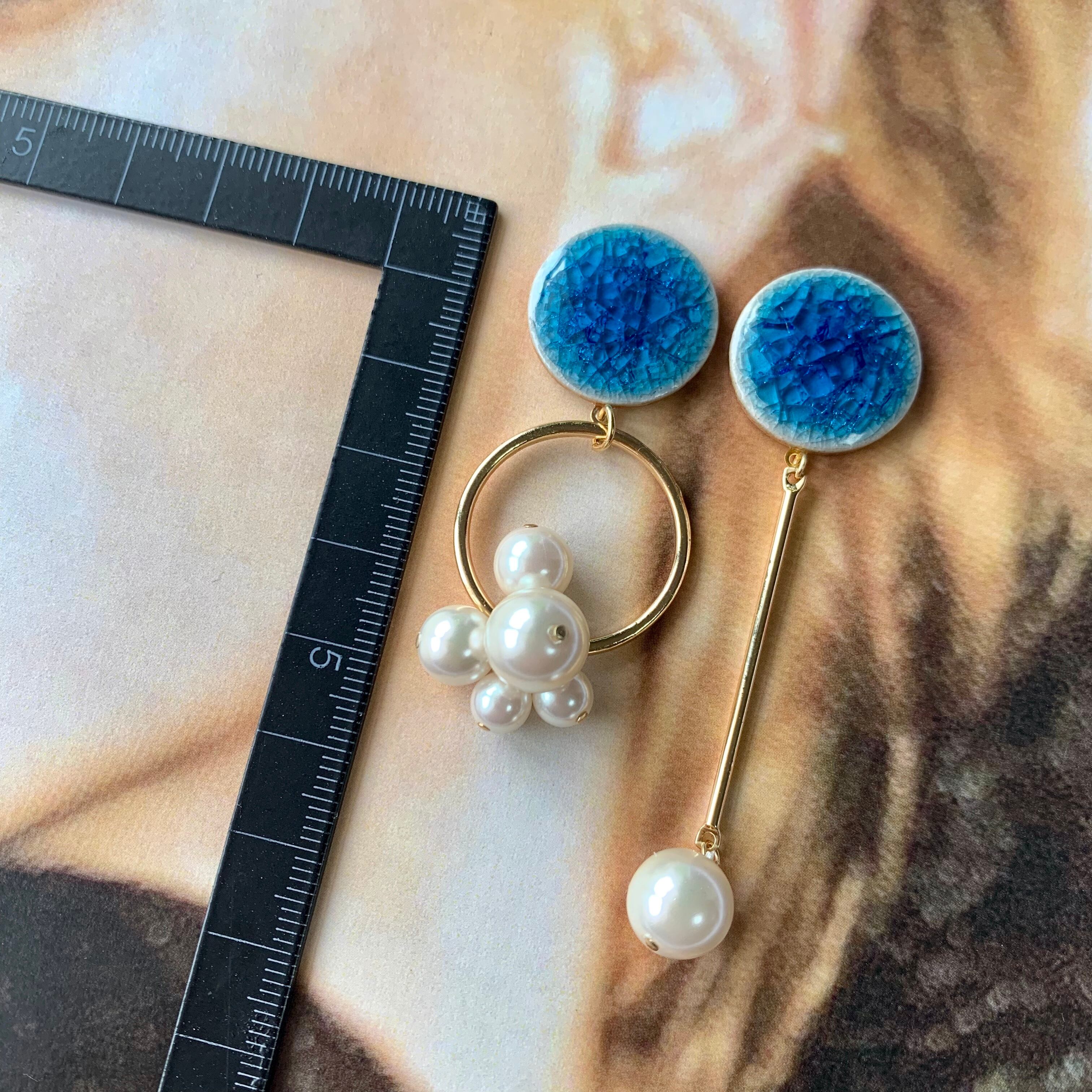 クラッシュタイルアシメピアス ブルー