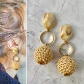 【1点物*】マーブル×ニットボールピアス ホワイト