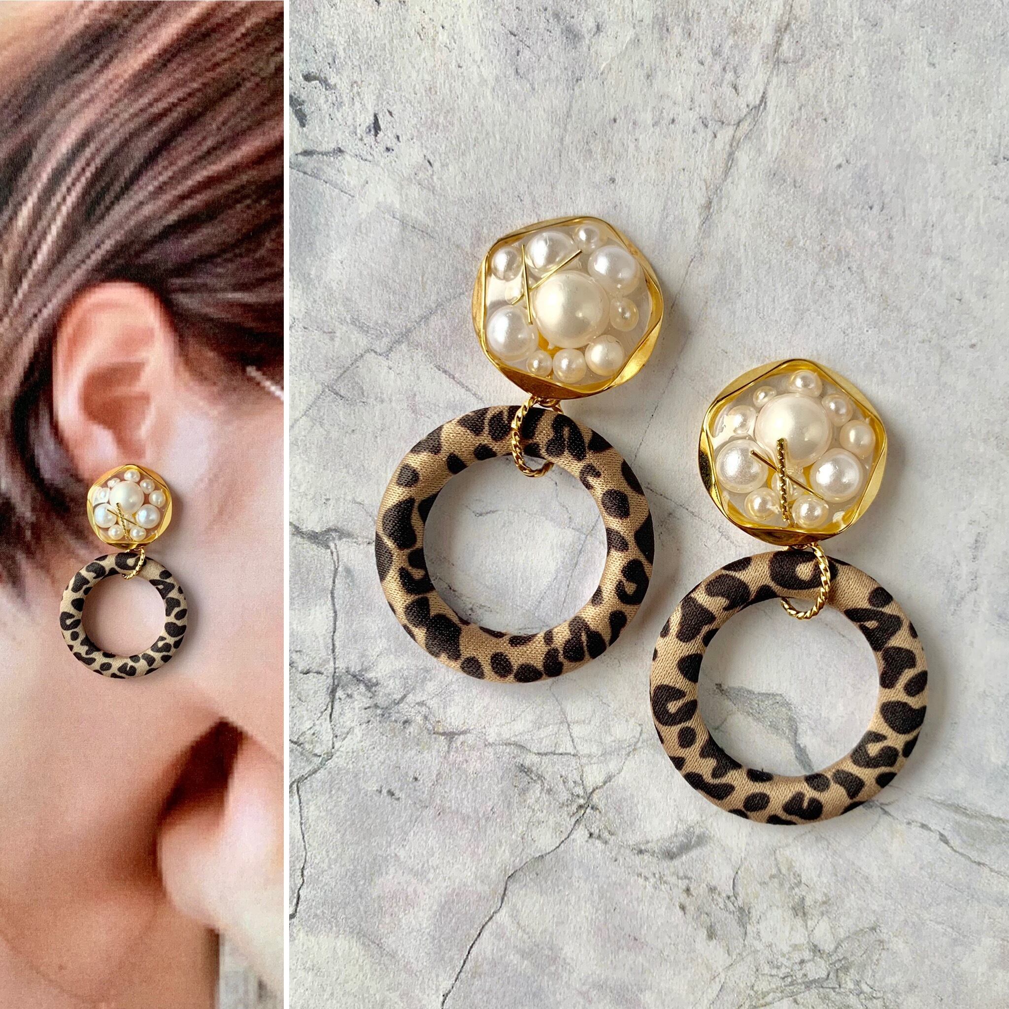 パール詰めカボション×レオパピアス B