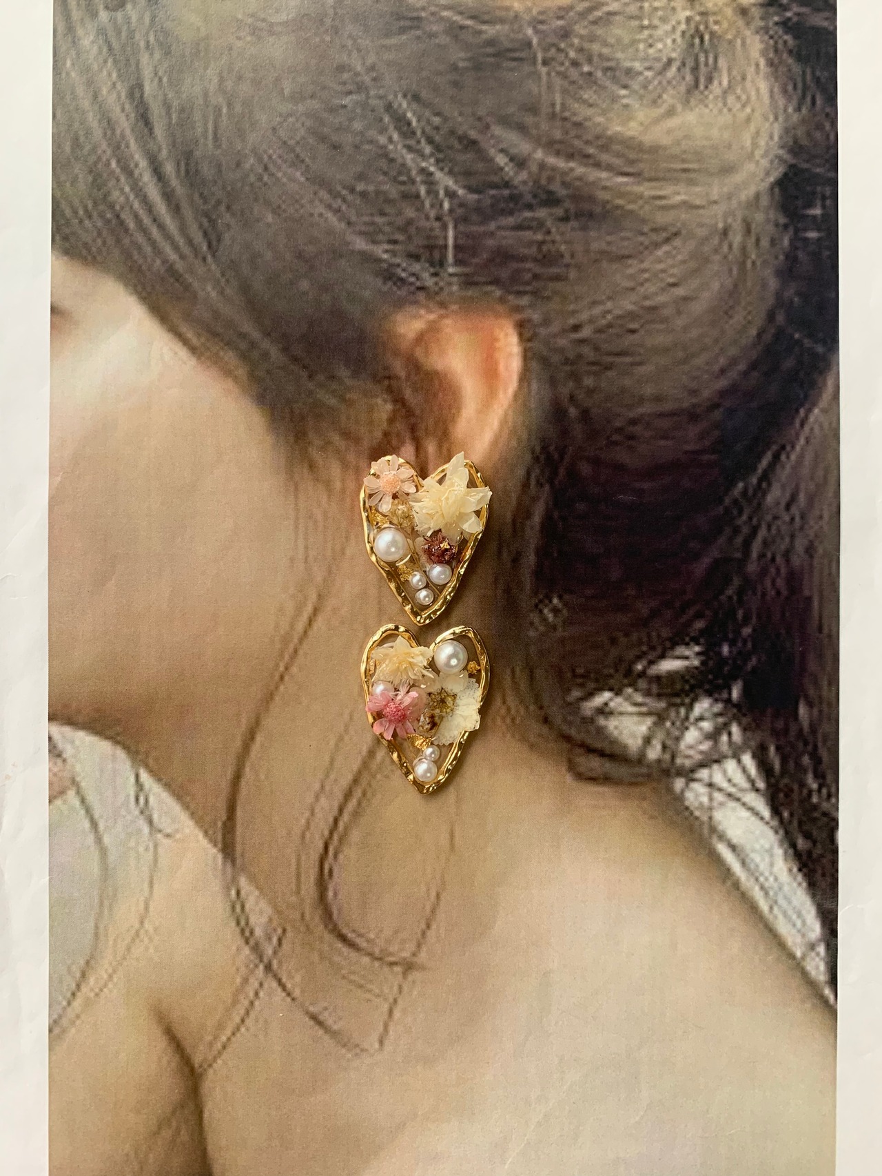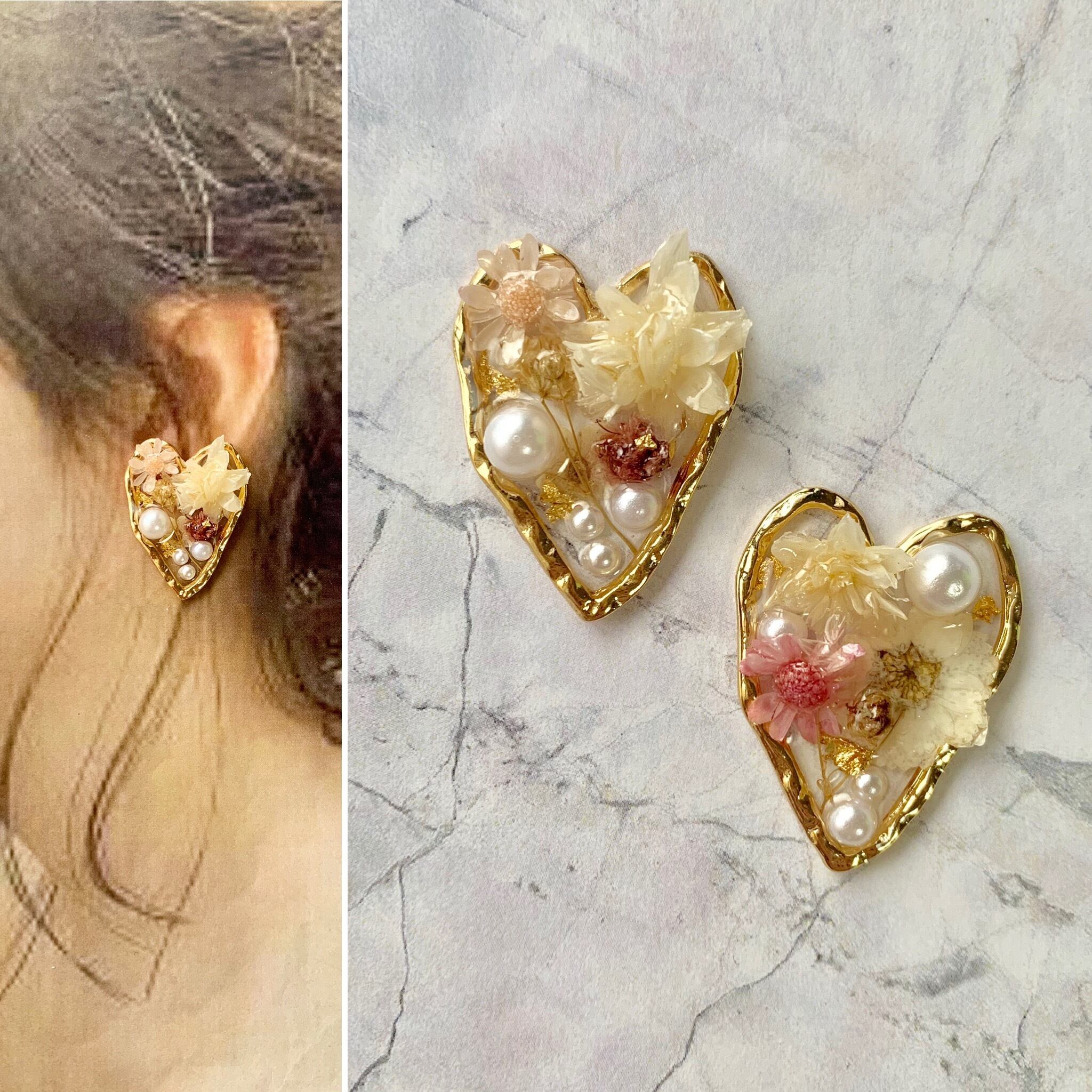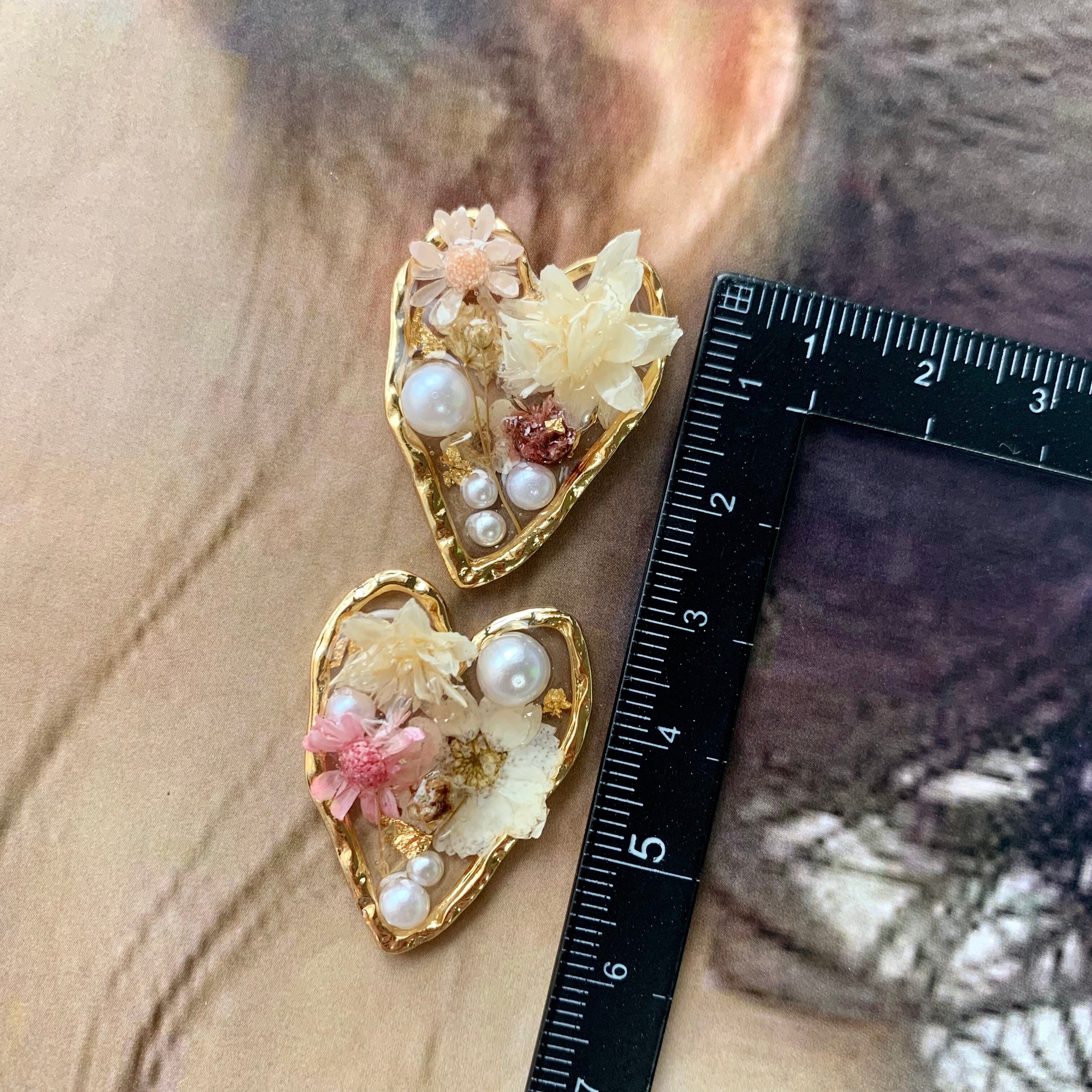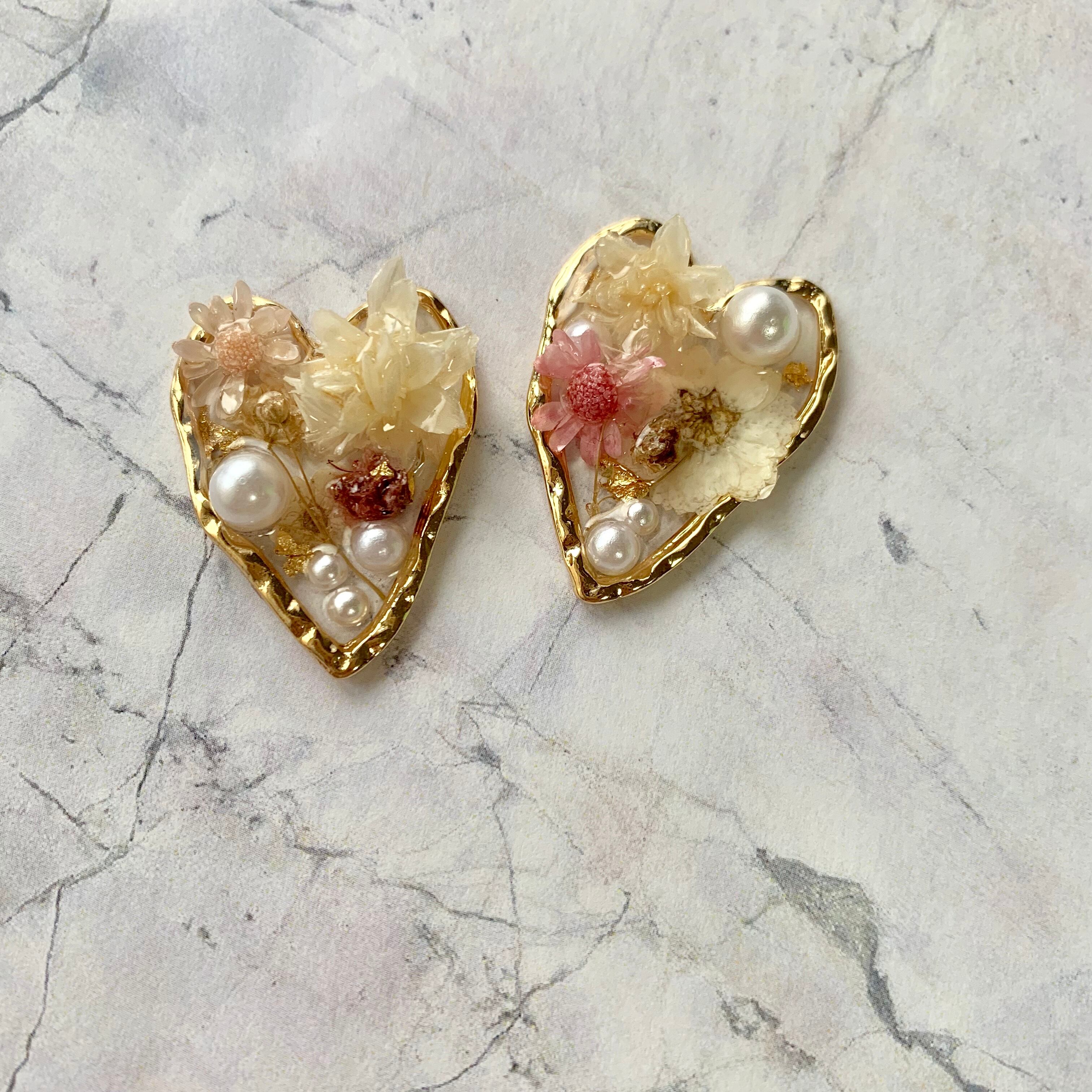 【1点物*】ミニハート枠フラワーピアス ホワイトピンク