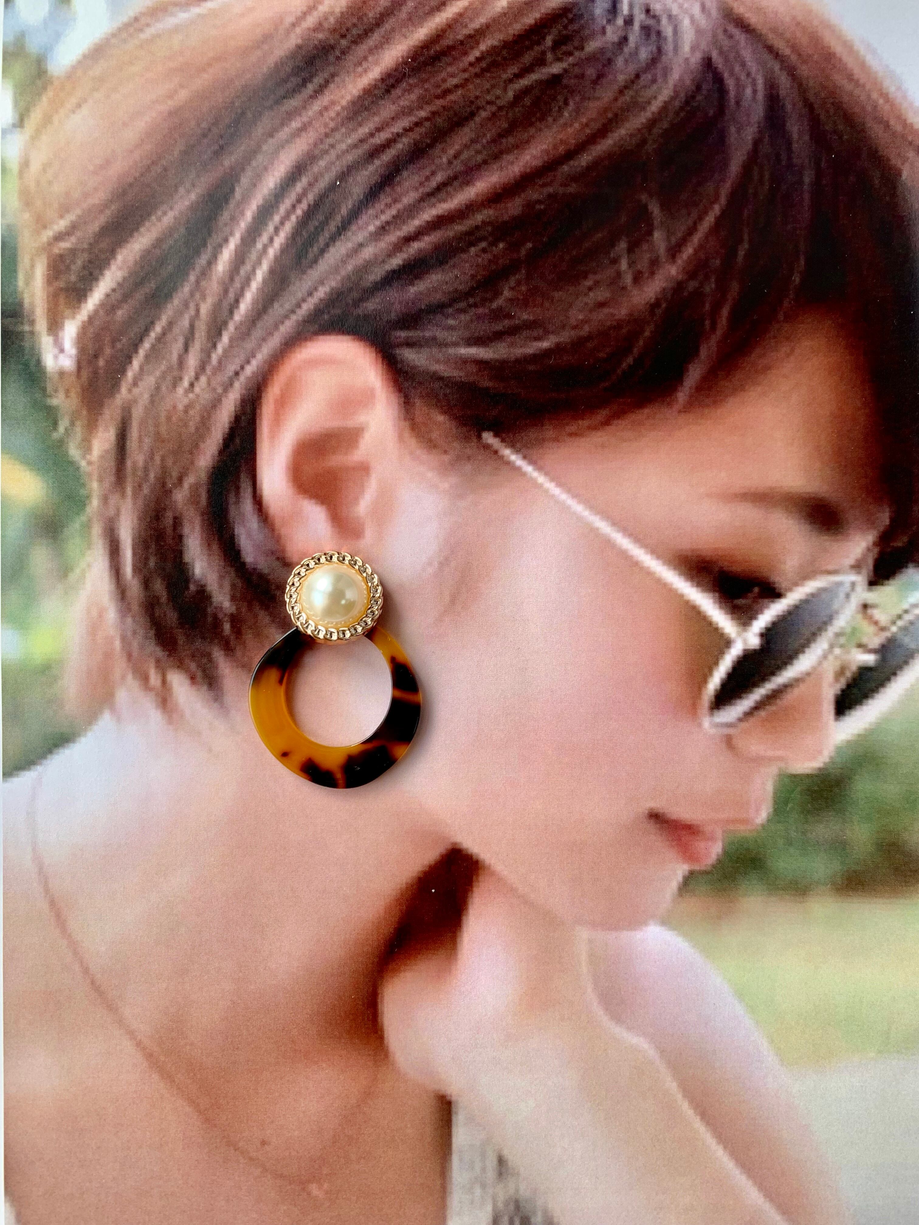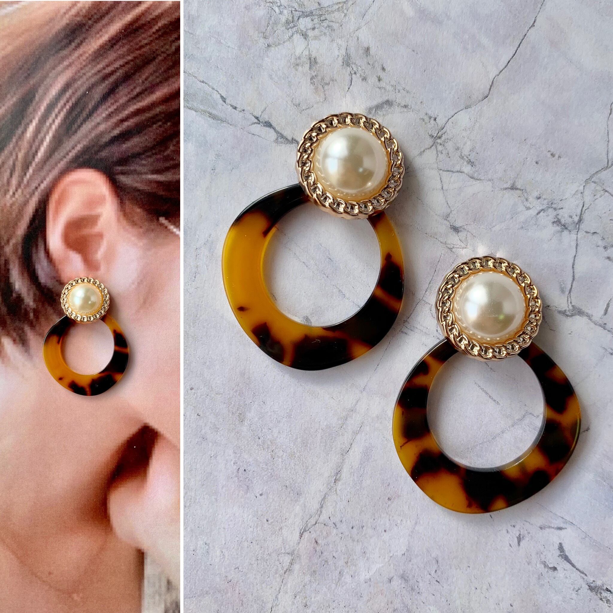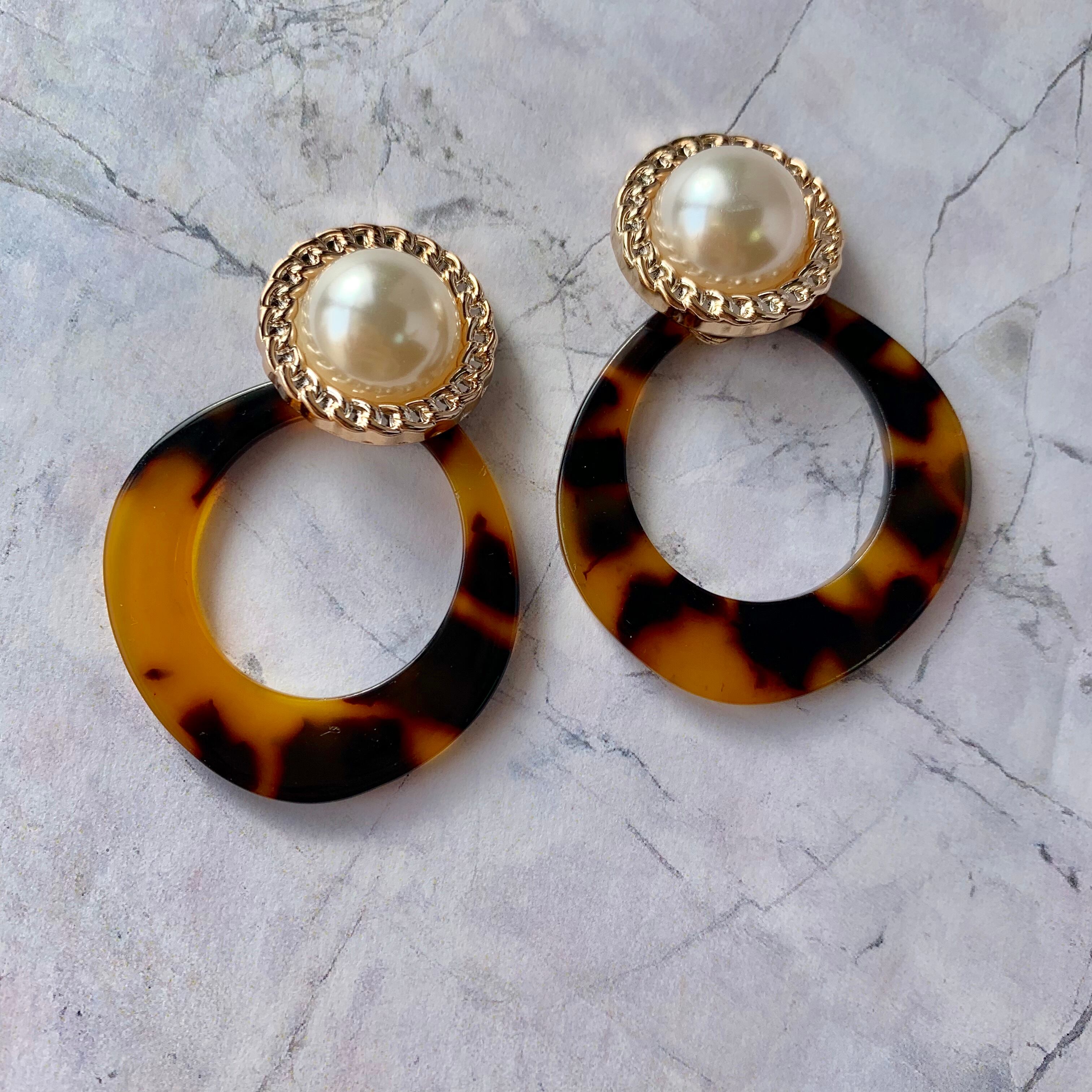 パールカボション×中抜きサークルピアス