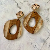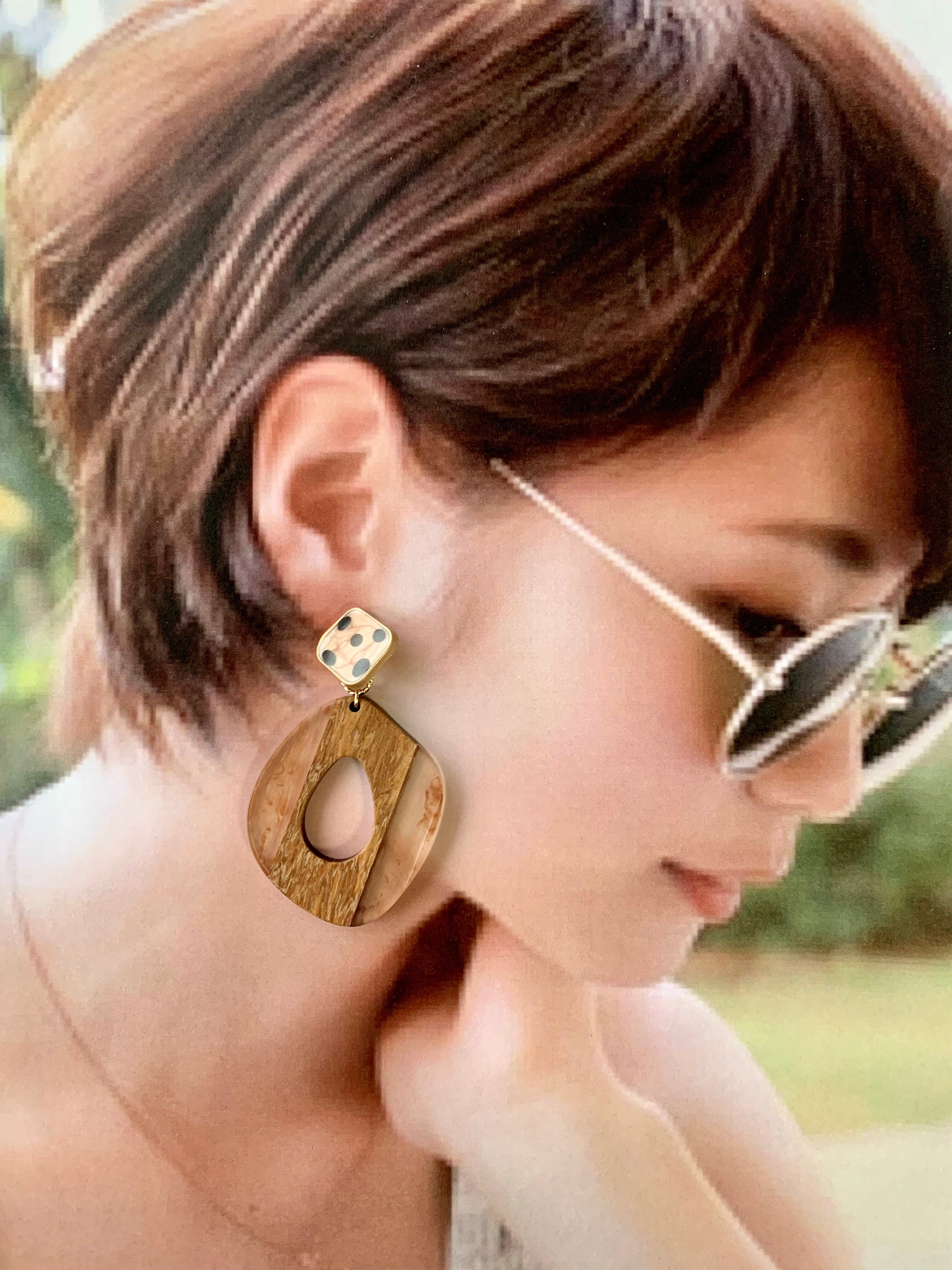 ダルメシアン×シースルーウッドチャームピアス ブラウン