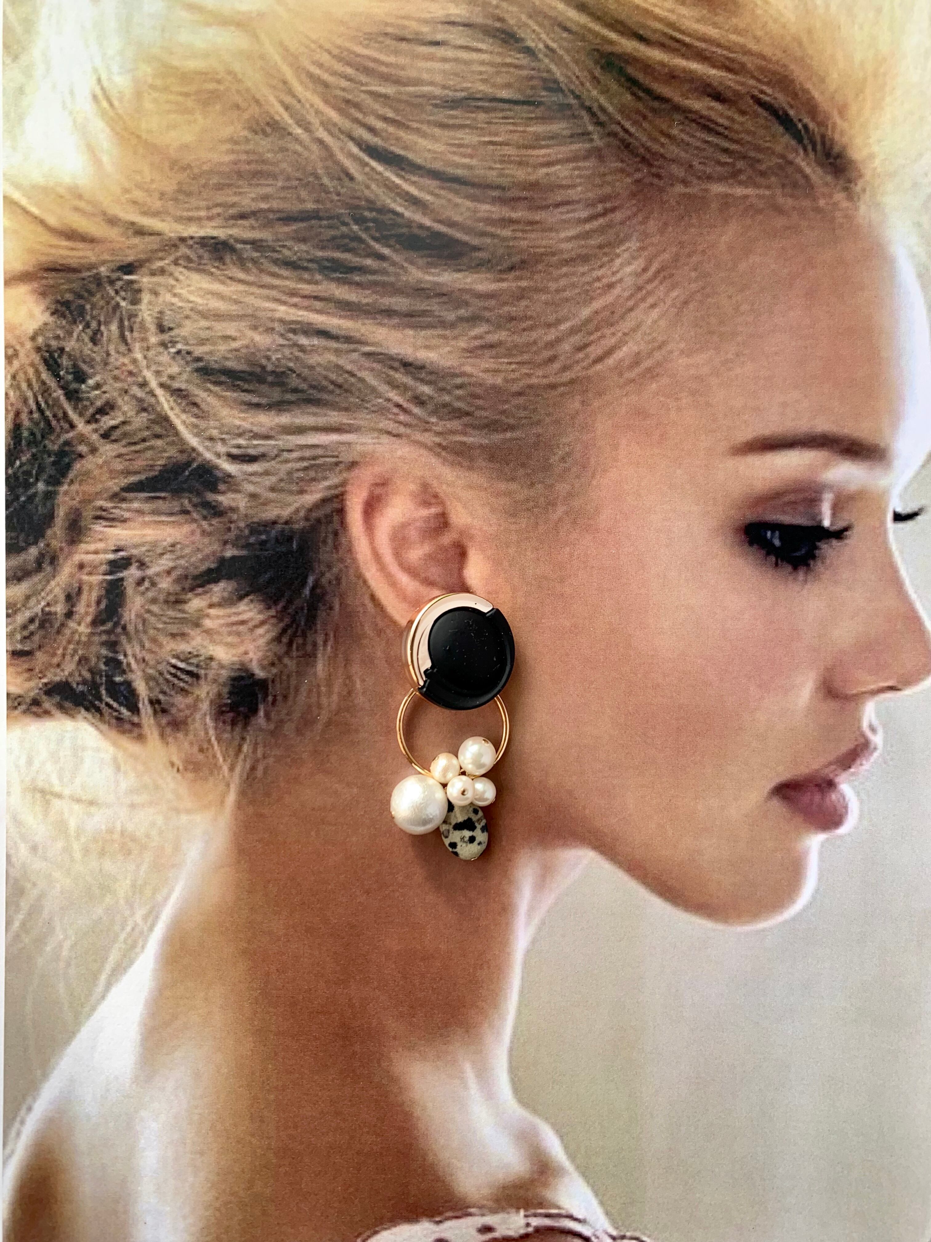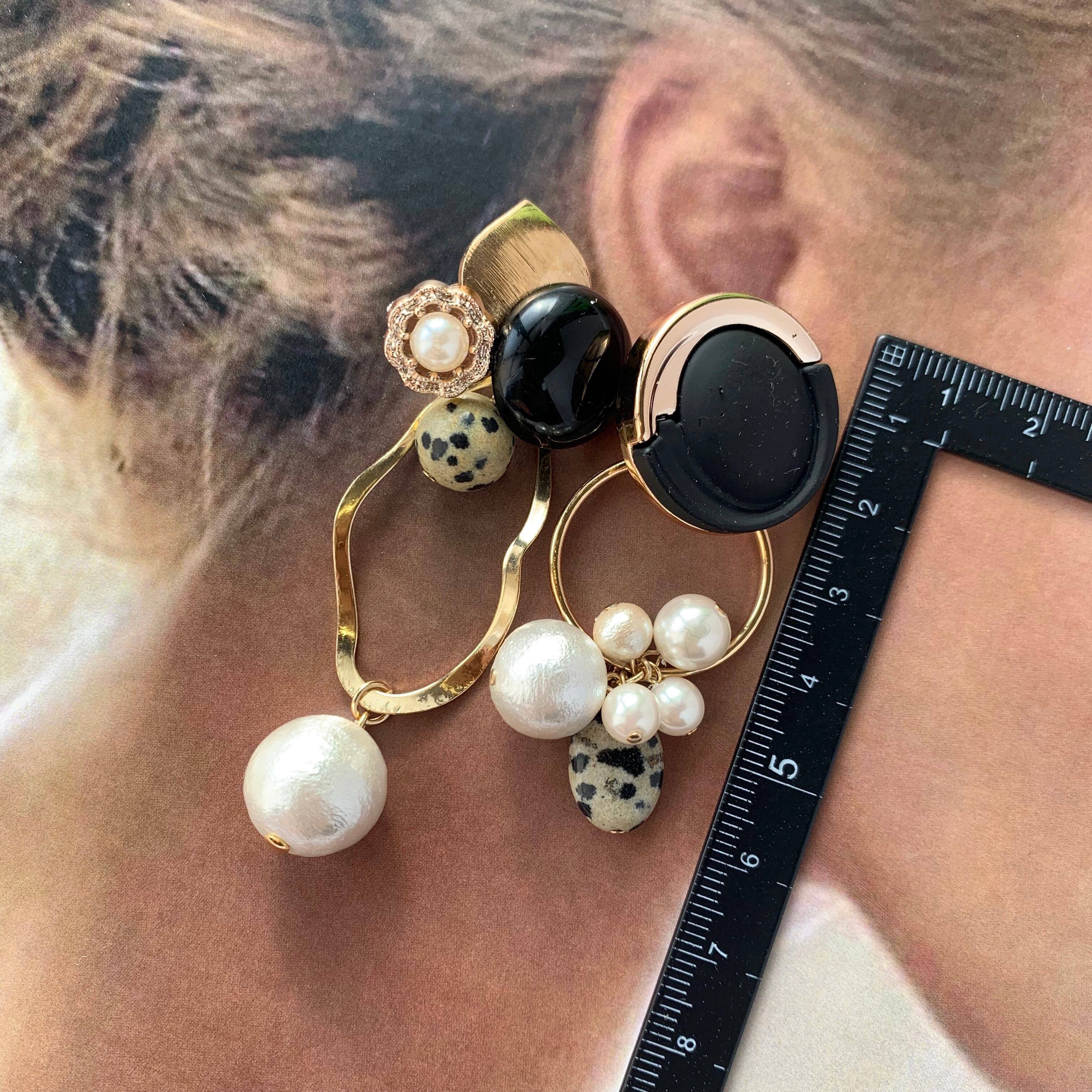 【金属ピアスのみ*】ダルメシアン×高品質コットンパールアシメピアス