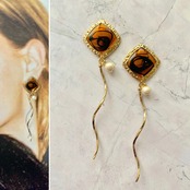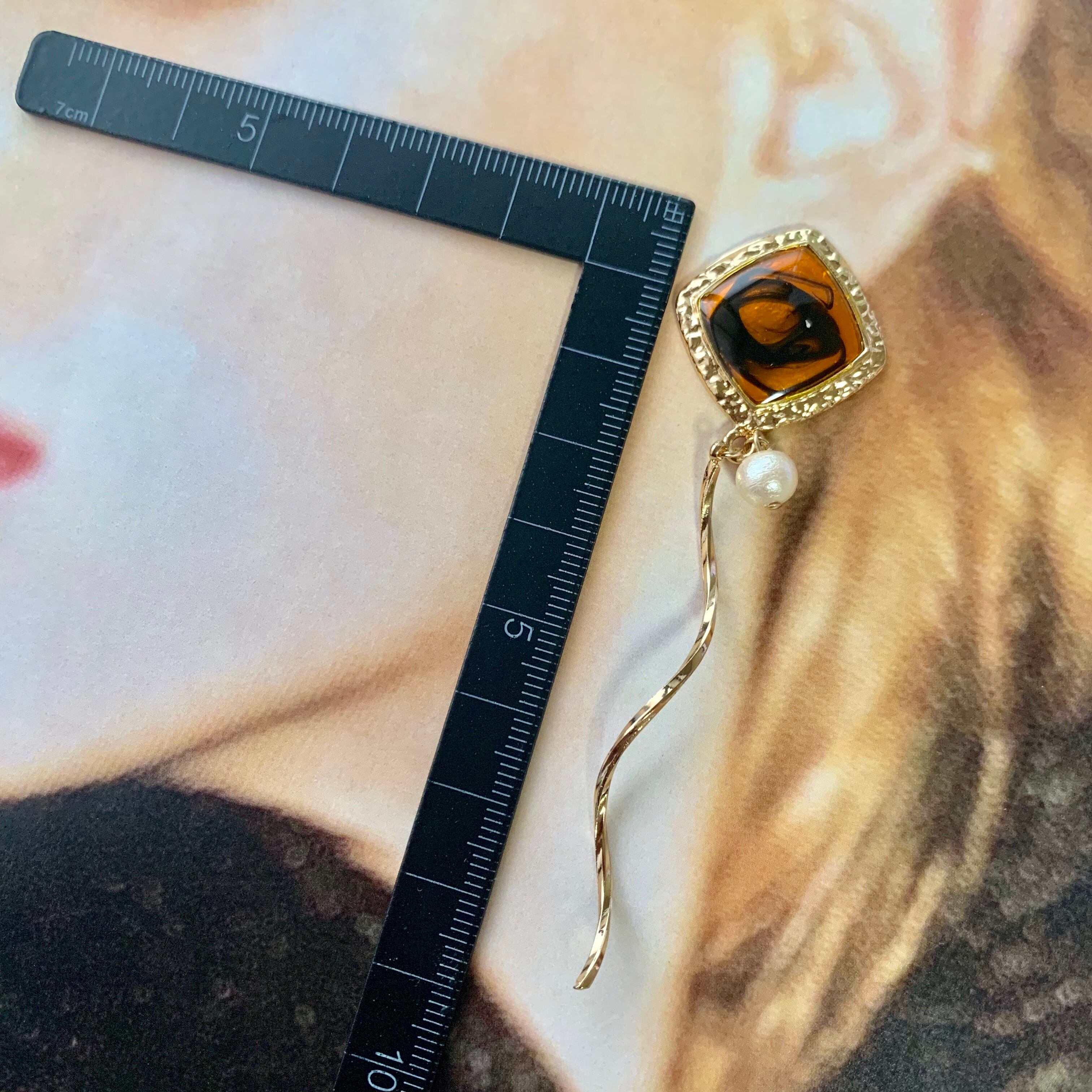 【1点物*】ペイントカボションひねりピアス べっ甲