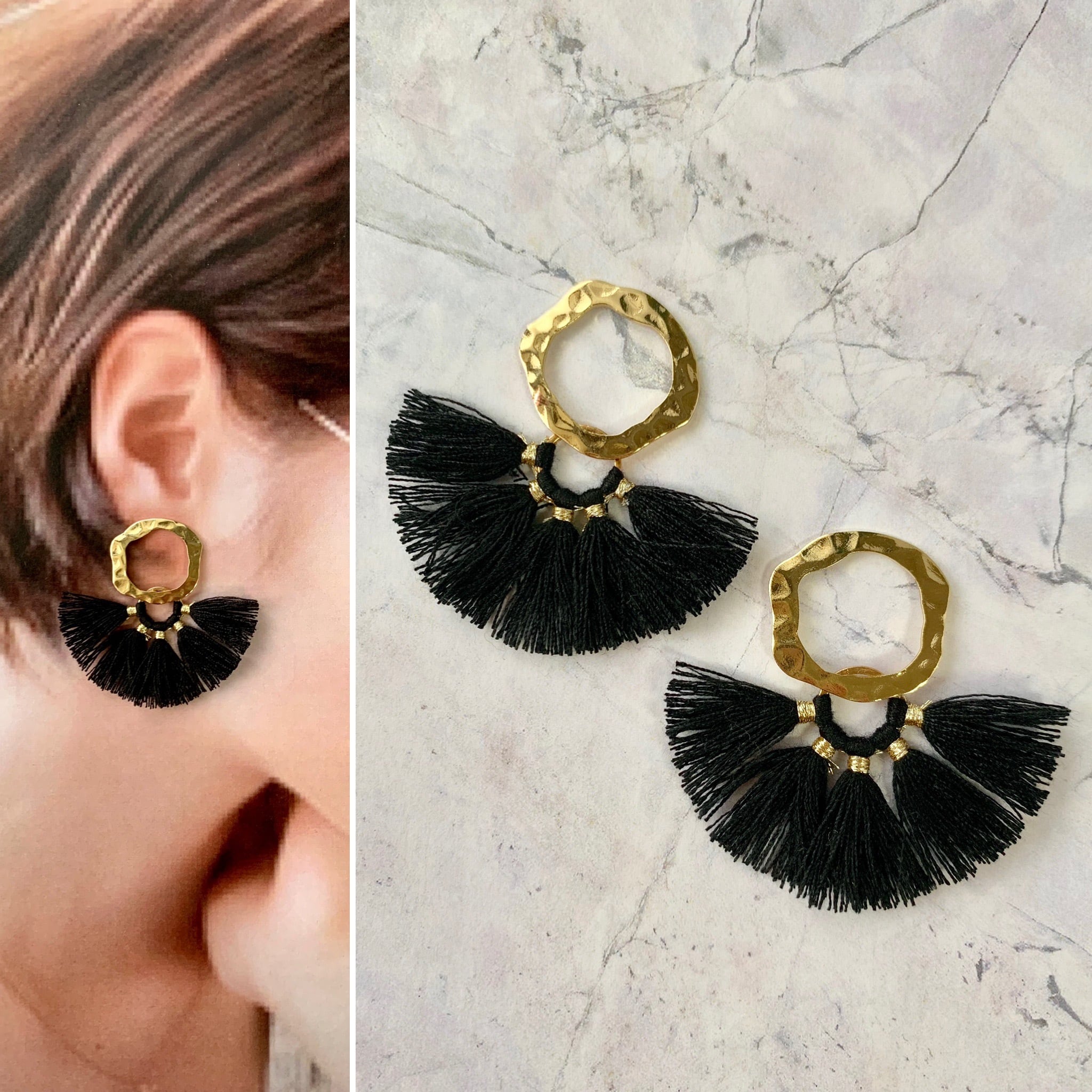 【1点物*】いびつサークル×扇タッセルピアス ブラック