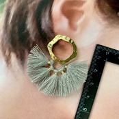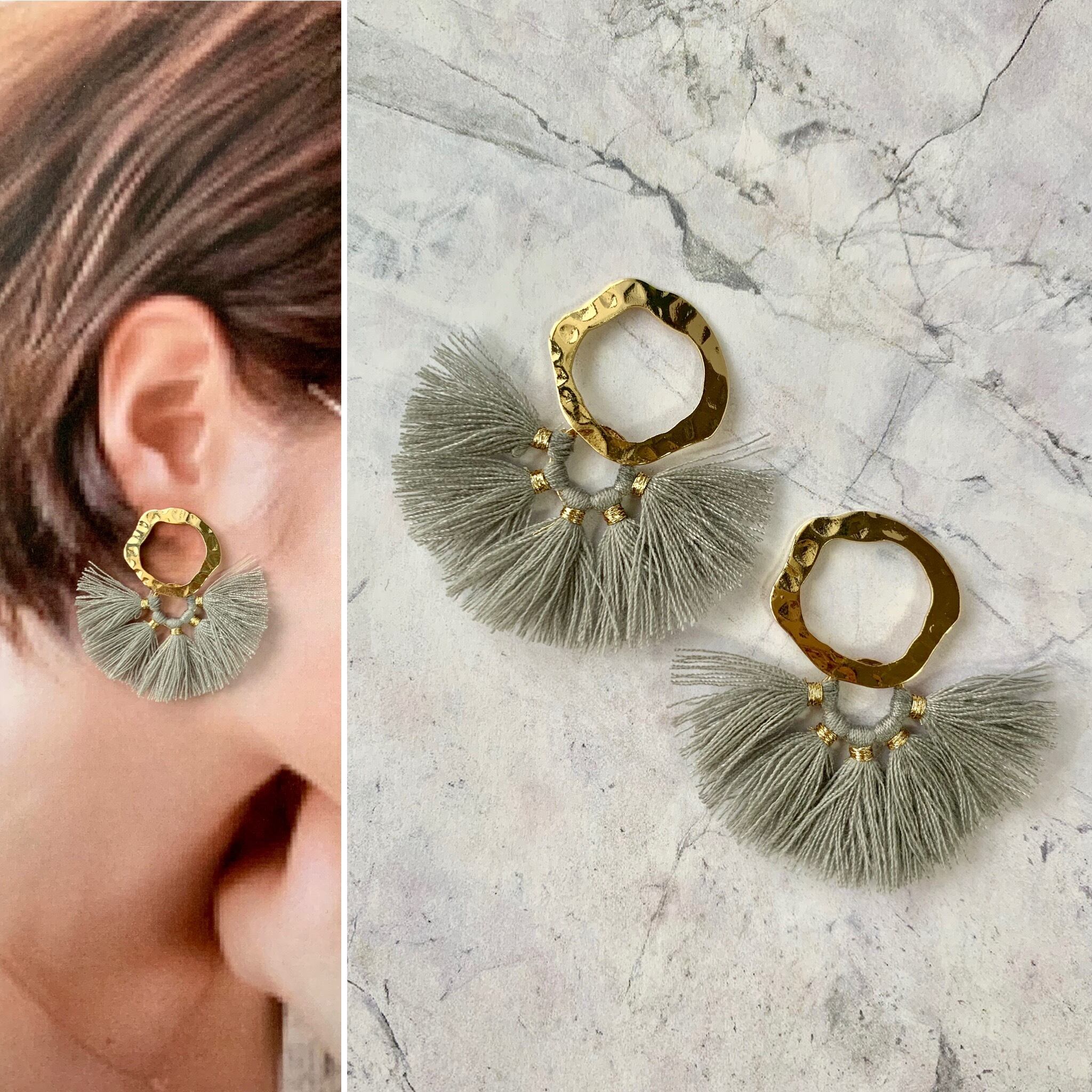 【1点物*】いびつサークル×扇タッセルピアス ライトグレー