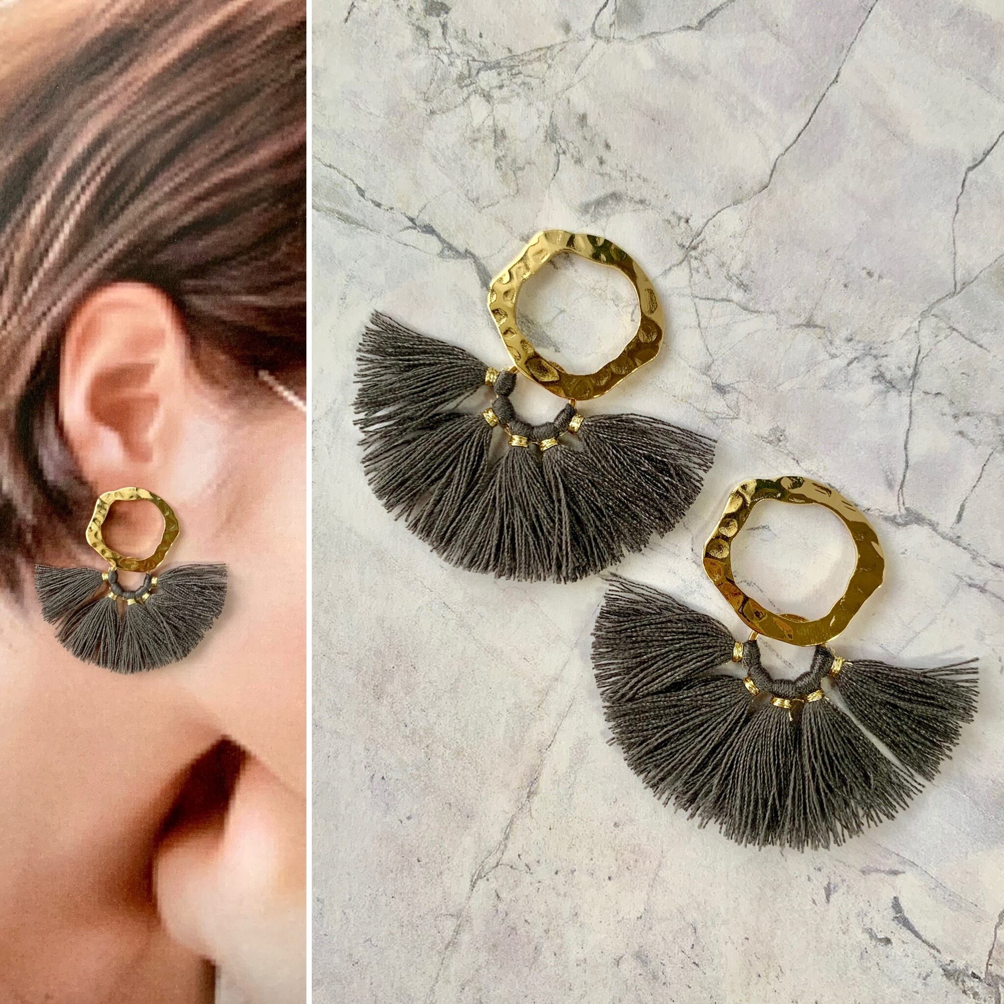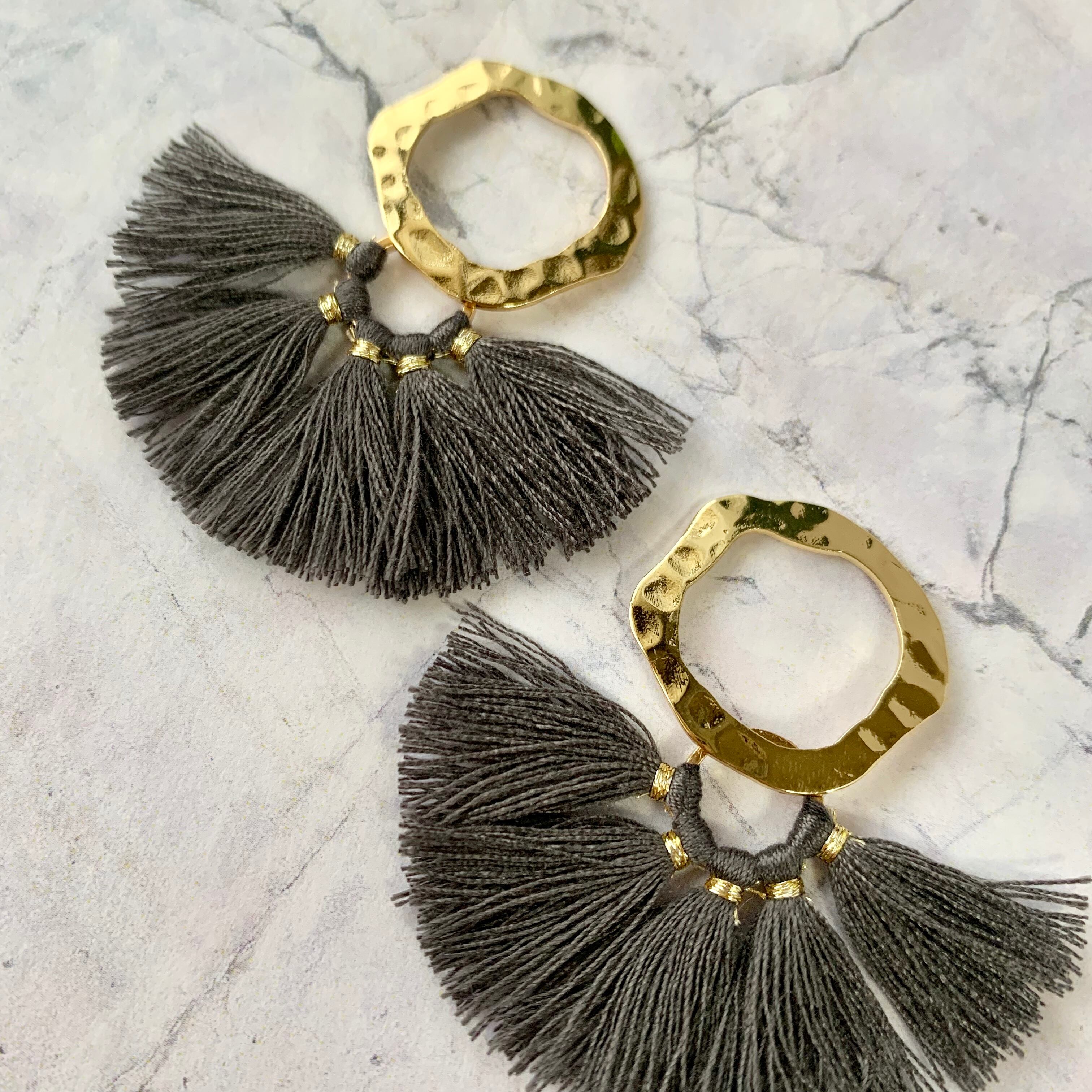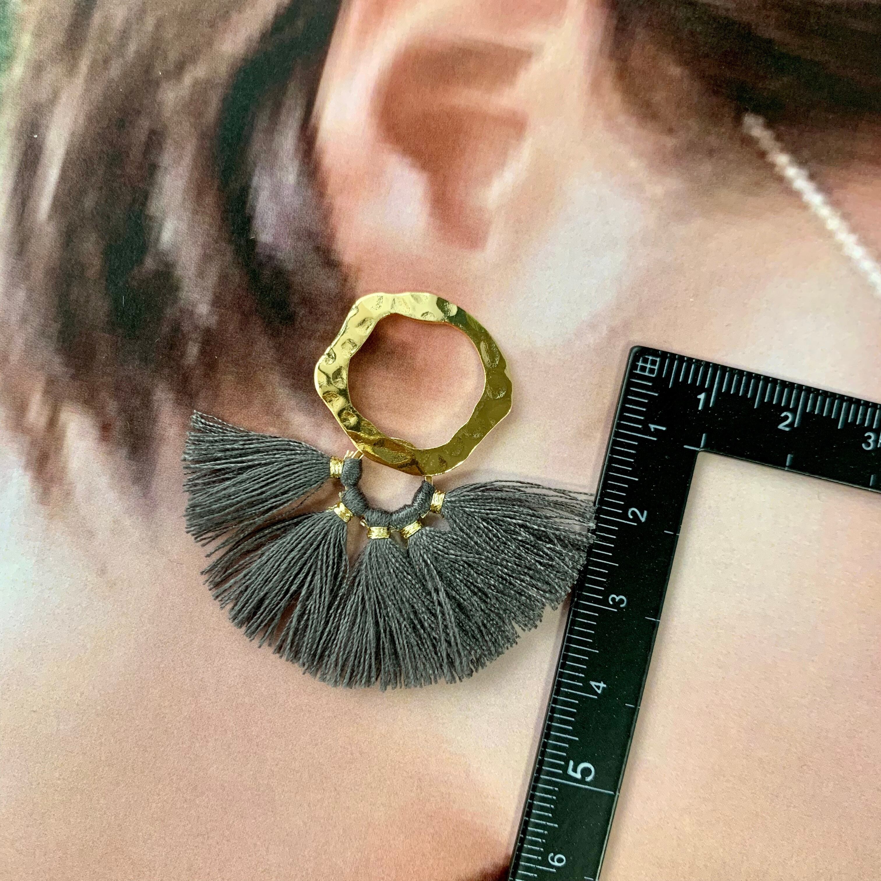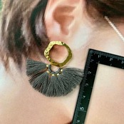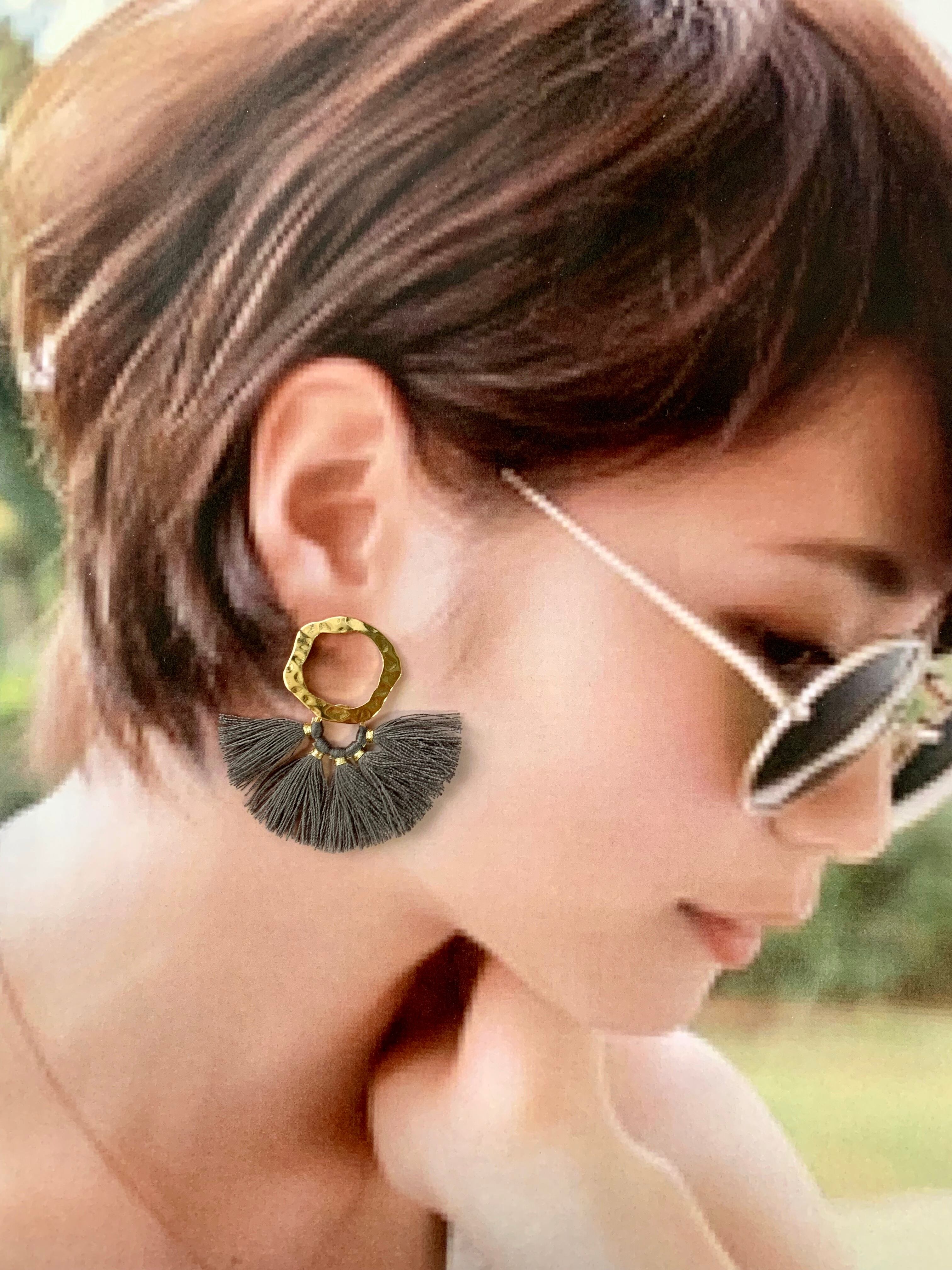 【1点物*】いびつサークル×扇タッセルピアス グレー