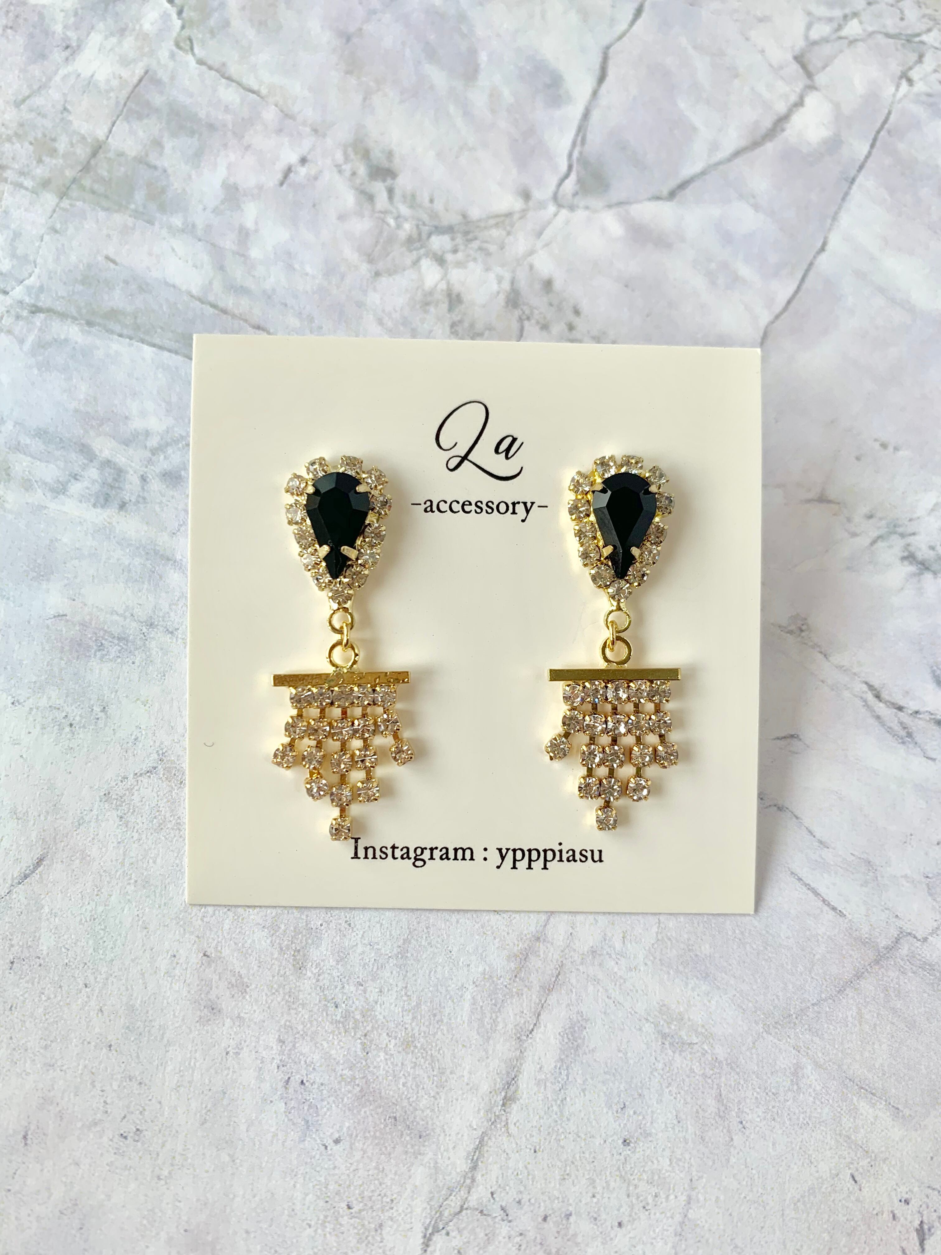 【金属ピアスのみ*】ジルコニアビジューピアス ブラック