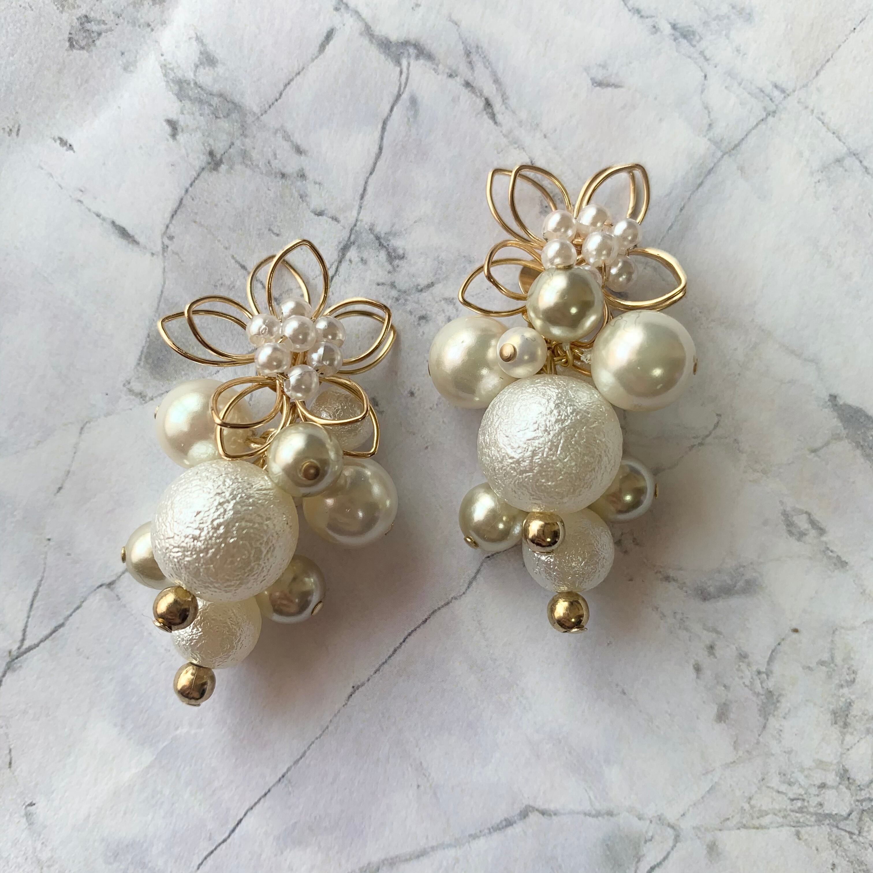 ワイヤーフラワーじゃらじゃらピアス